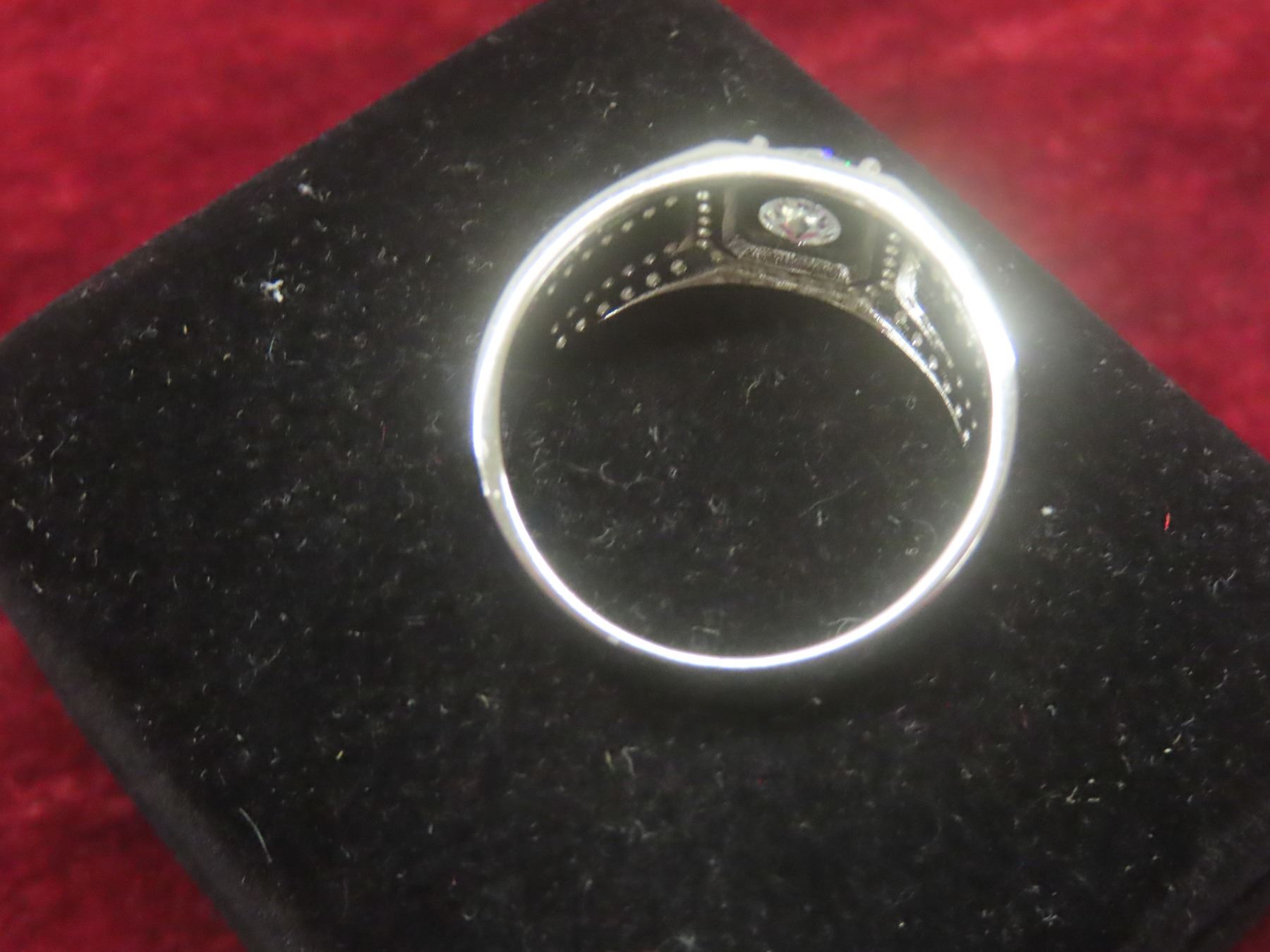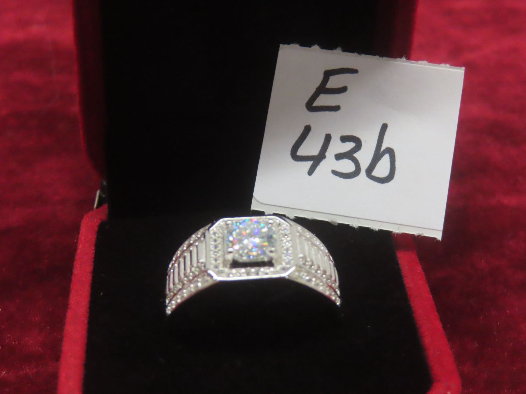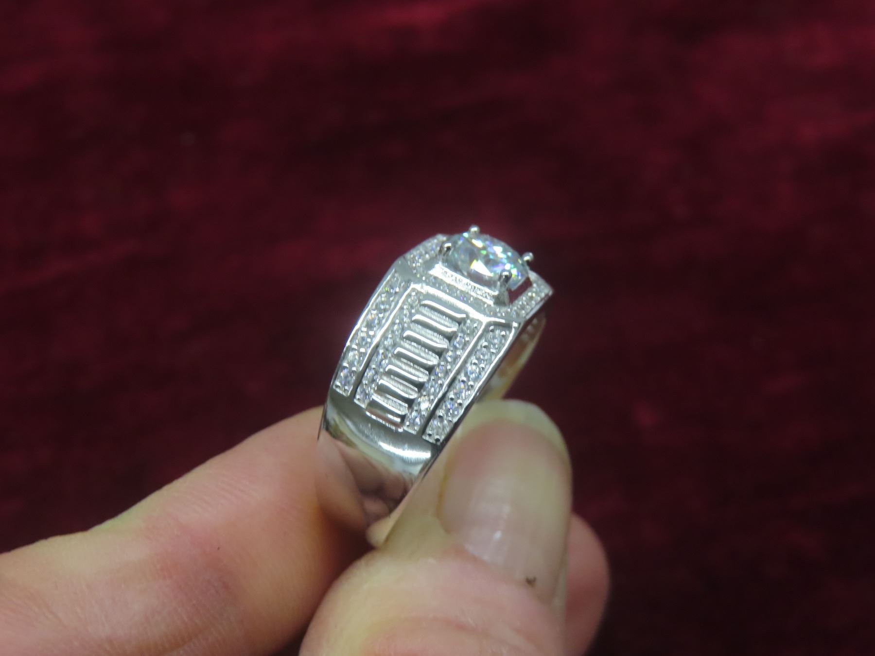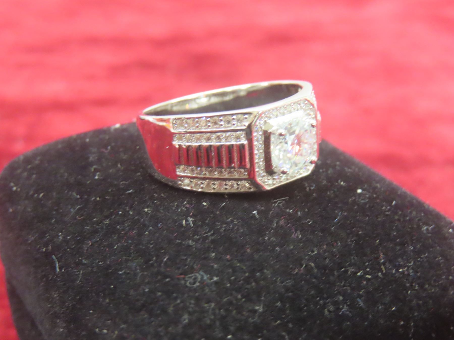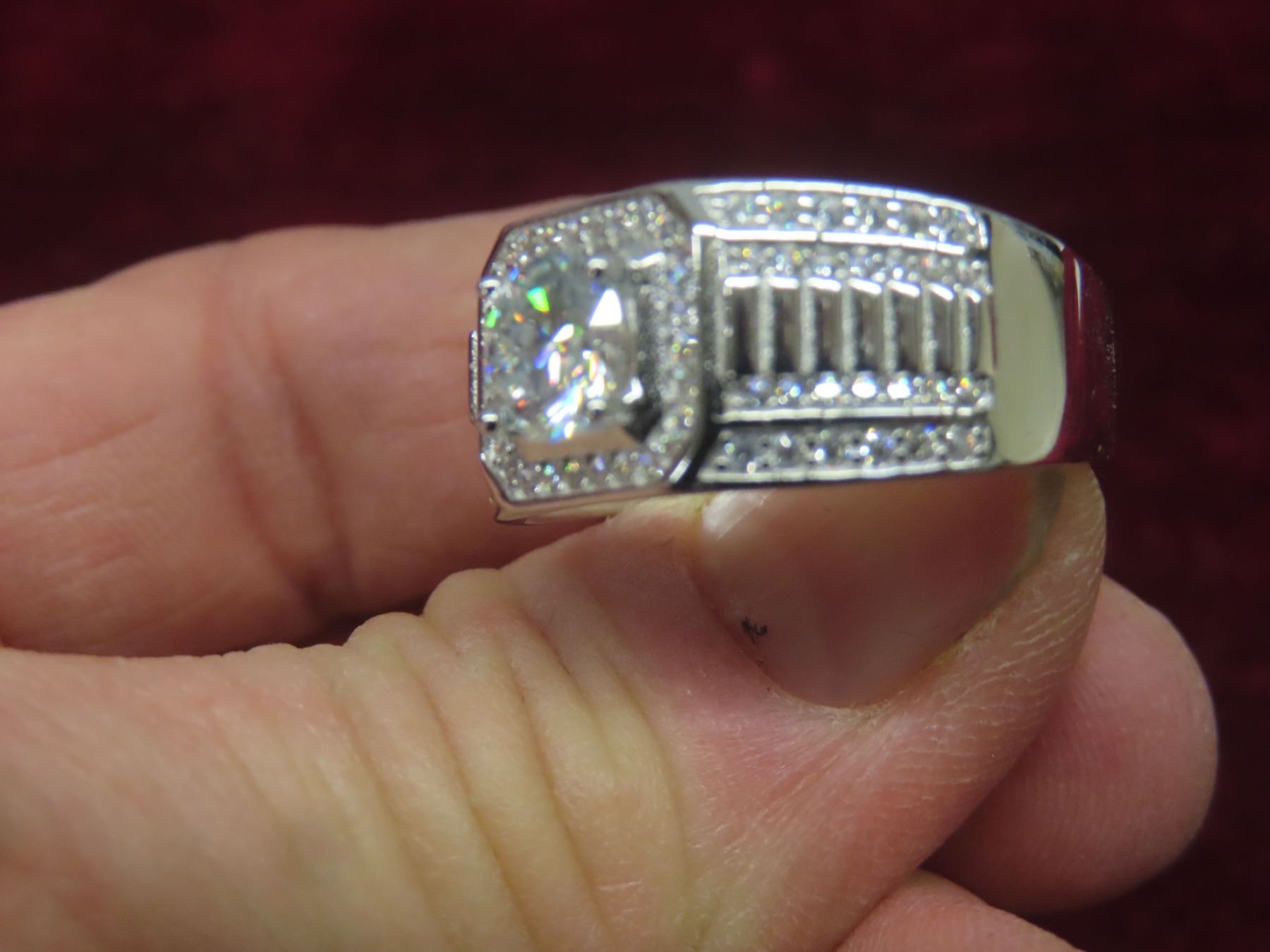 1.00 CT GRA Certified Round Brilliant Cut Moissanite Stone VVS D Color With 84 Round Brilliant Cut Cubic Zirconia Set in Square Halo and in Shanks in 2 Rows Set in 925 Silver Ring Size 11.5 Retail Value $1,565.00
