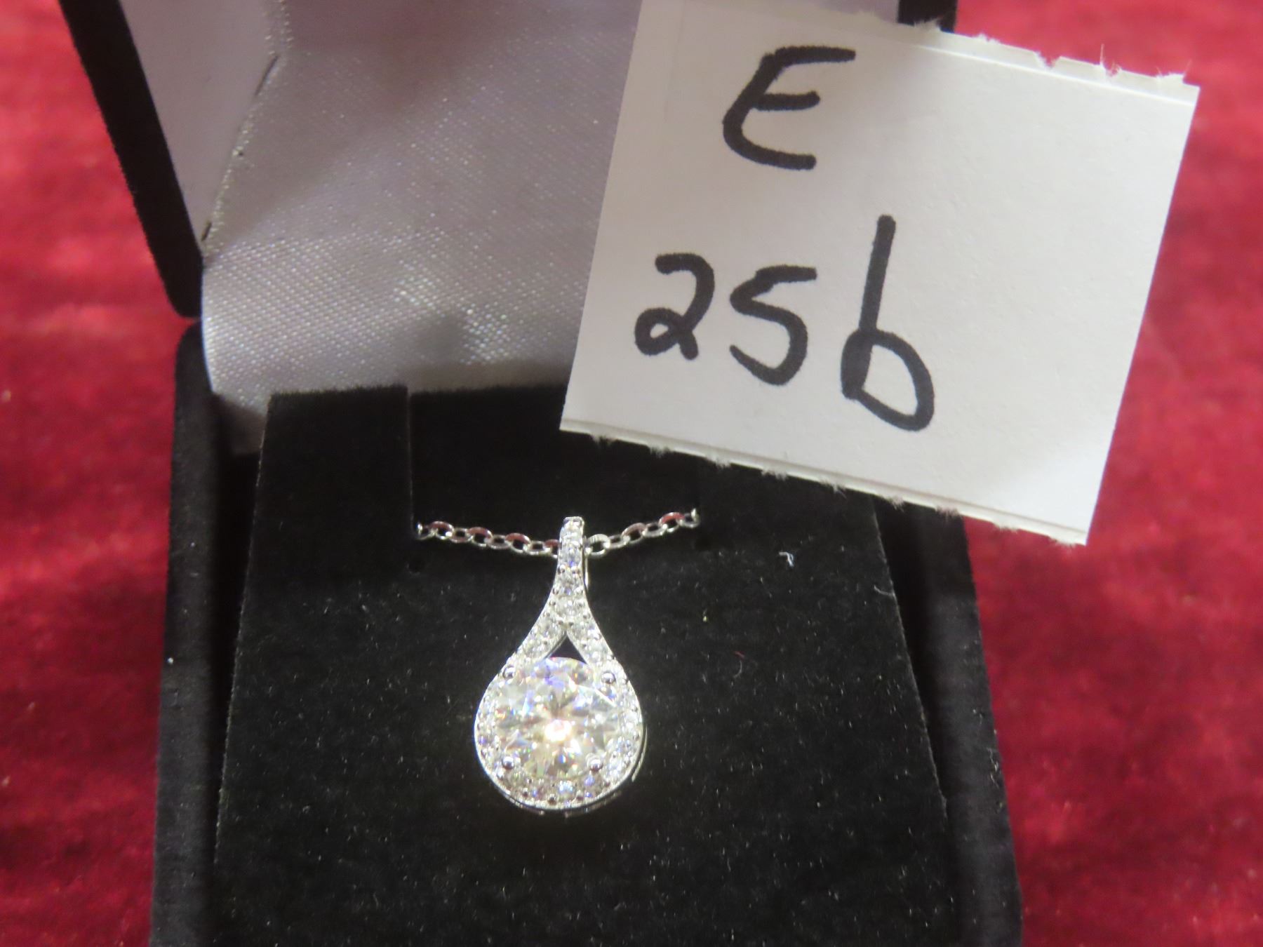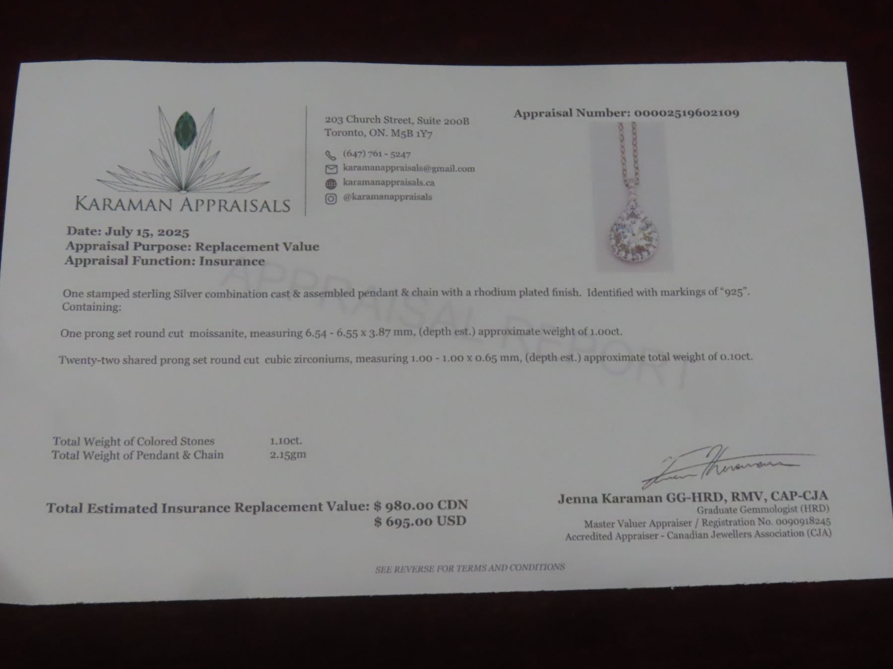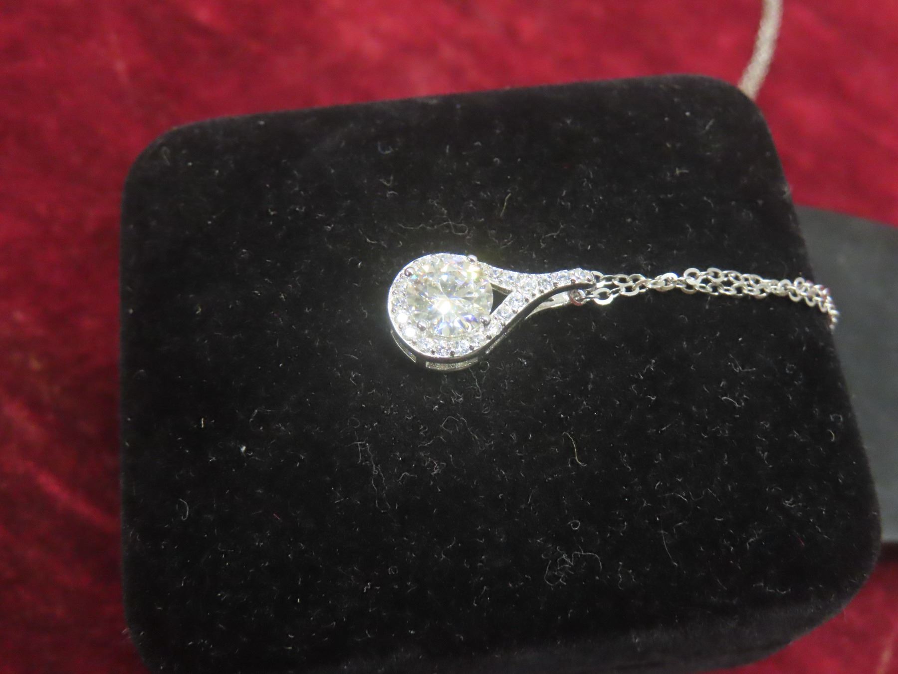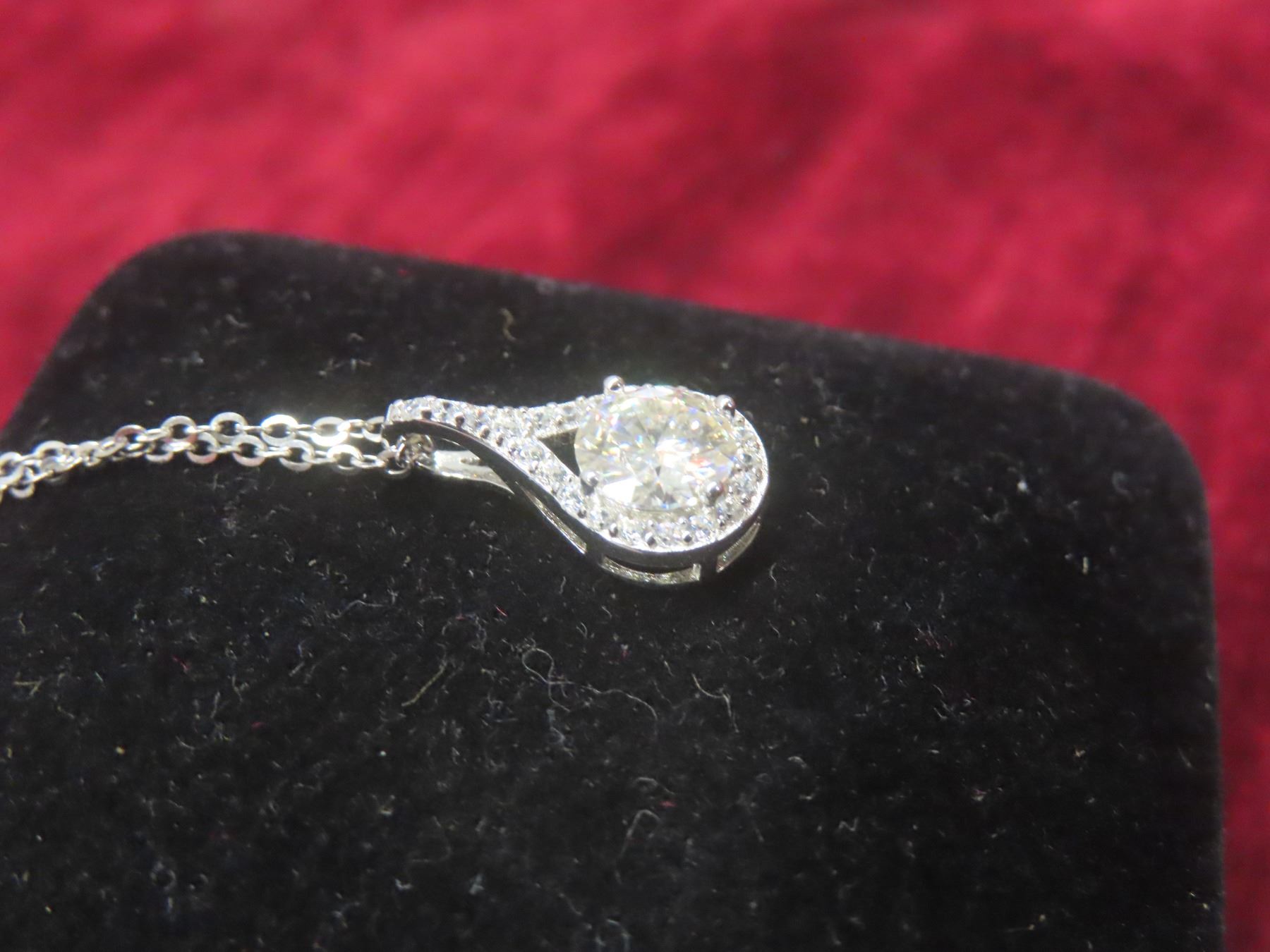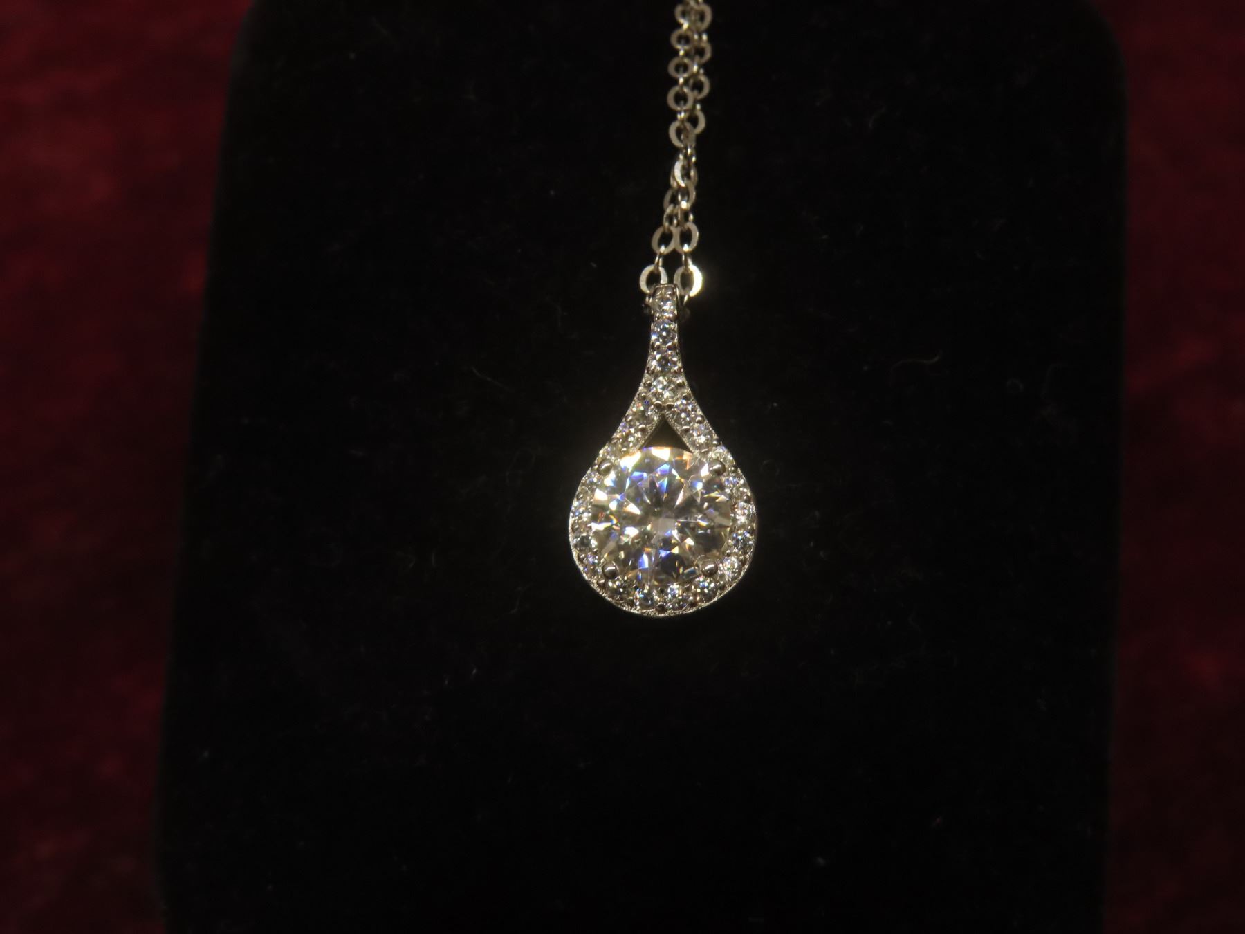 1.00 CT GRA Certified Round Brilliant Cut Moissanite Stone VVS D Color With the 22 Round Brilliant Cut Cubic Zirconia Set in Tear Drop Shaped Halo and Set in 925 Silver Pendant Retail Value $980.00