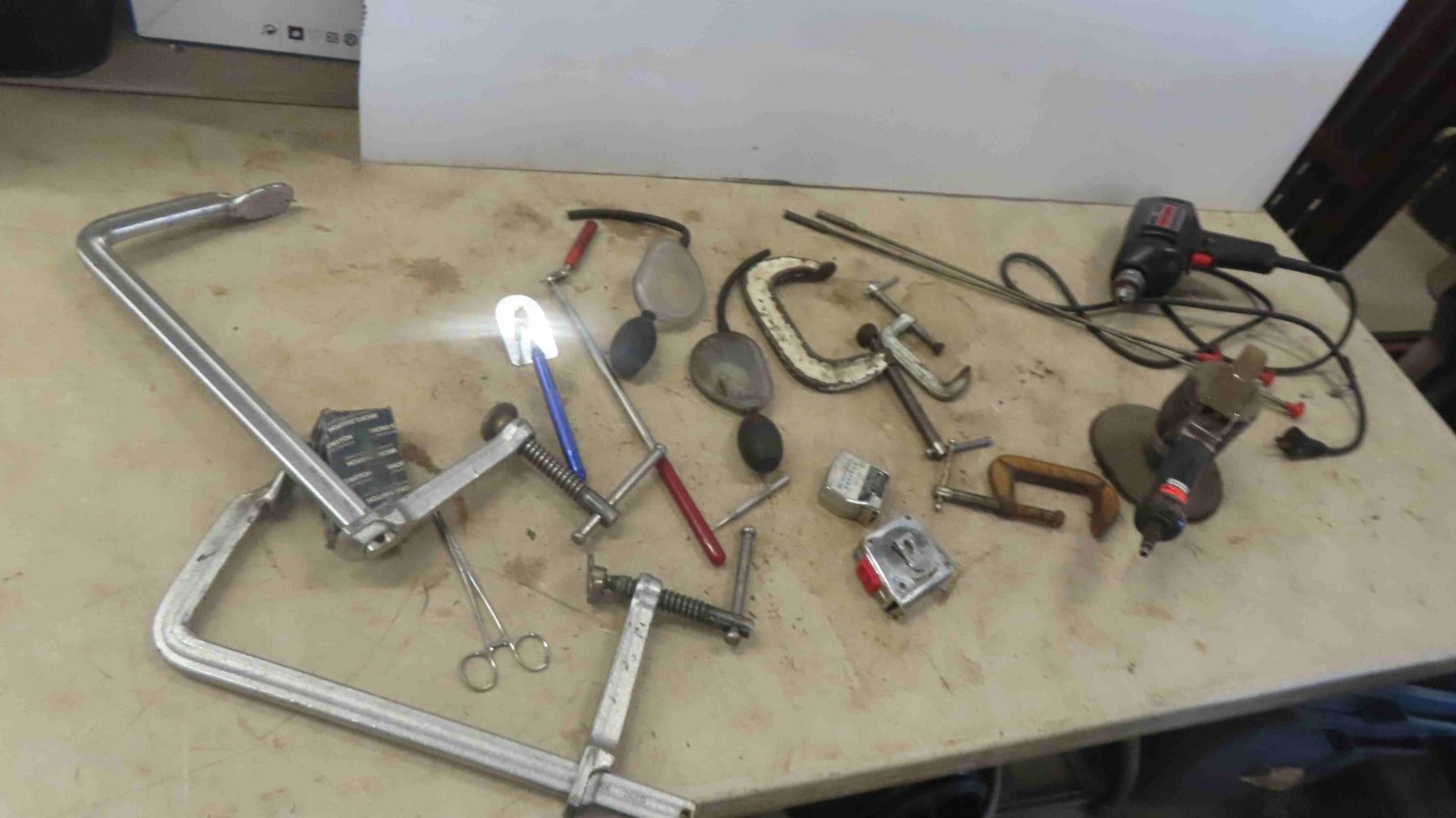 1/2'' Power Drill , C Clamps, Bessey Clamps , Tape Measure, Air Orbital