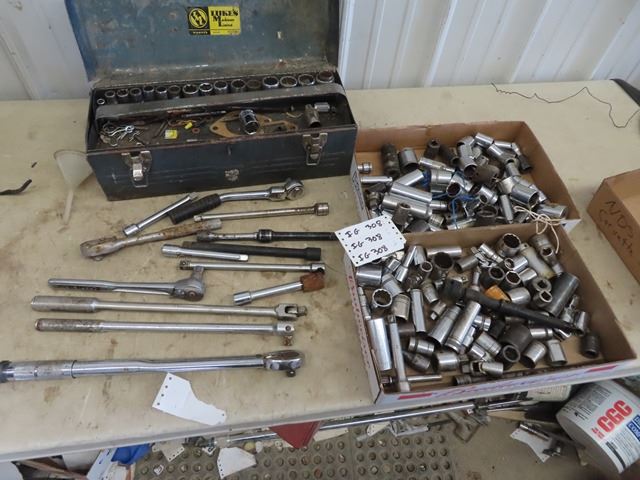 1/2" Sockets - Various Brands - Metric & Standard Ratchets, Strong Bar, Extensions, & Metal Tool Box