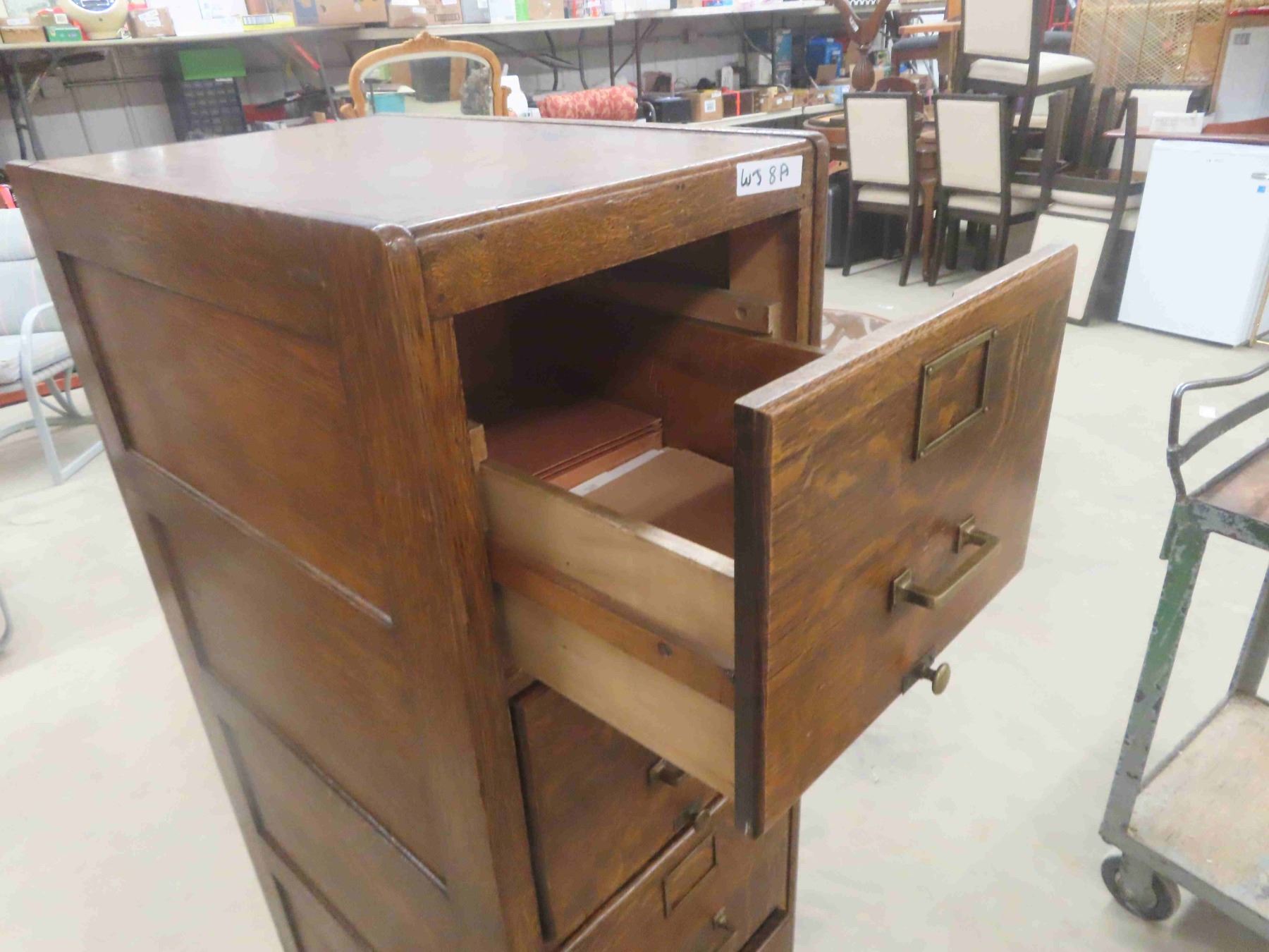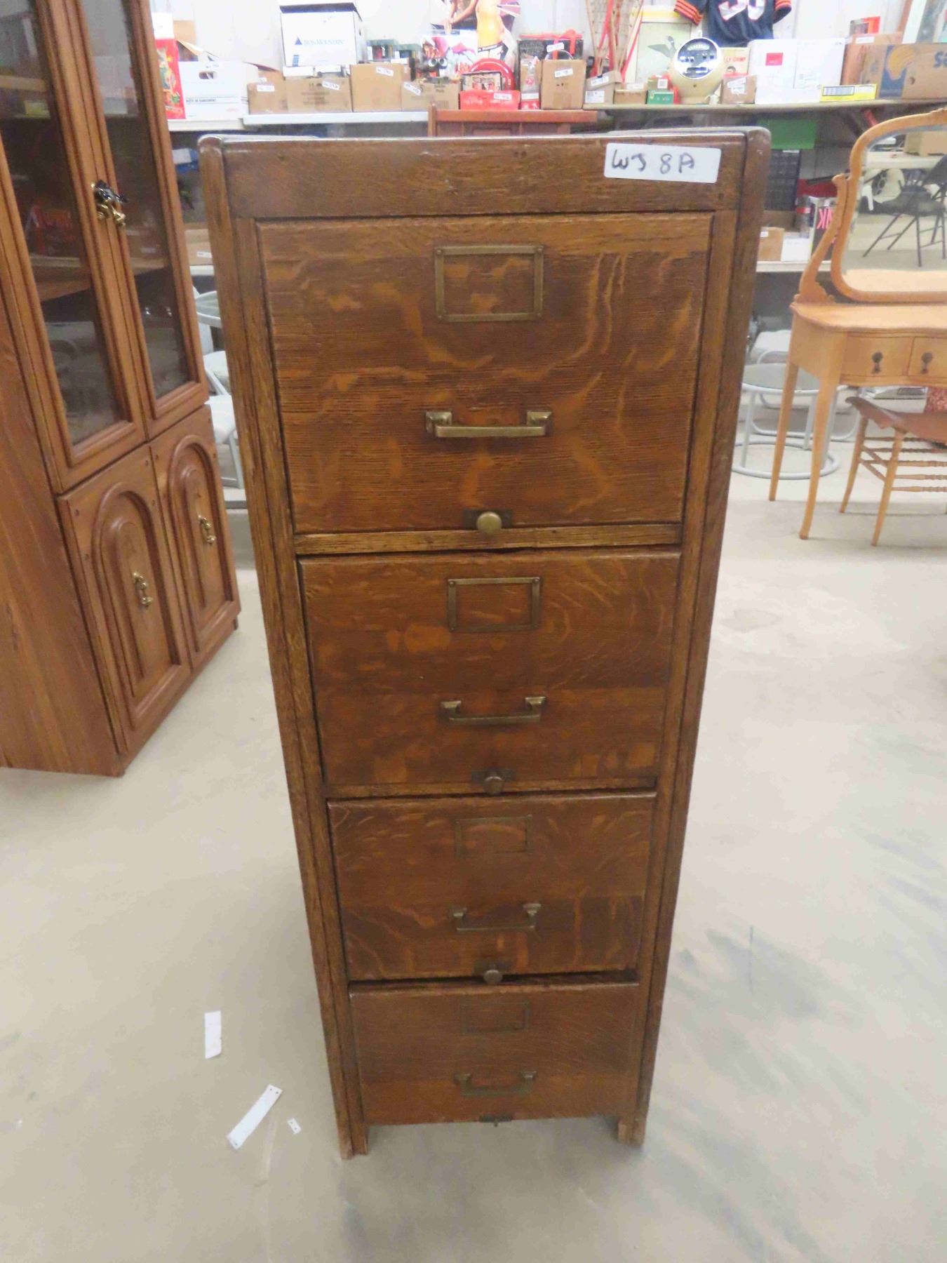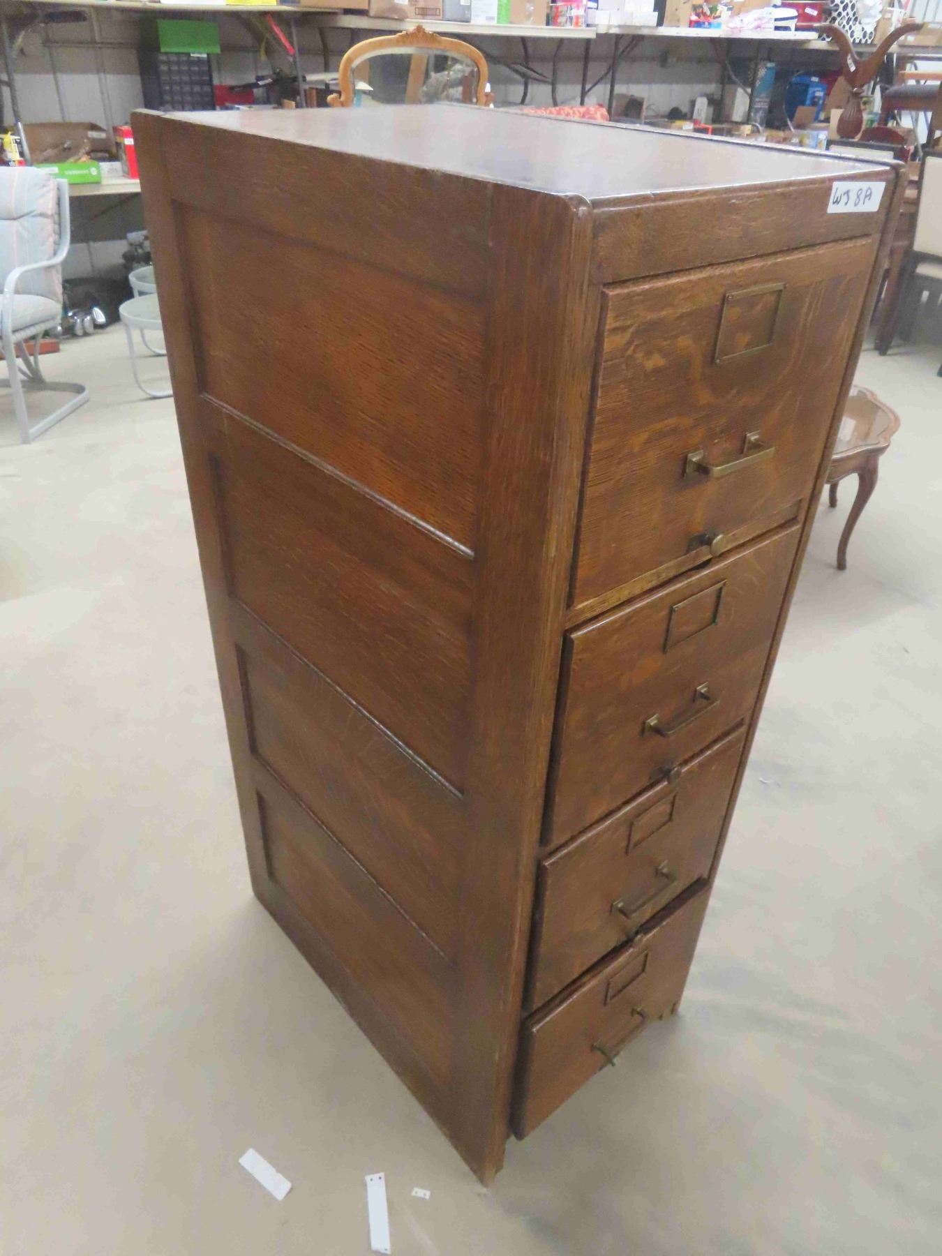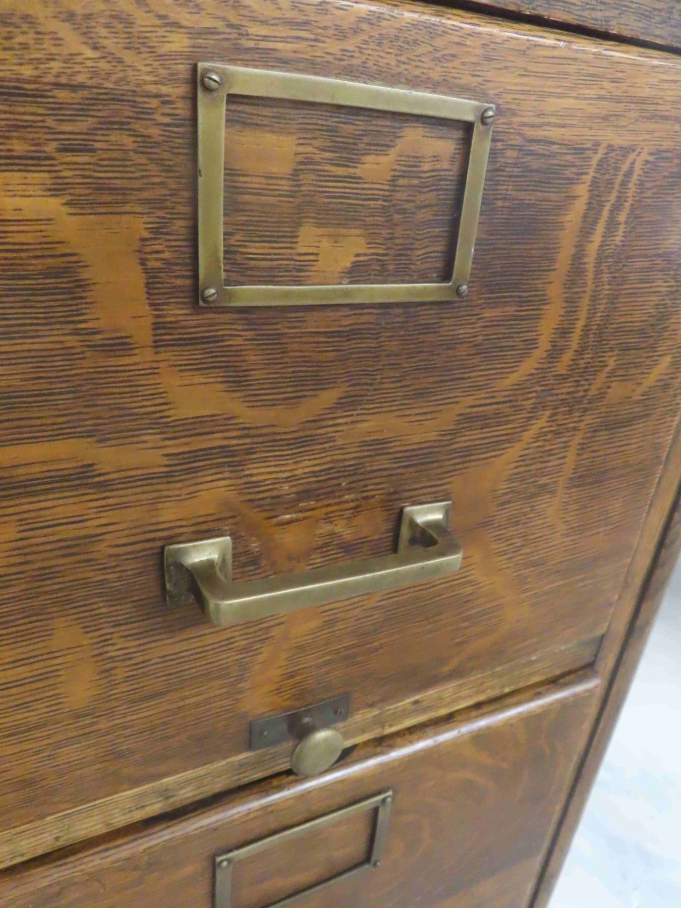 1/4 Cut Oak 4 Drawer Filing Cabinet 17.5" x 26.5" x 51.5"