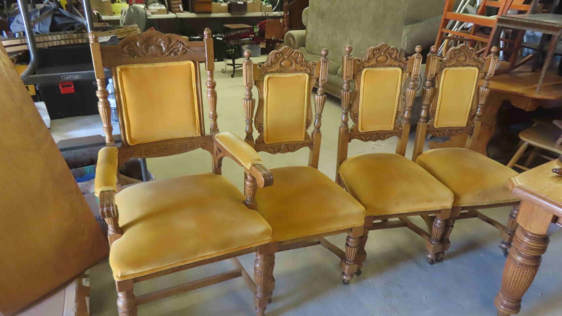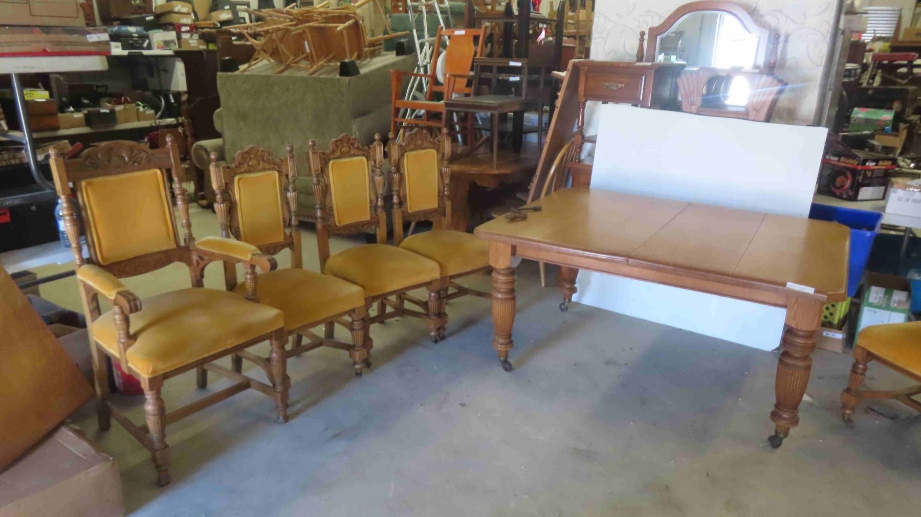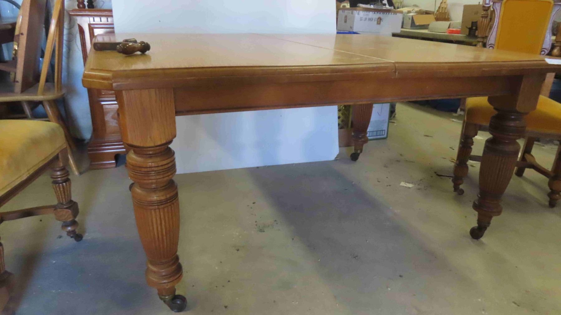 1/4 Cut Oak Table 29'' x 48'' x 60'' , (2) 18'' Leaves , 8 Chairs - All on Casters - Great Condition. Great Home Furnishing or Board Room Table To Impress Clients