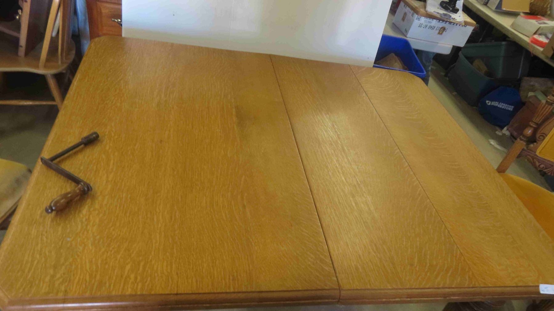 1/4 Cut Oak Table 29'' x 48'' x 60'' , (2) 18'' Leaves , 8 Chairs -