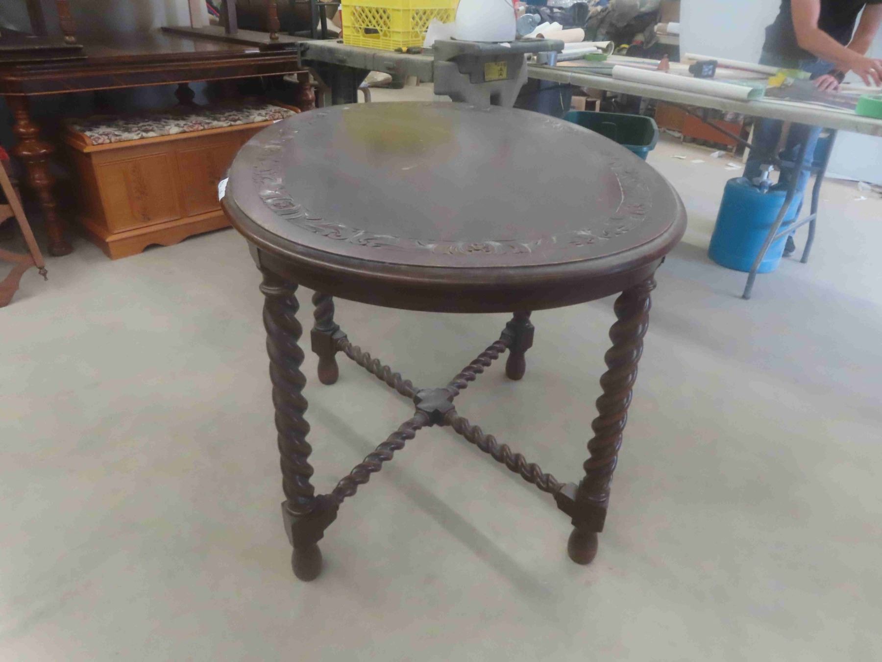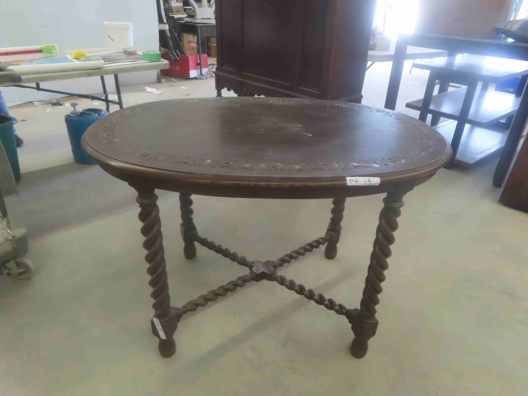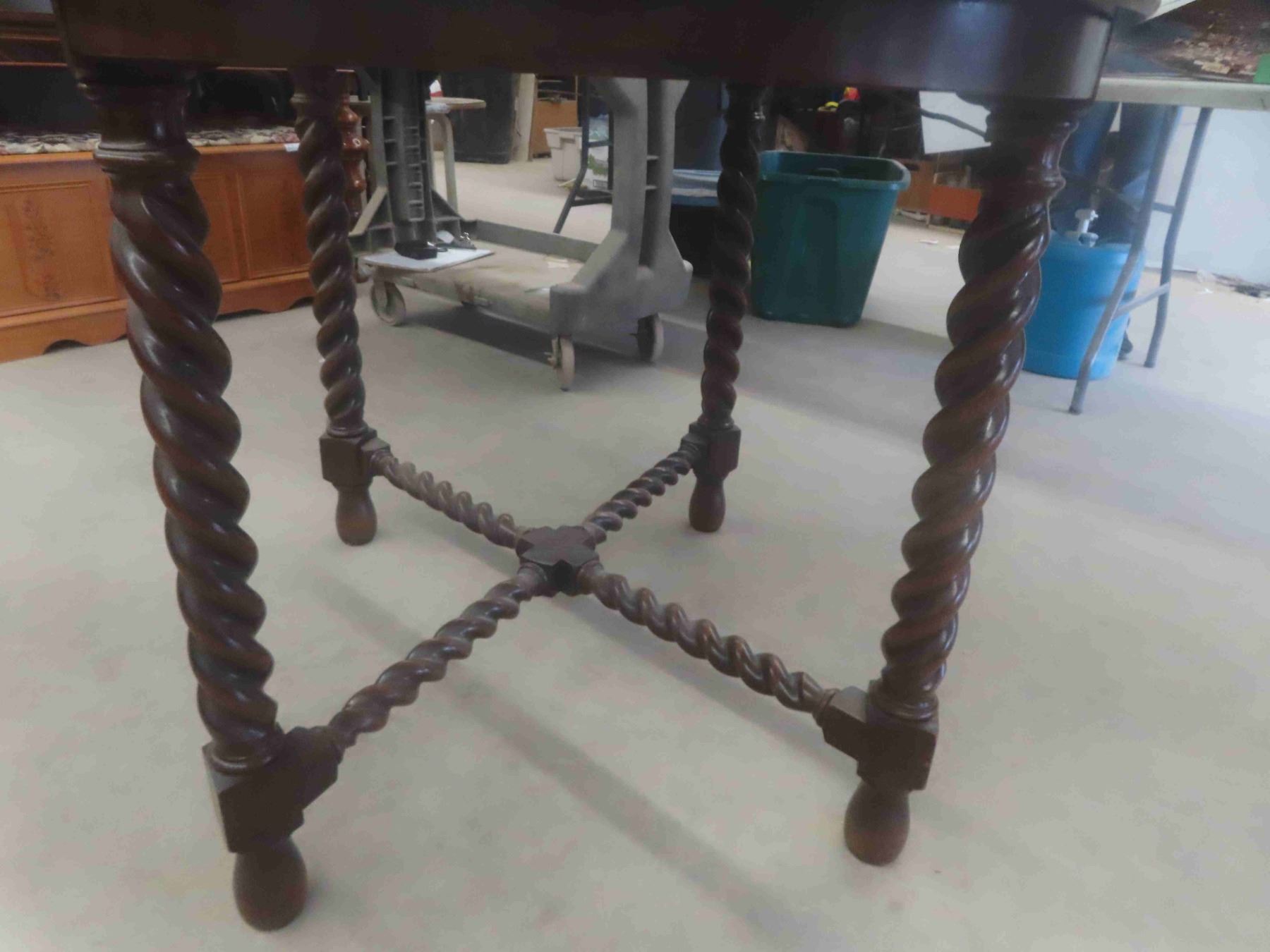 1/4 Cut Oak Table with Carved Details and Jacob Bean Twist Legs 30'' x 32'' x 46''