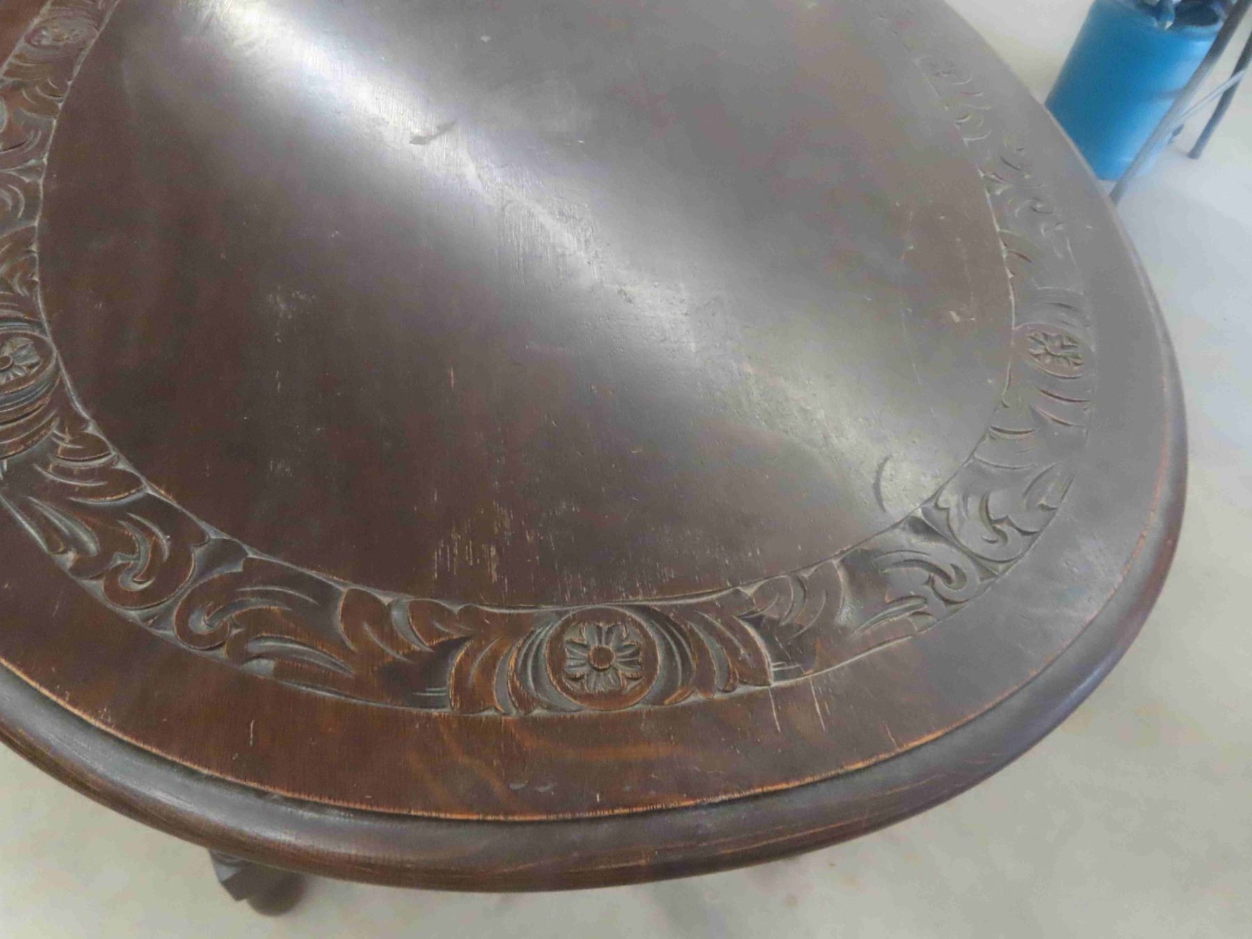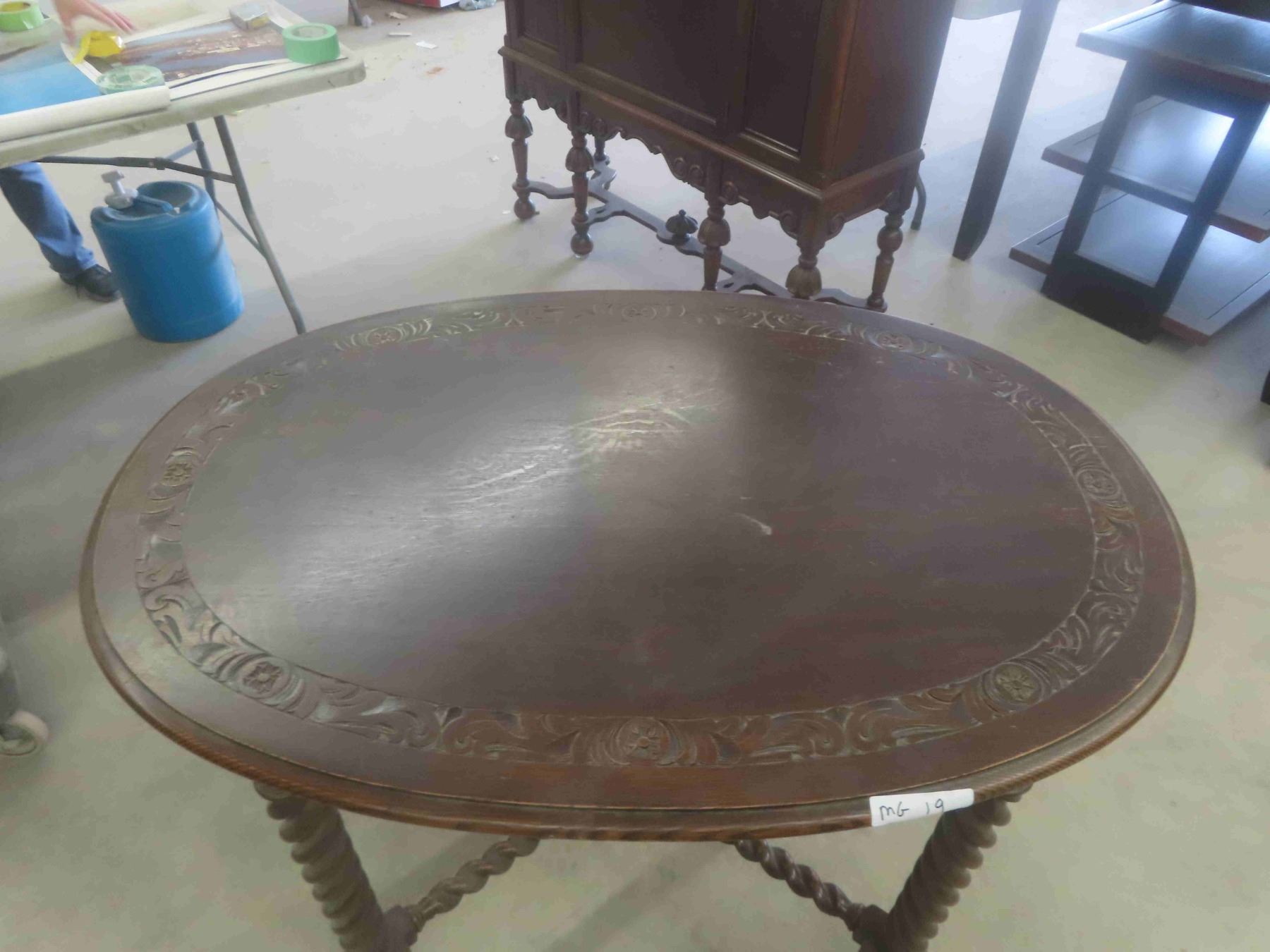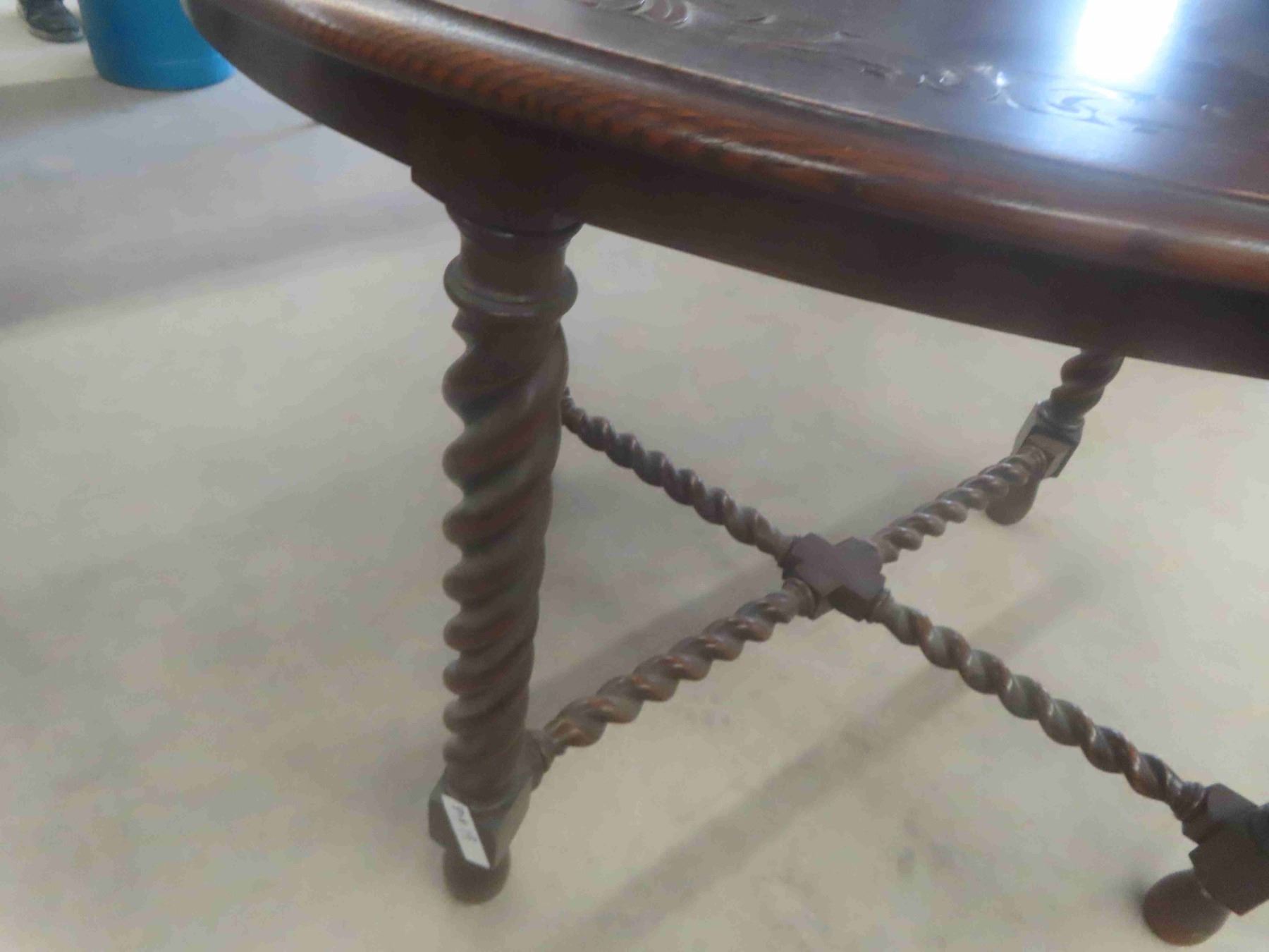 1/4 Cut Oak Table with Carved Details and Jacob Bean Twist Legs 30'' x 32'' x 46''