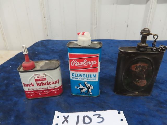 1) Ford Lock Lube Tin 4 oz, 1) Rawlings Baseball Dressing 4oz & 1) Spot Oil