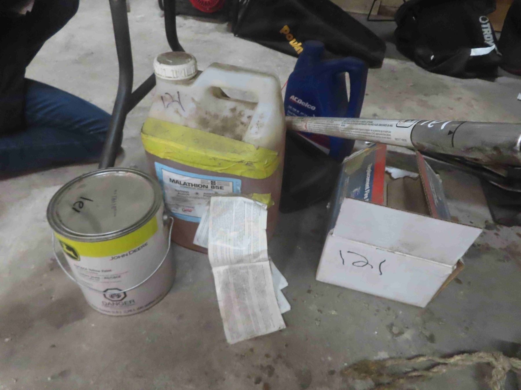 1 Gallon John Deere Yellw Paint, 15W-40 Diesel Motor Oil, Fire Bricks, Malathion
