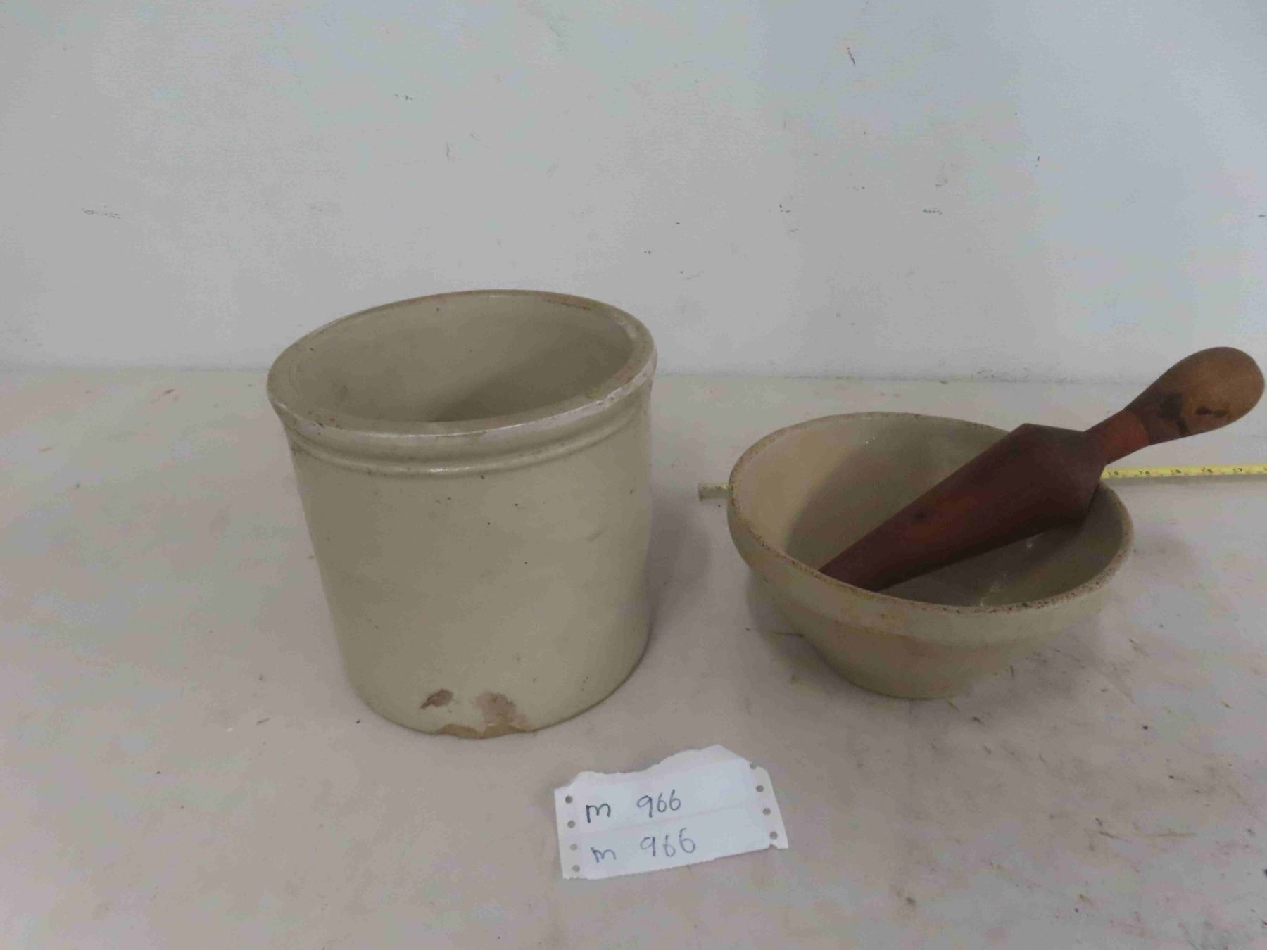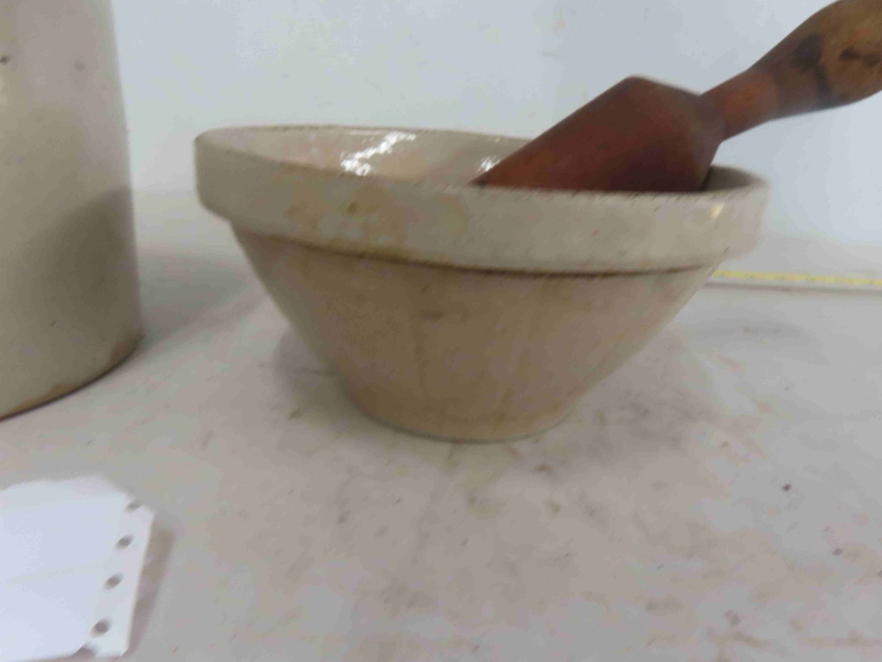 1 Gallon Stoneware Crock, Mixing Bowl, Wood Mixer