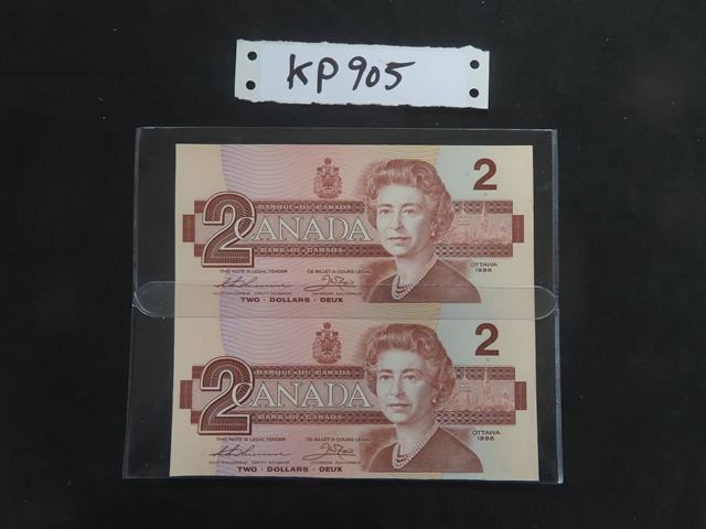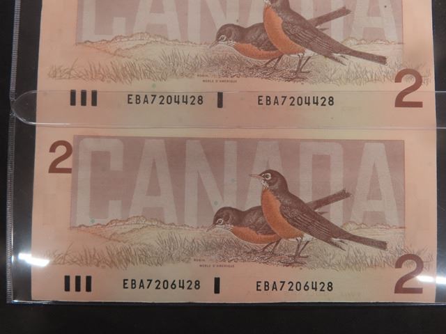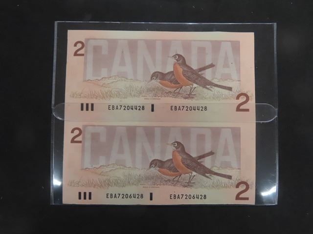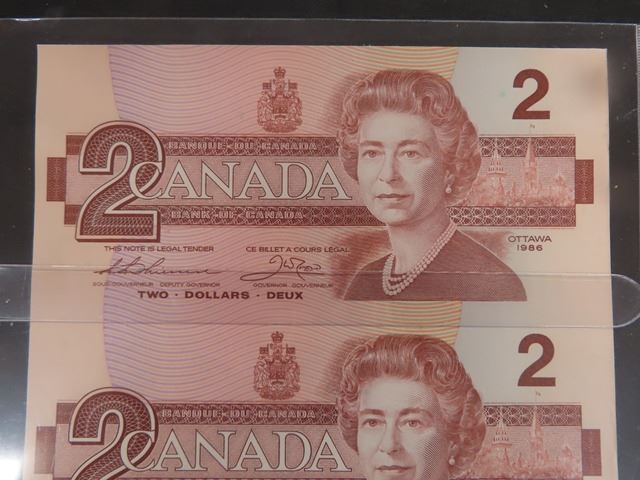 1 Sheet of 2 Uncut 1986 Canada $2.00 Bills