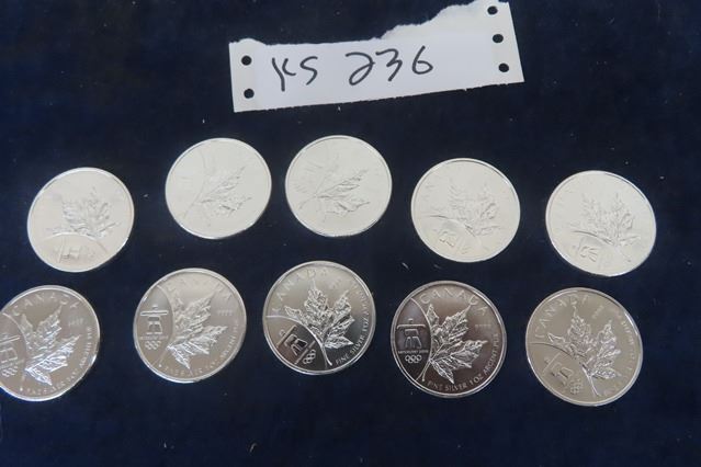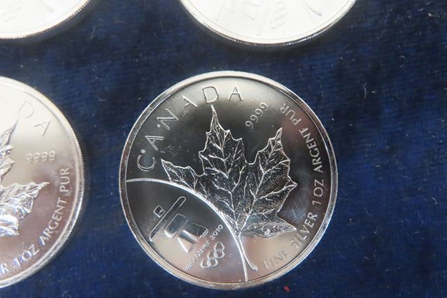 (10) 2008 Canada $ Silver Coins .9999 Pure 1 Oz. Each has 2010 Vancouver Olympic Logo