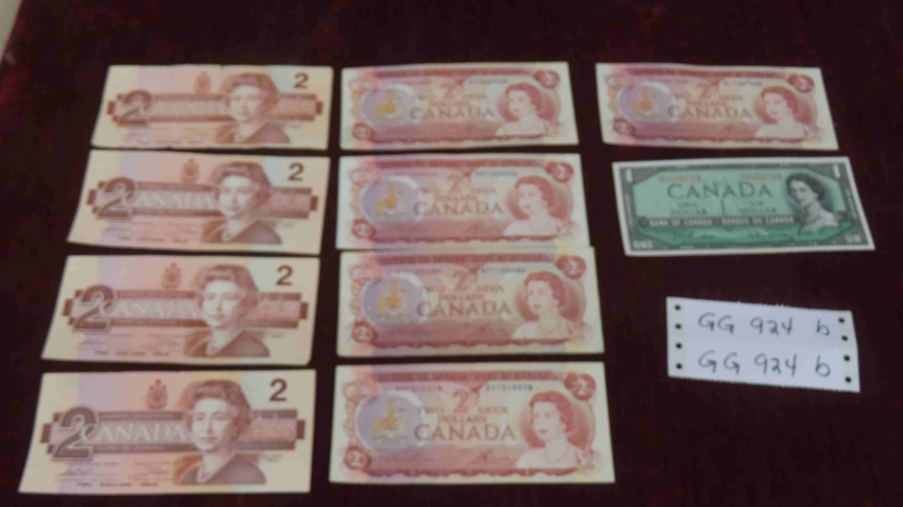 10 Canadian Bills : (9) $2 Bills (1) $1 Bill