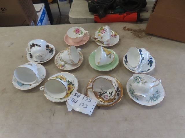10 China Cup + Saucer Pairs ; Consort, Regency, Royal Albert, Grafton, Queen Anne