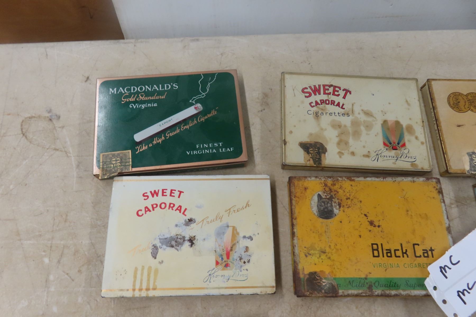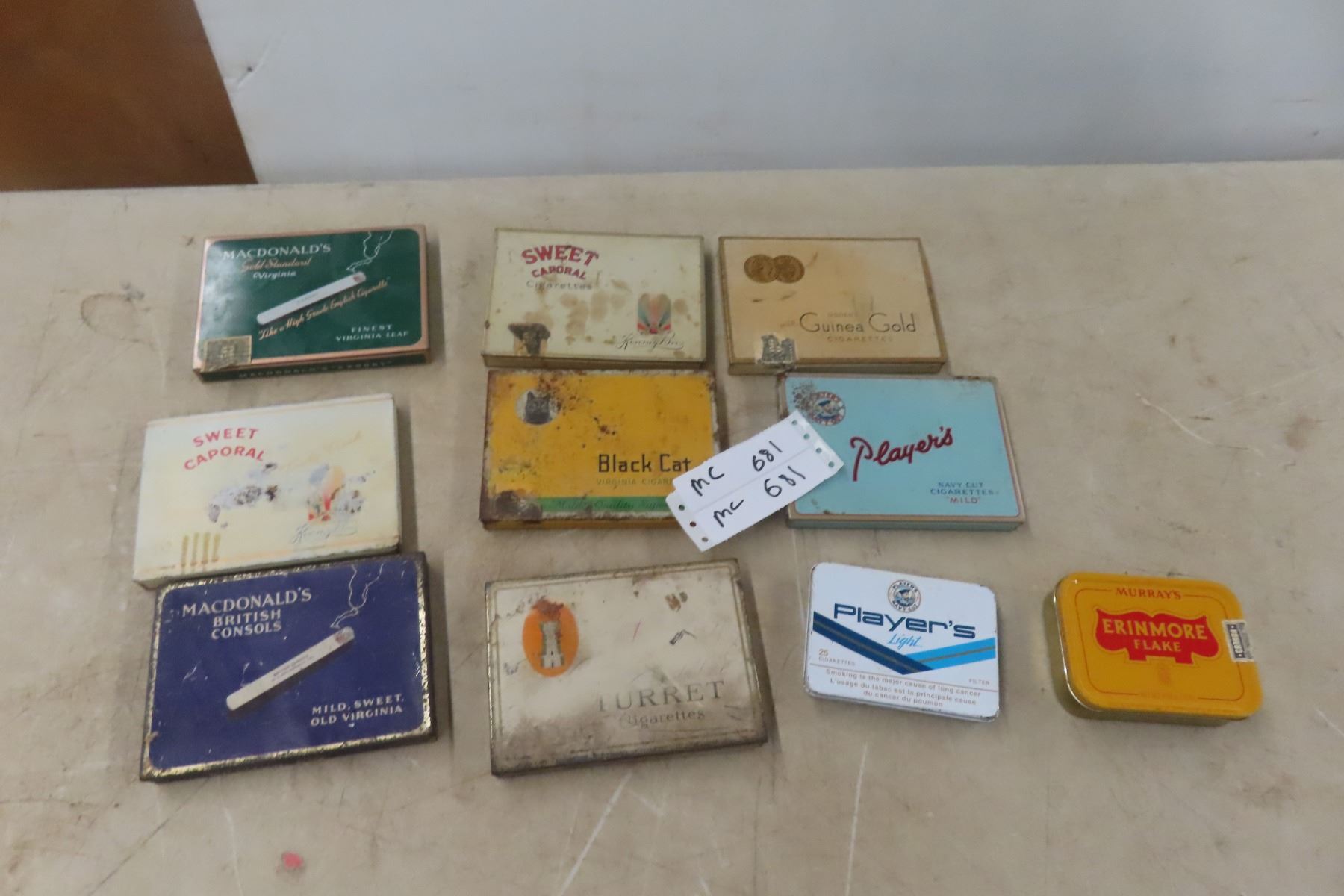 10 Cigarette Tins : Players, Black Cat, Sweet Caporal, MacDonalds & Others.