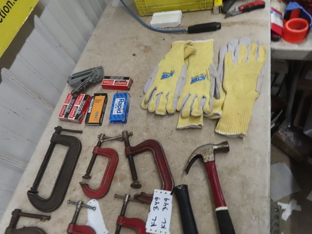 10 Clamps, 4 Hammers, 3 New Pairs of Gloves plus more
