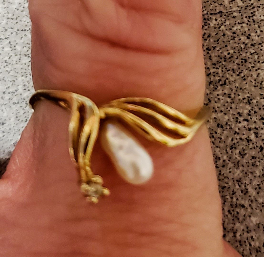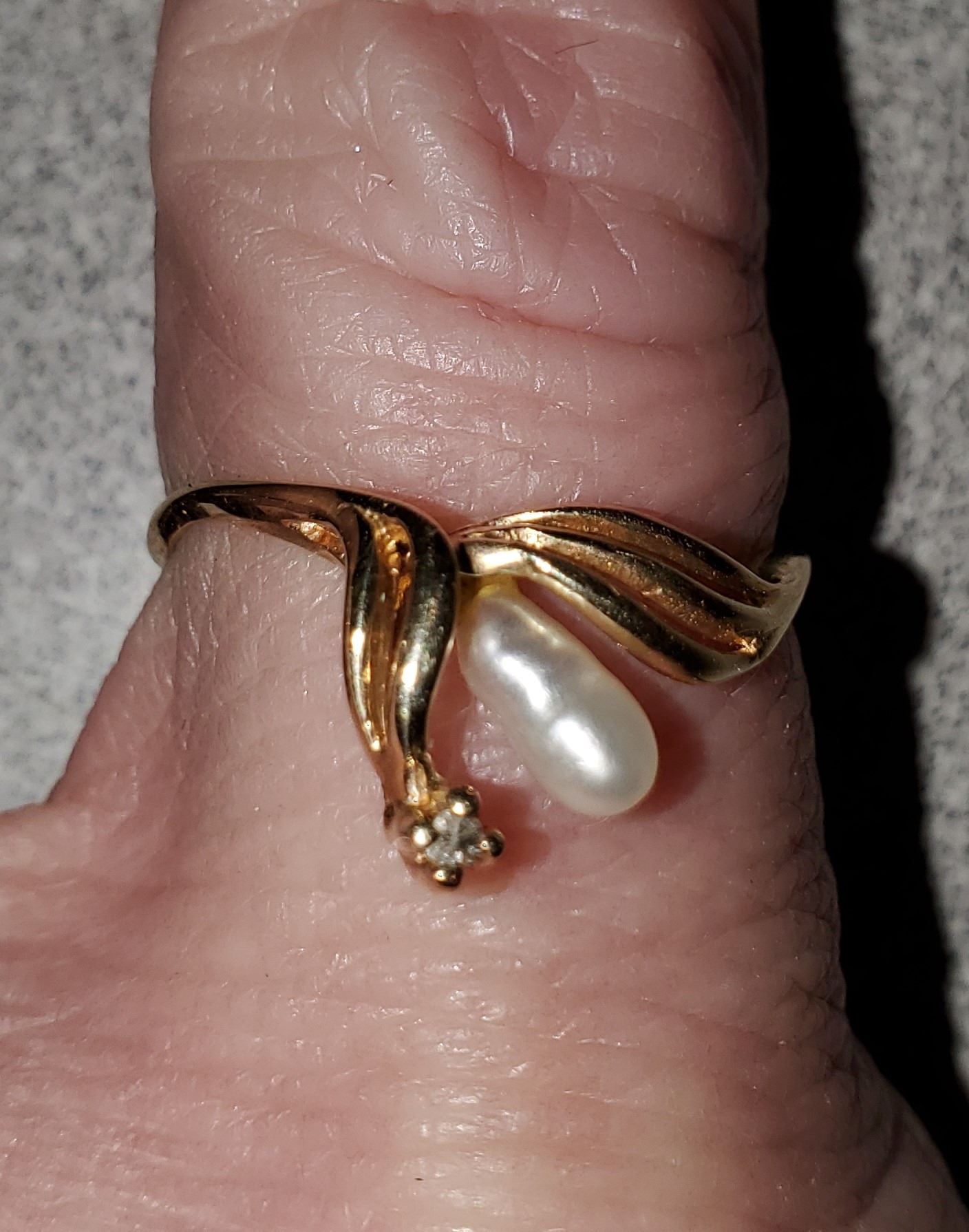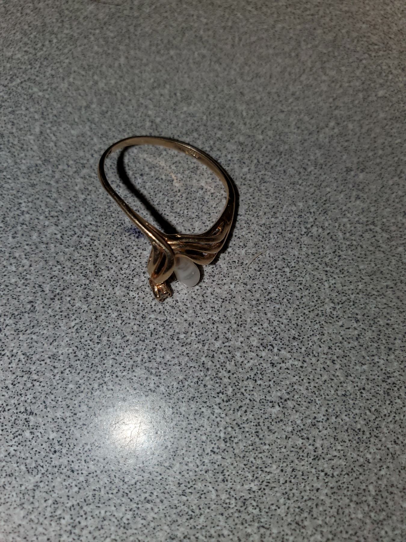 10 KT Freshwater Pearl & Diamond Chip Ring- Size 7? & 10KT Bracelet