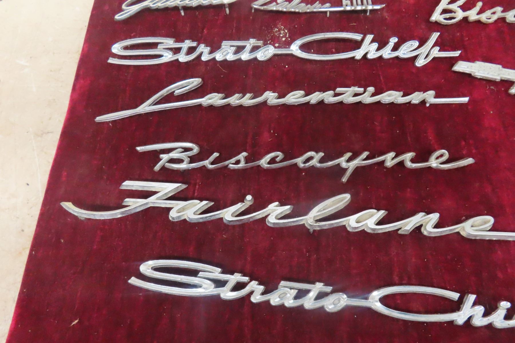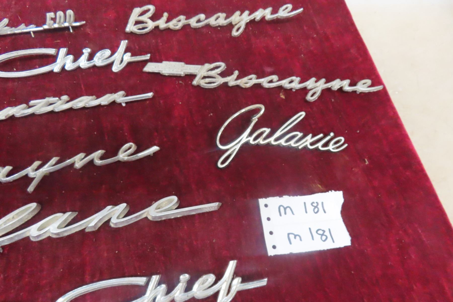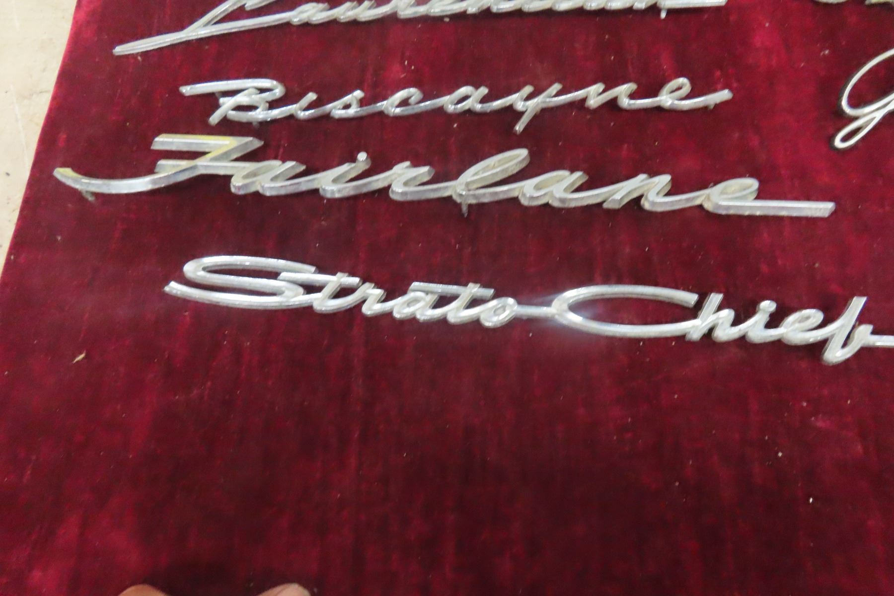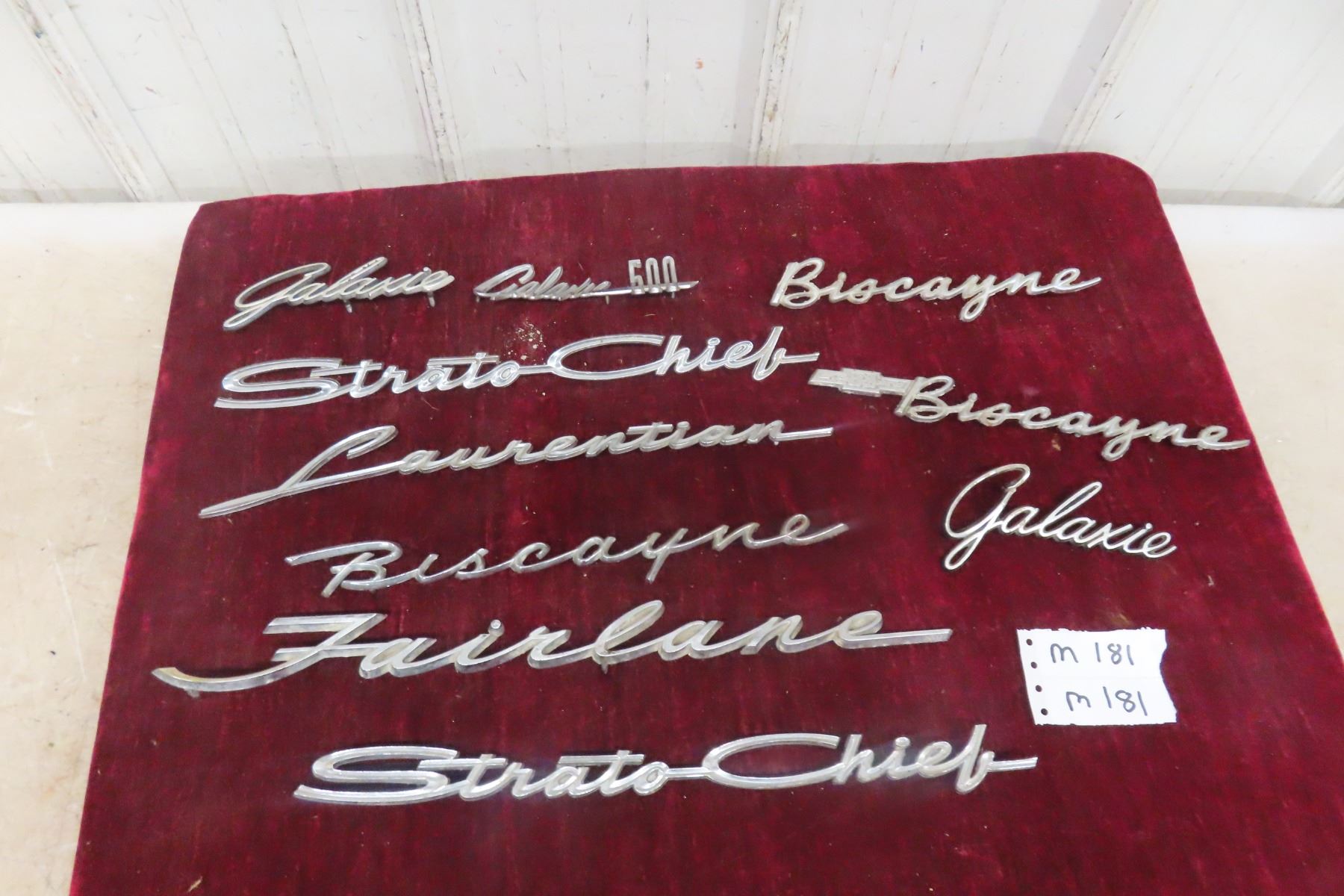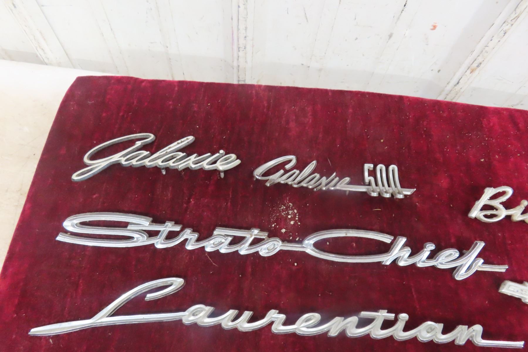 10 Vintage Various Auto Chrome Decals - Galaxies, Strato Chief, Fairlane +