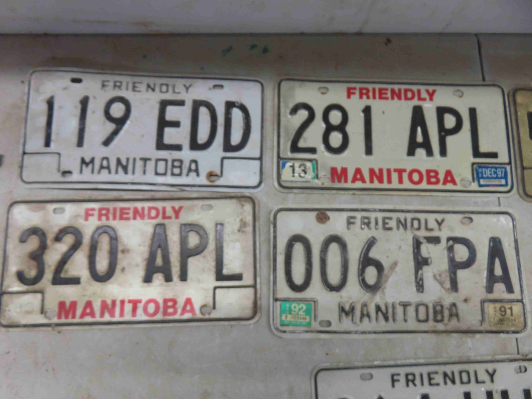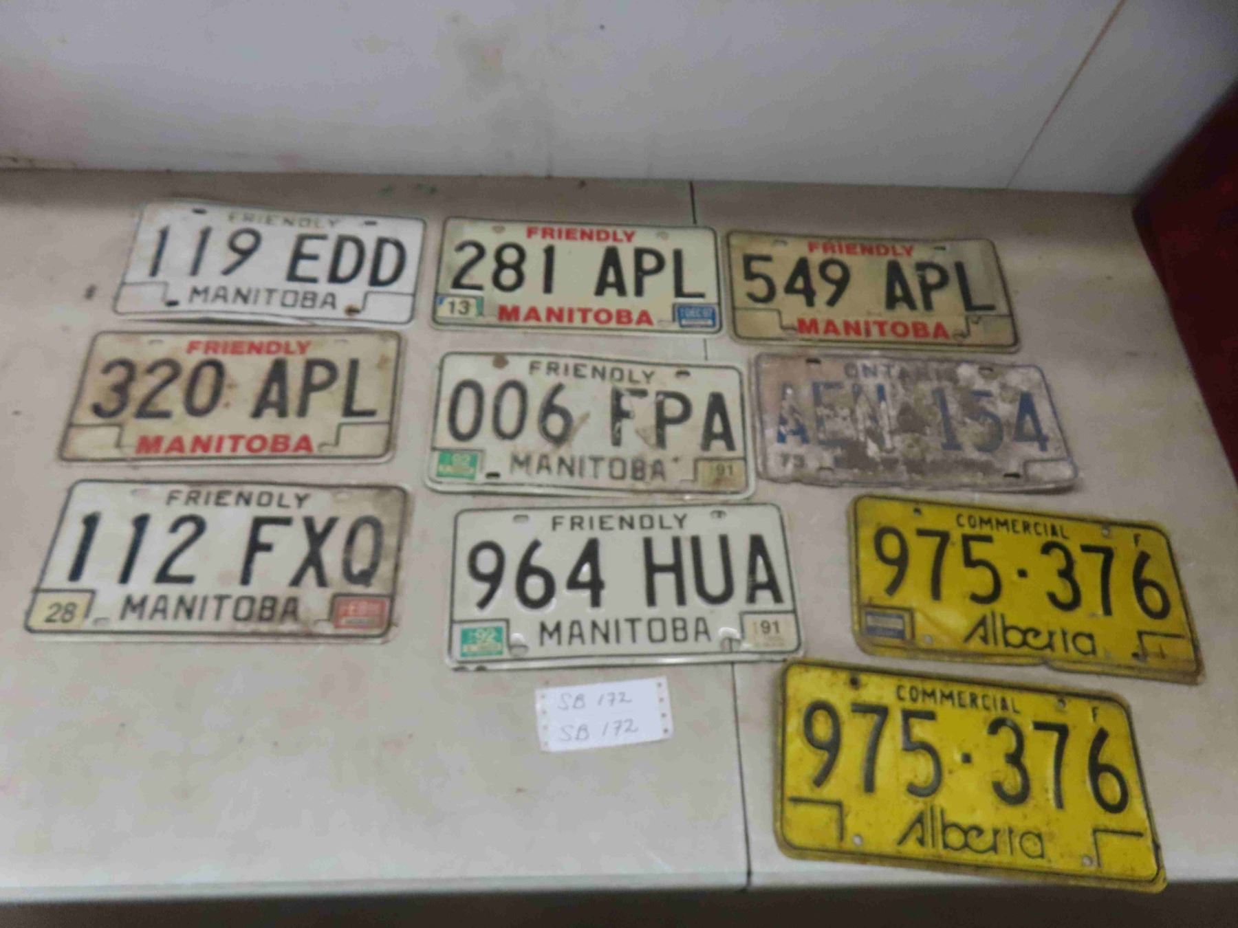 10 lisence plates 7 manitoba, 2 alberta 1 ontario