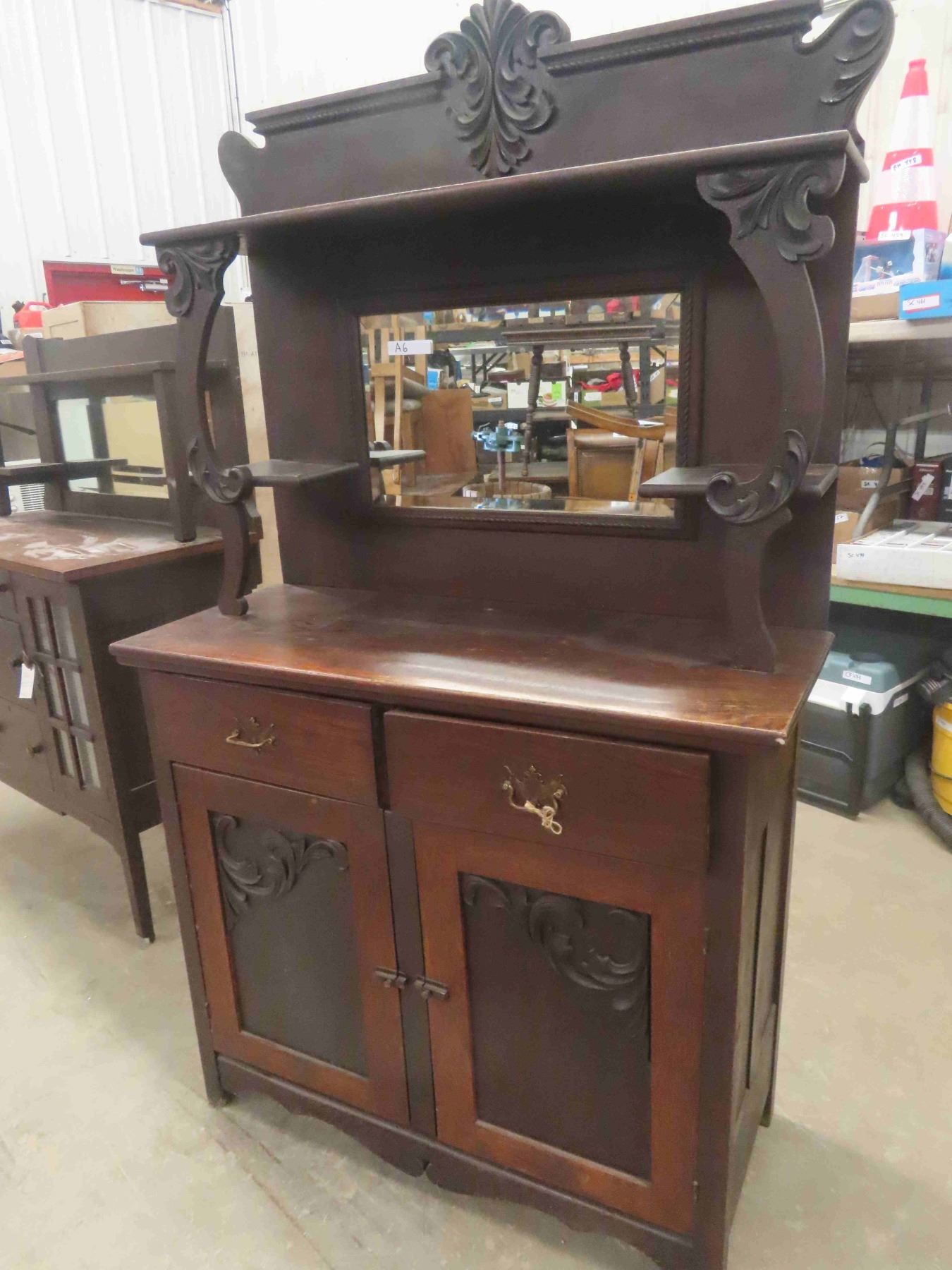 100-120 Year Old Oak Buffet - Beautiful Original Condition with Bevelled Mirror