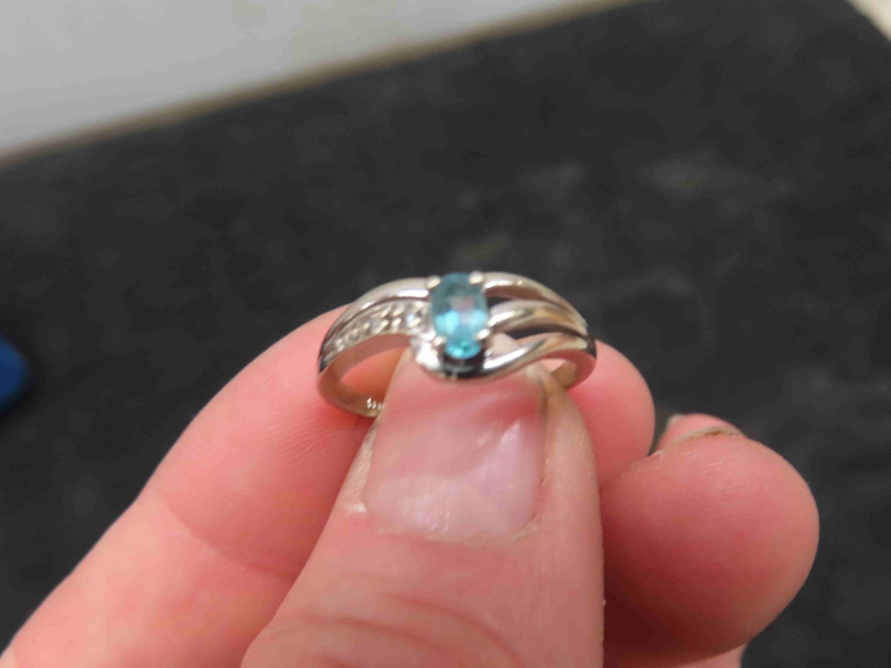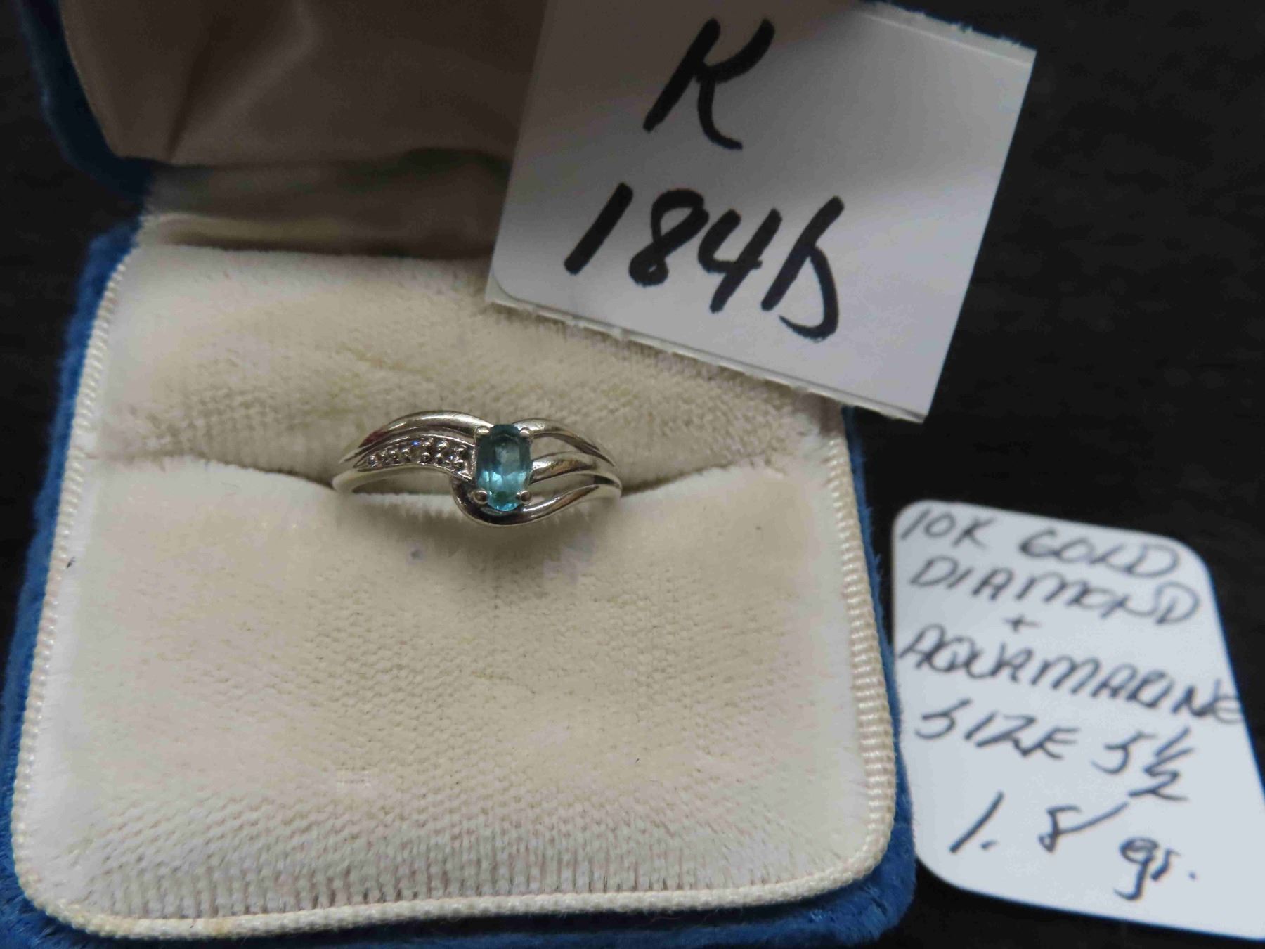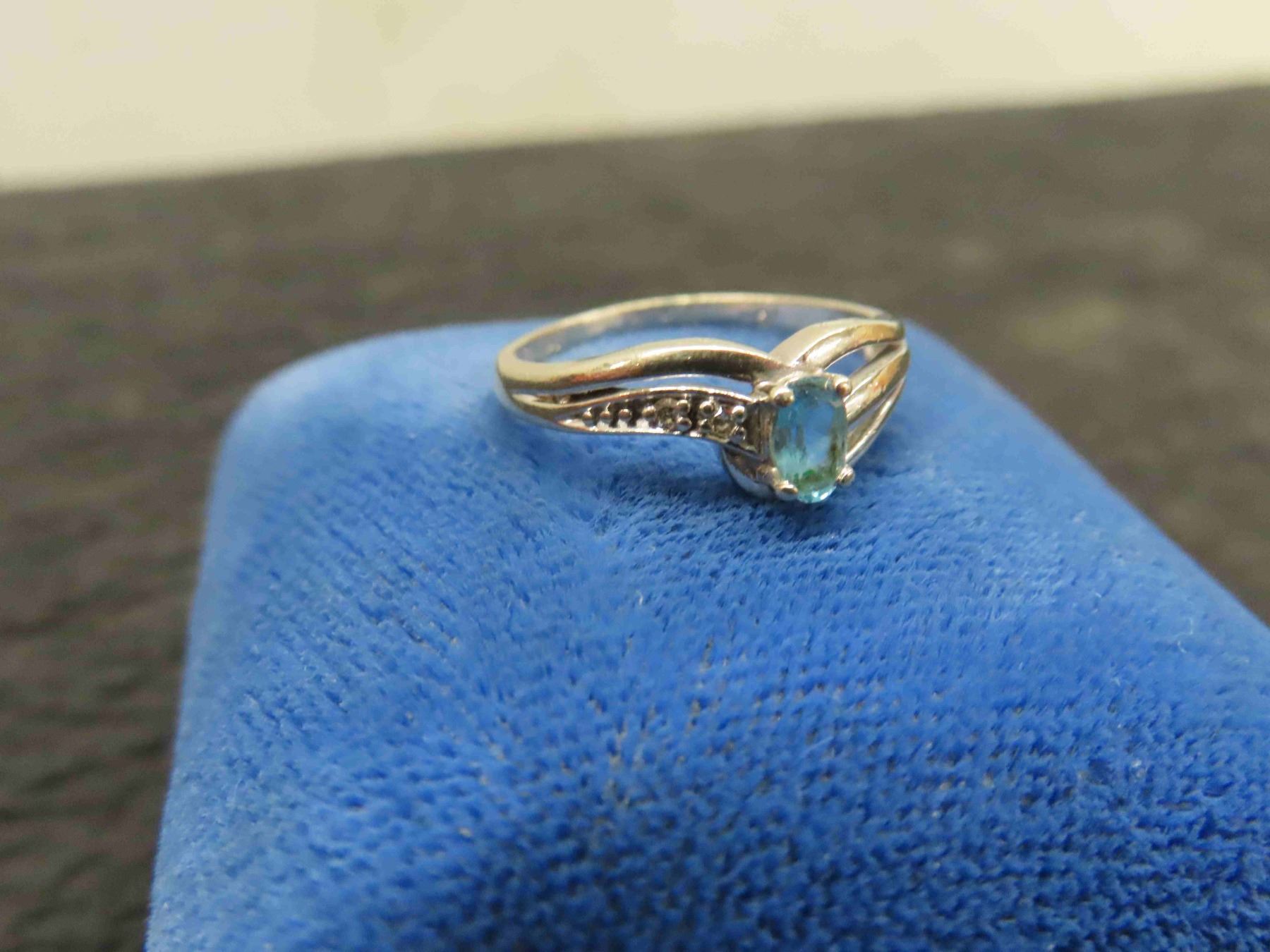 10K Gold Diamond and Aquamarine Size 5.5 Ring. Total Weight 1.8 Grams