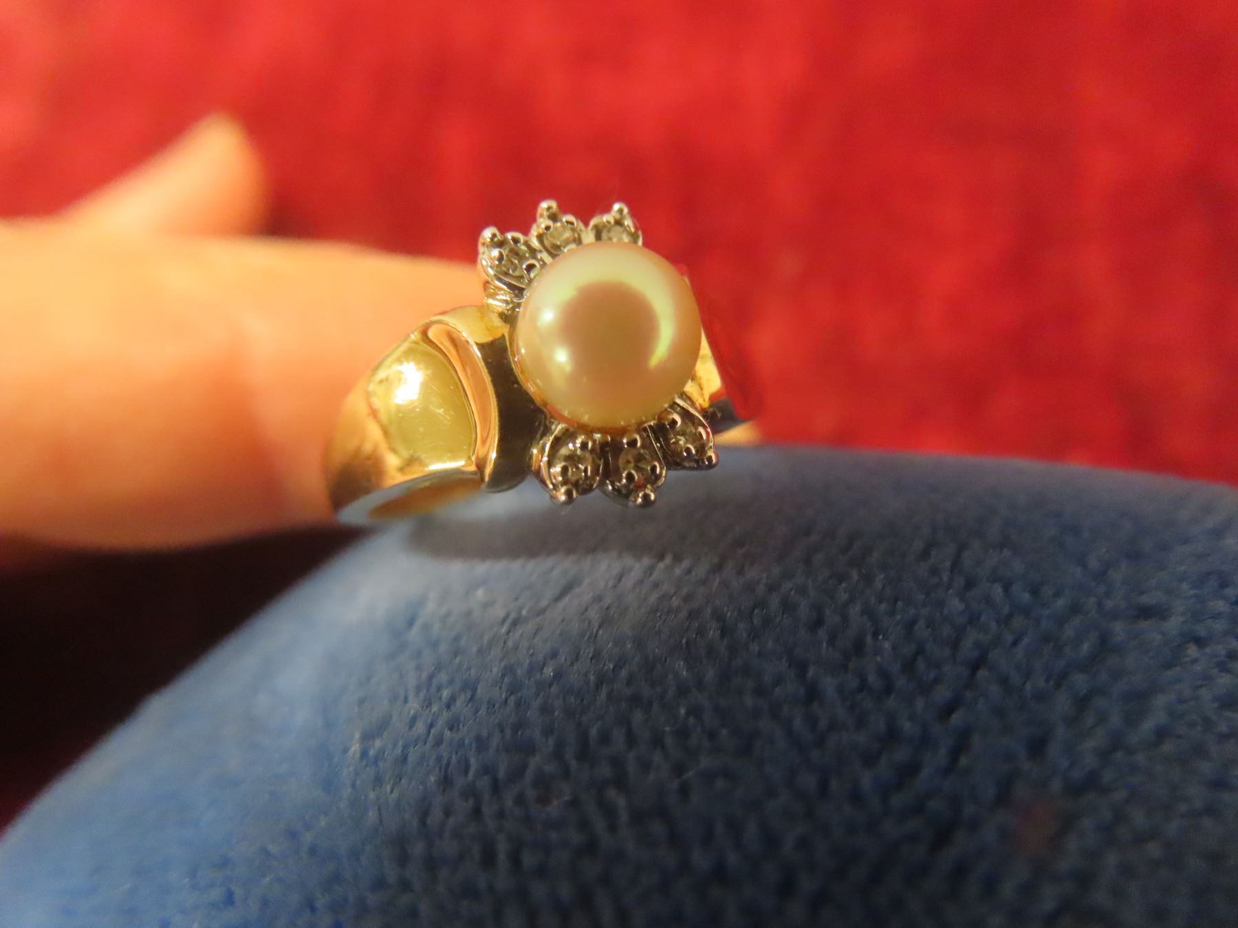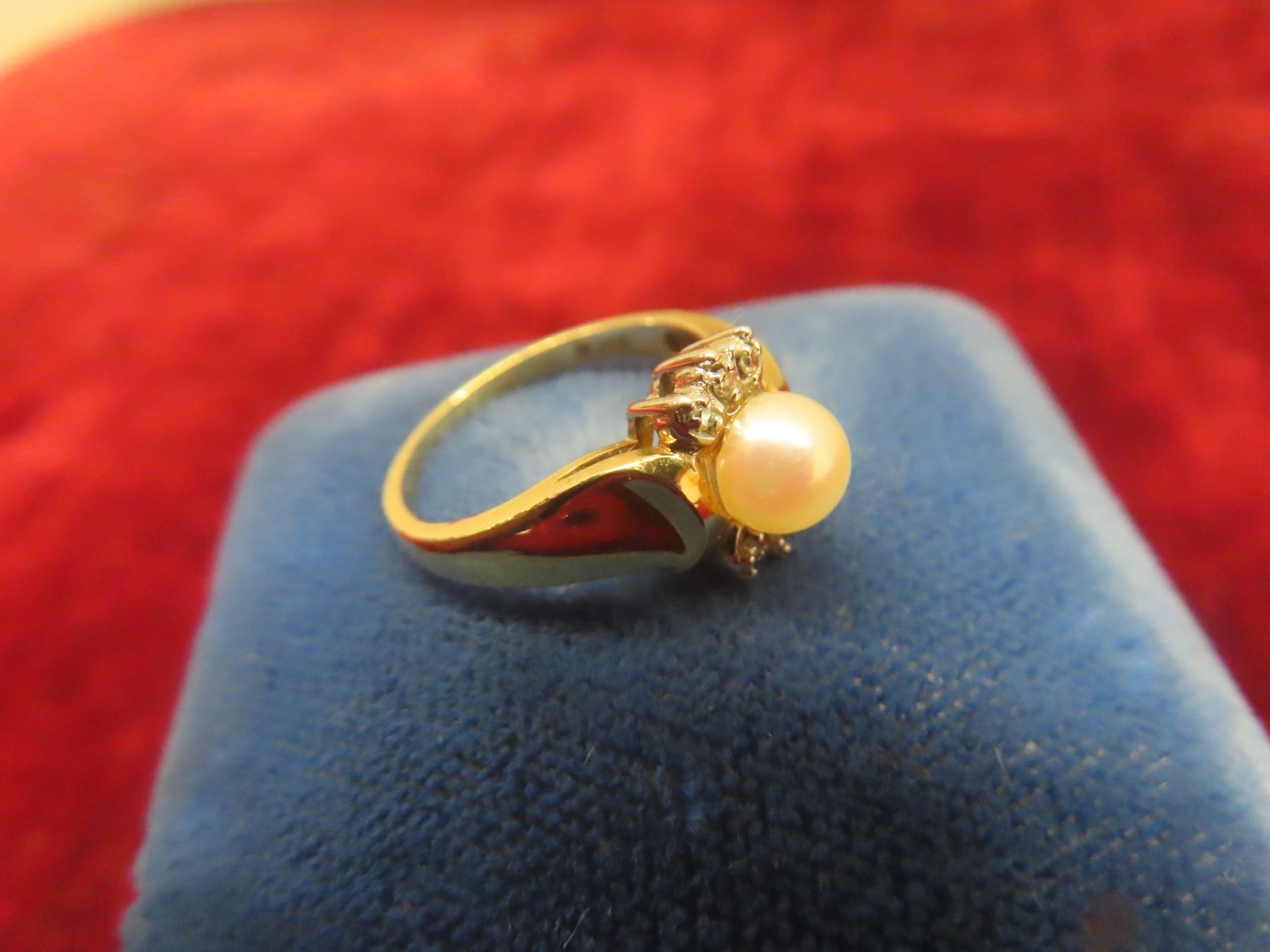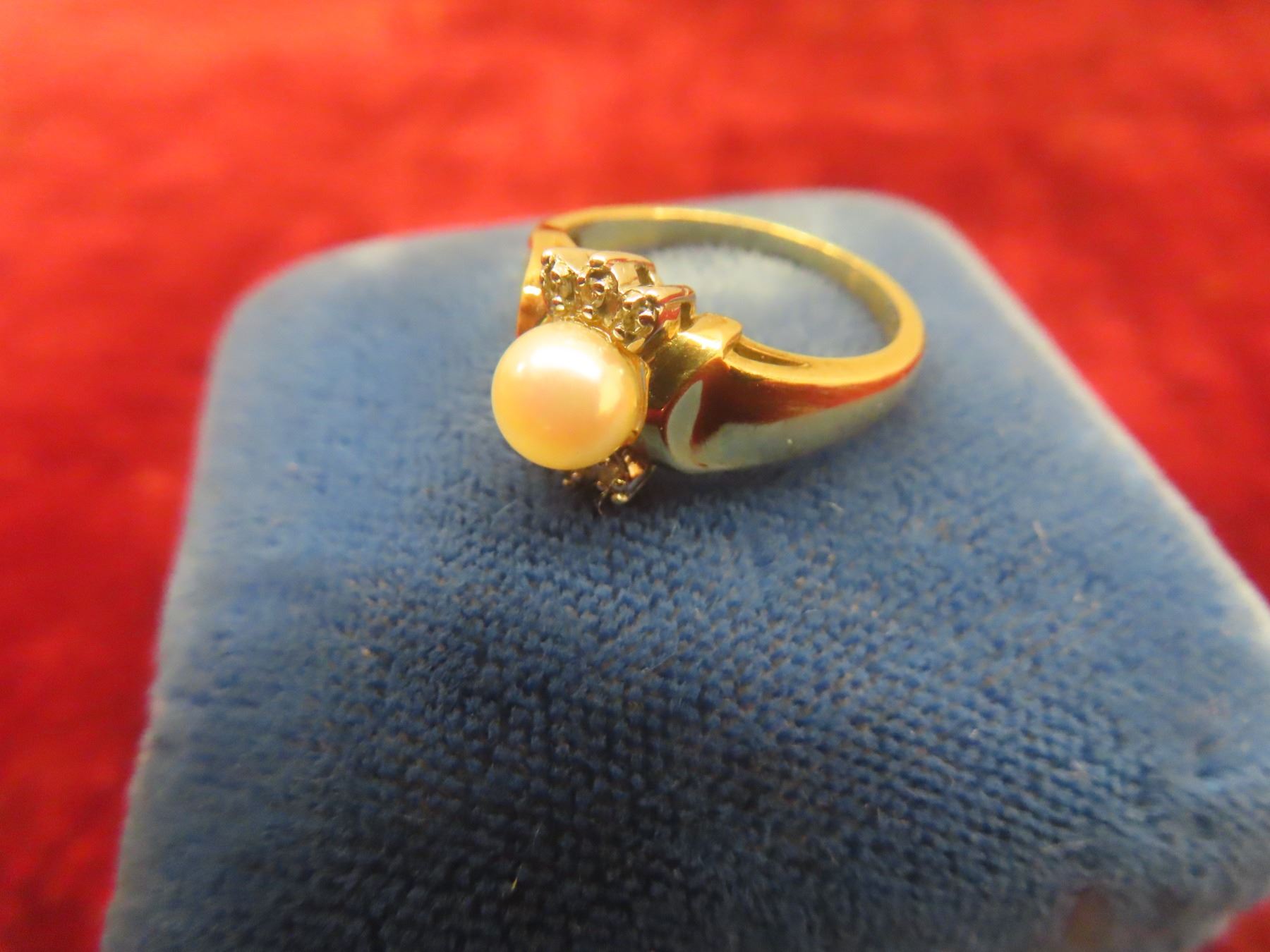 10K Gold Diamond and Pearl Ring, Size 5, Total Weight 2.8 G