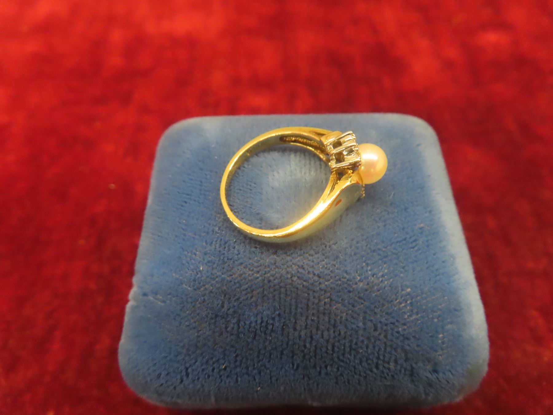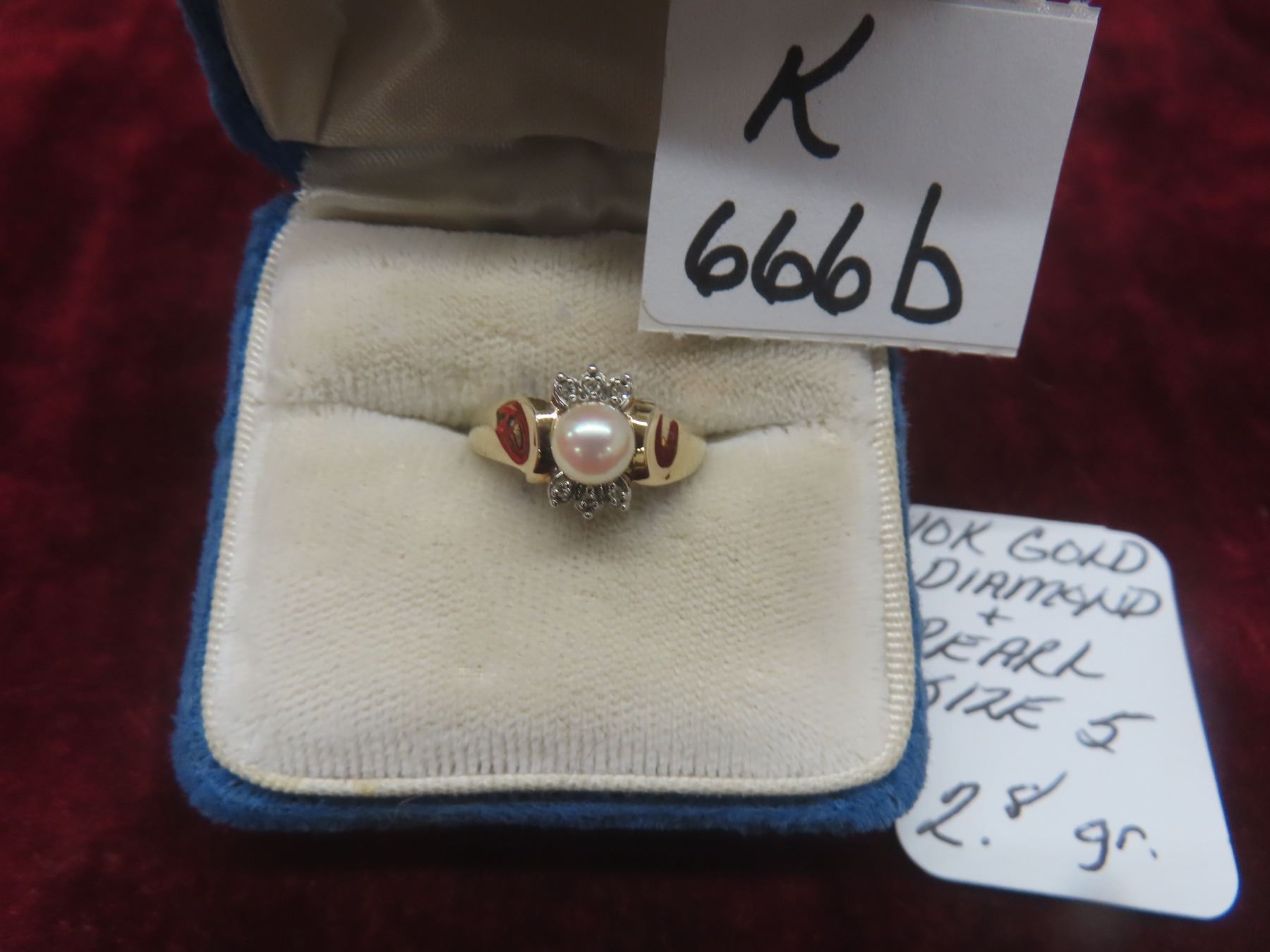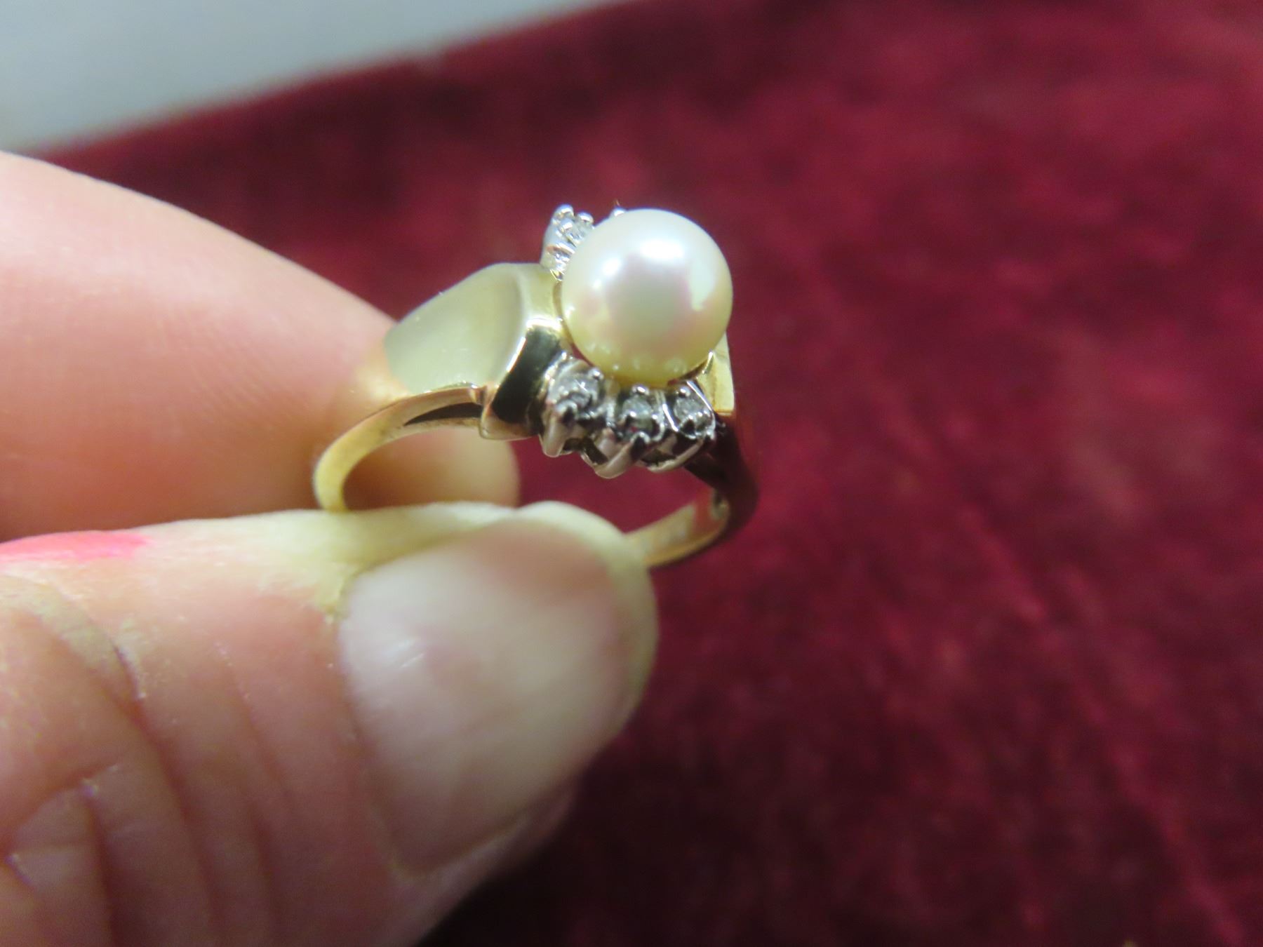 10K Gold Diamond and Pearl Ring, Size 5, Total Weight 2.8 G