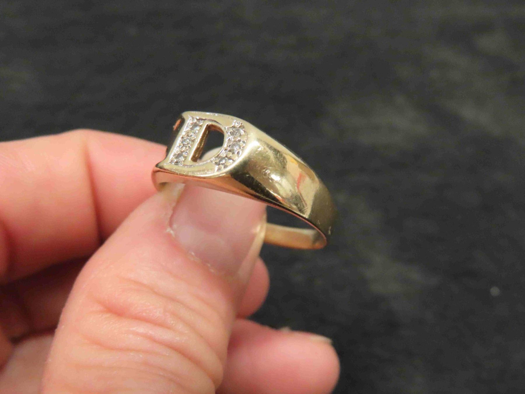 10K Gold and Diamond "D" Ring Size 12.5. Total 3.5 Grams