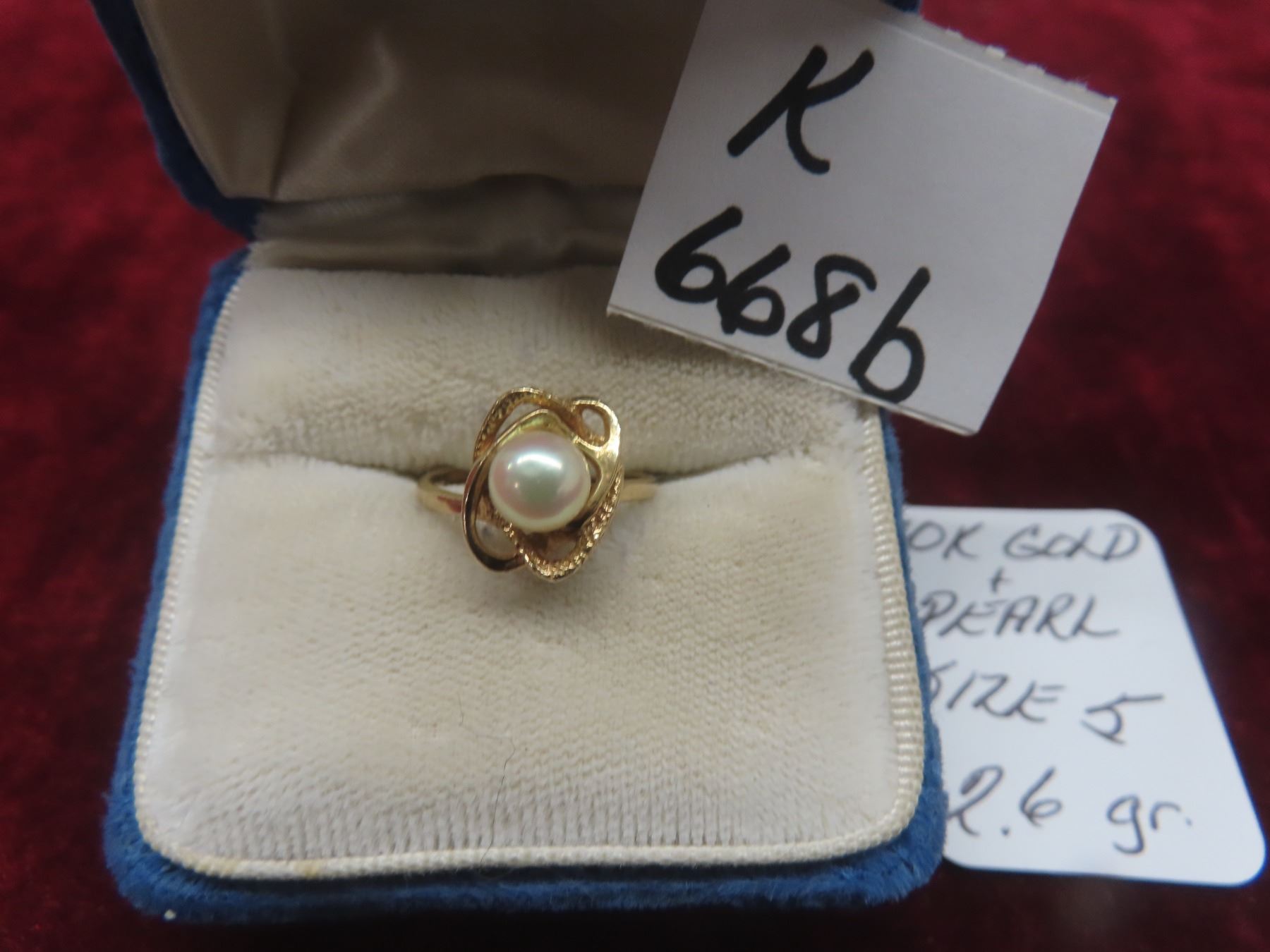 10K Gold and Pearl Ring, Size 5, Total Weight 2.6 G