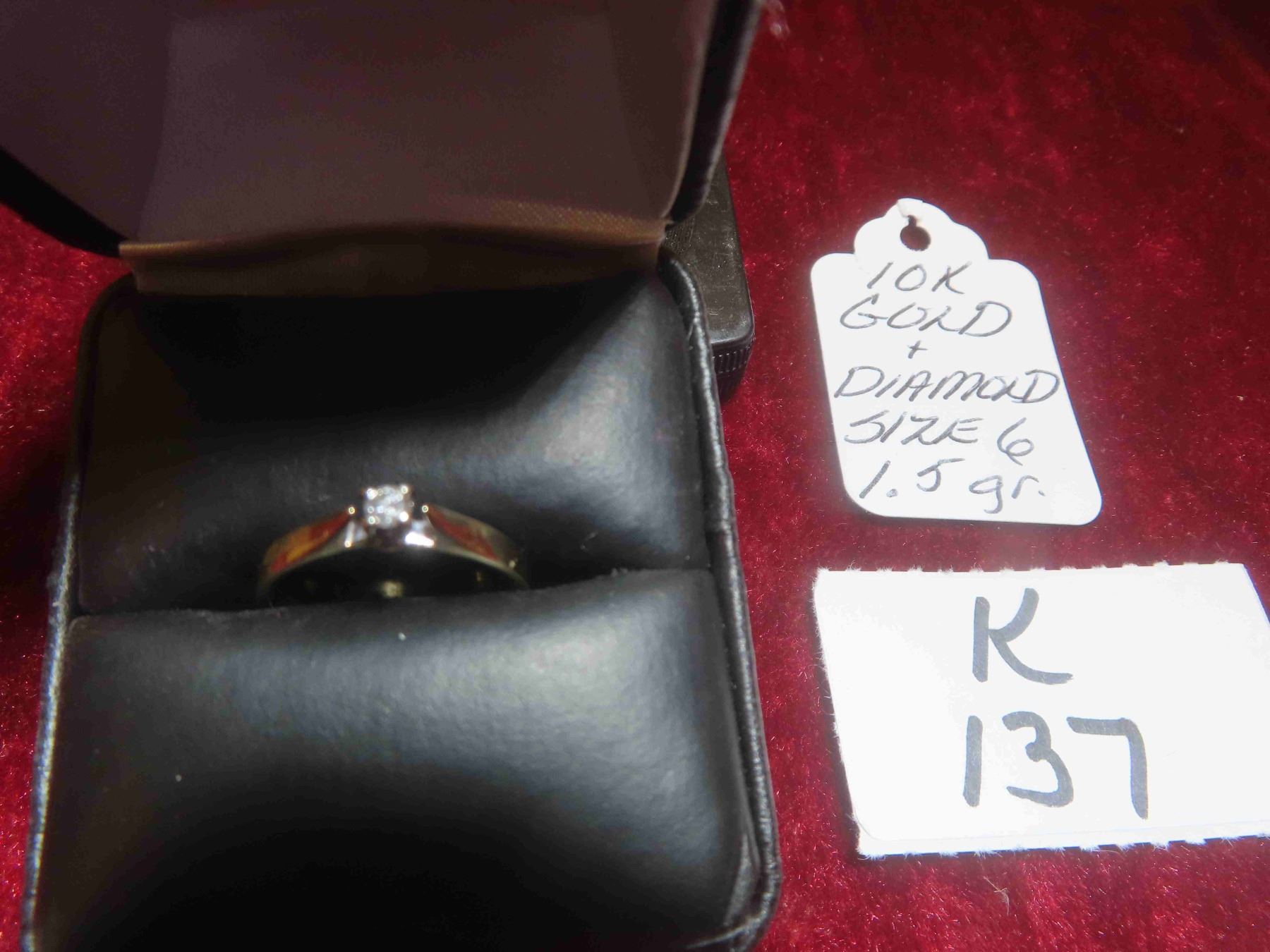 10K Gold with Solitaire Diamond Sz 6 - Total Weight 1.5 gr