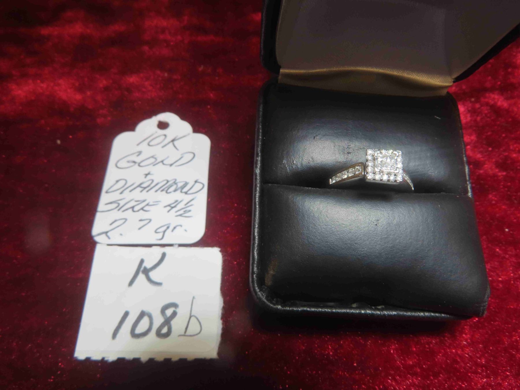 10K White Gold Ring with Diamonds Sz 4.5 - Total Weight 2.7 gr