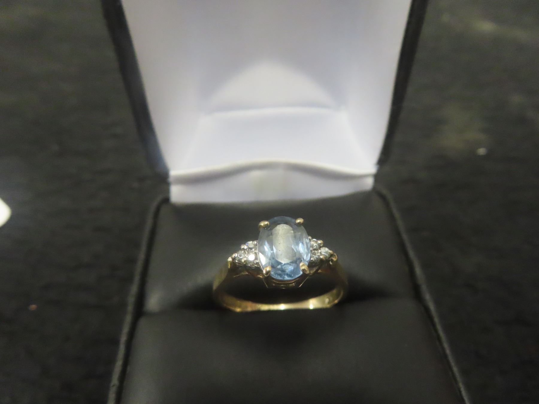 10Kt Gold Diamond Aquamarine Size 6 1/2 Ring 2.1gr.