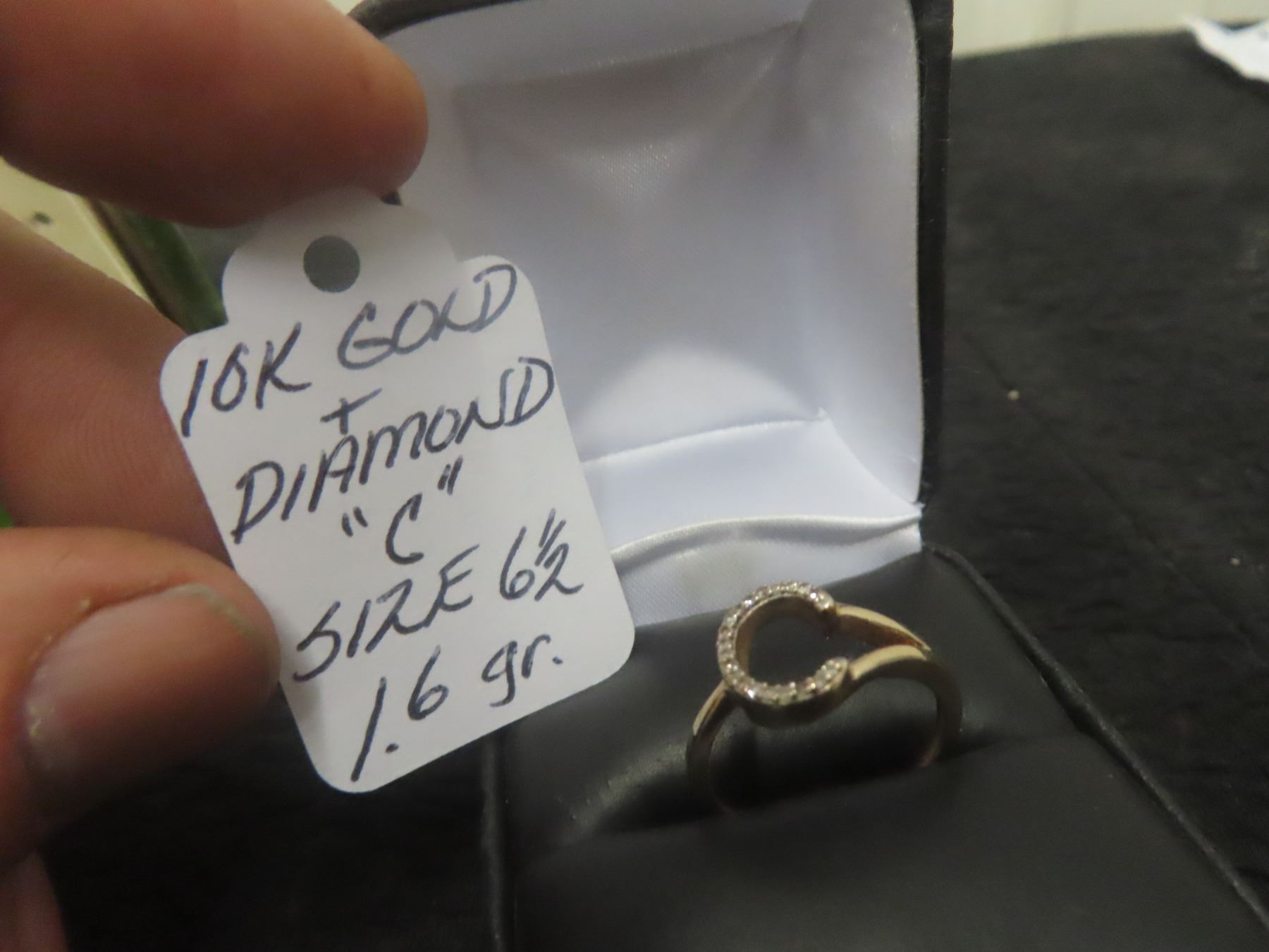 10Kt Gold + Diamond "C" Size 6 1/2 Ring 1.6gr