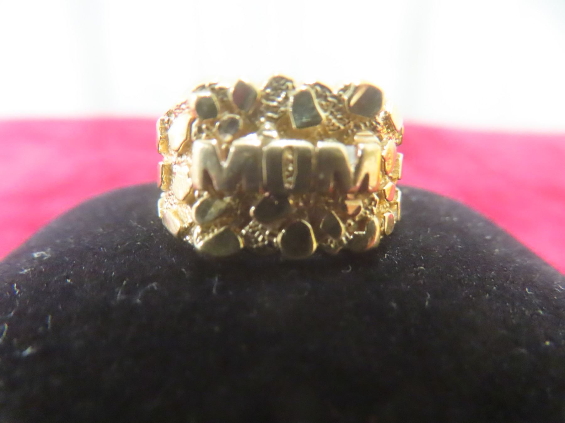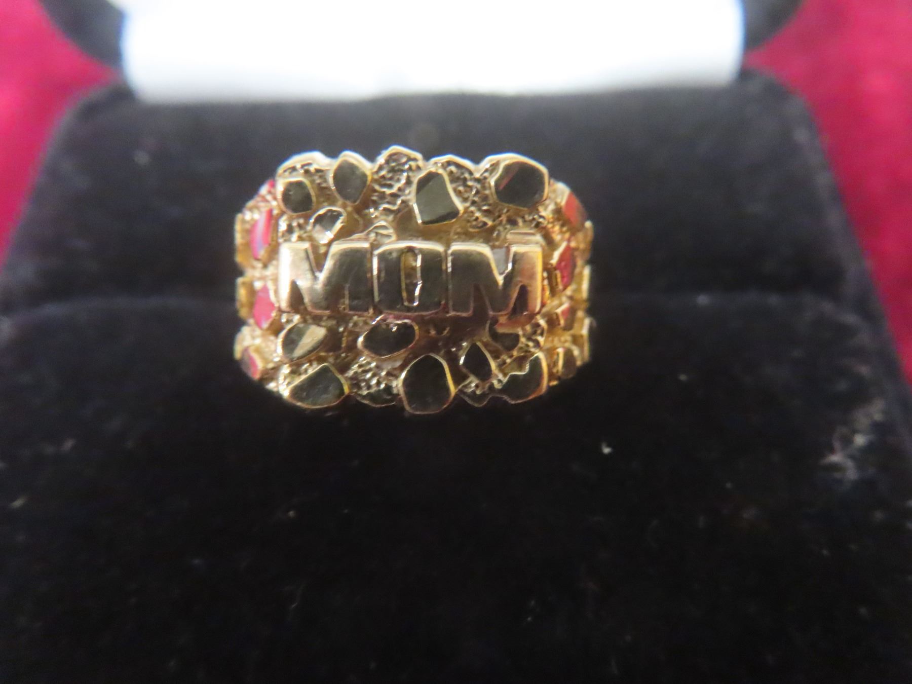 10k Gold Nugget-Style “Mom” Ring, Size 8, 3.1 g