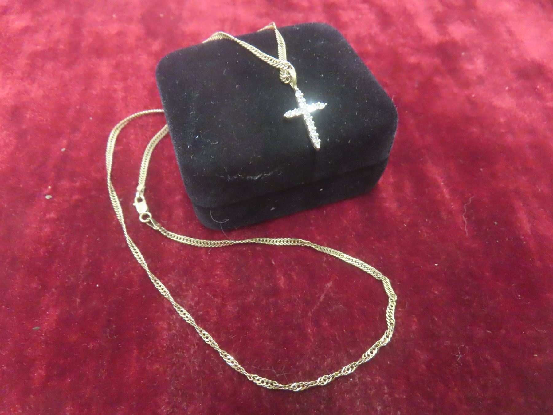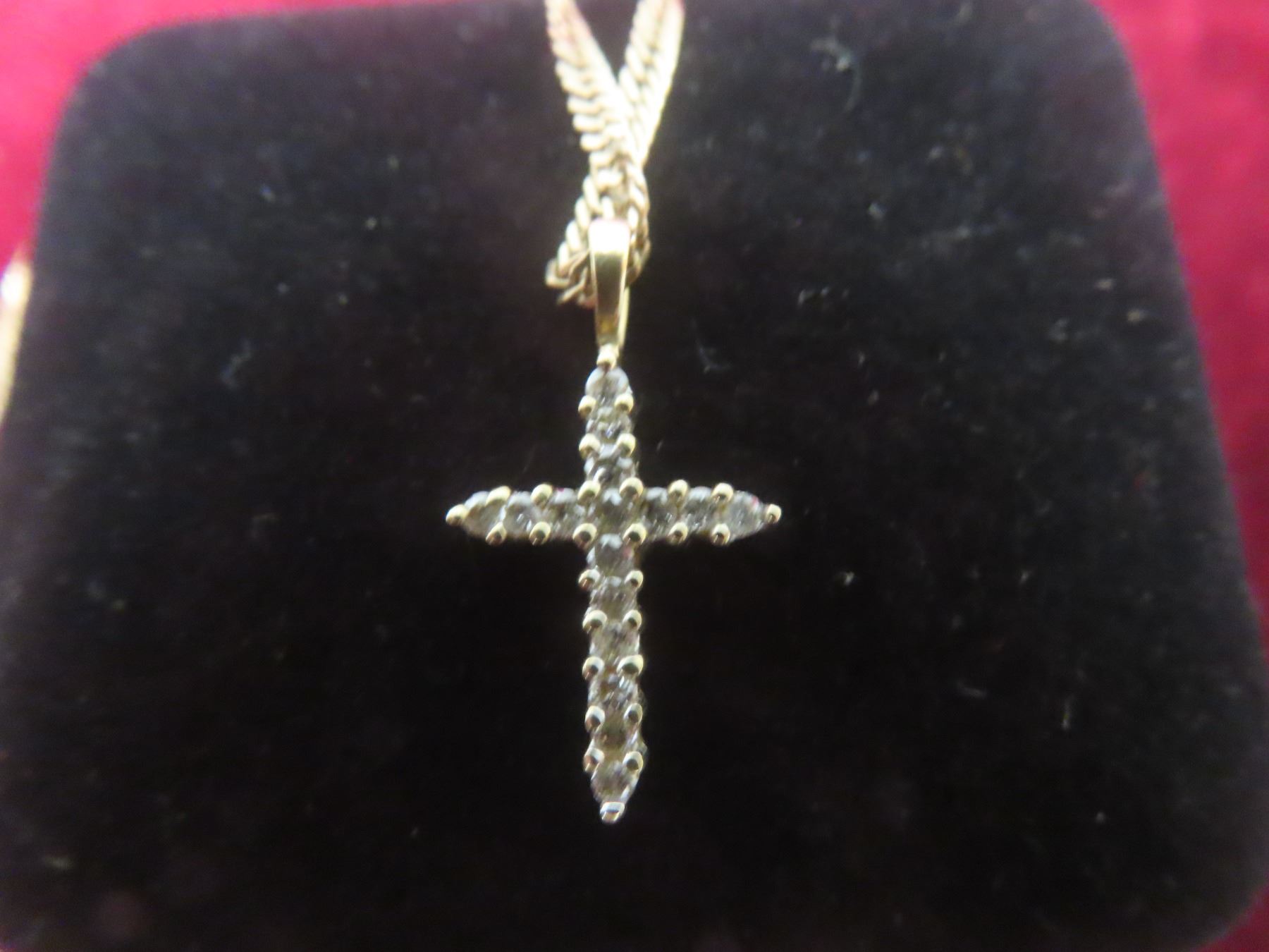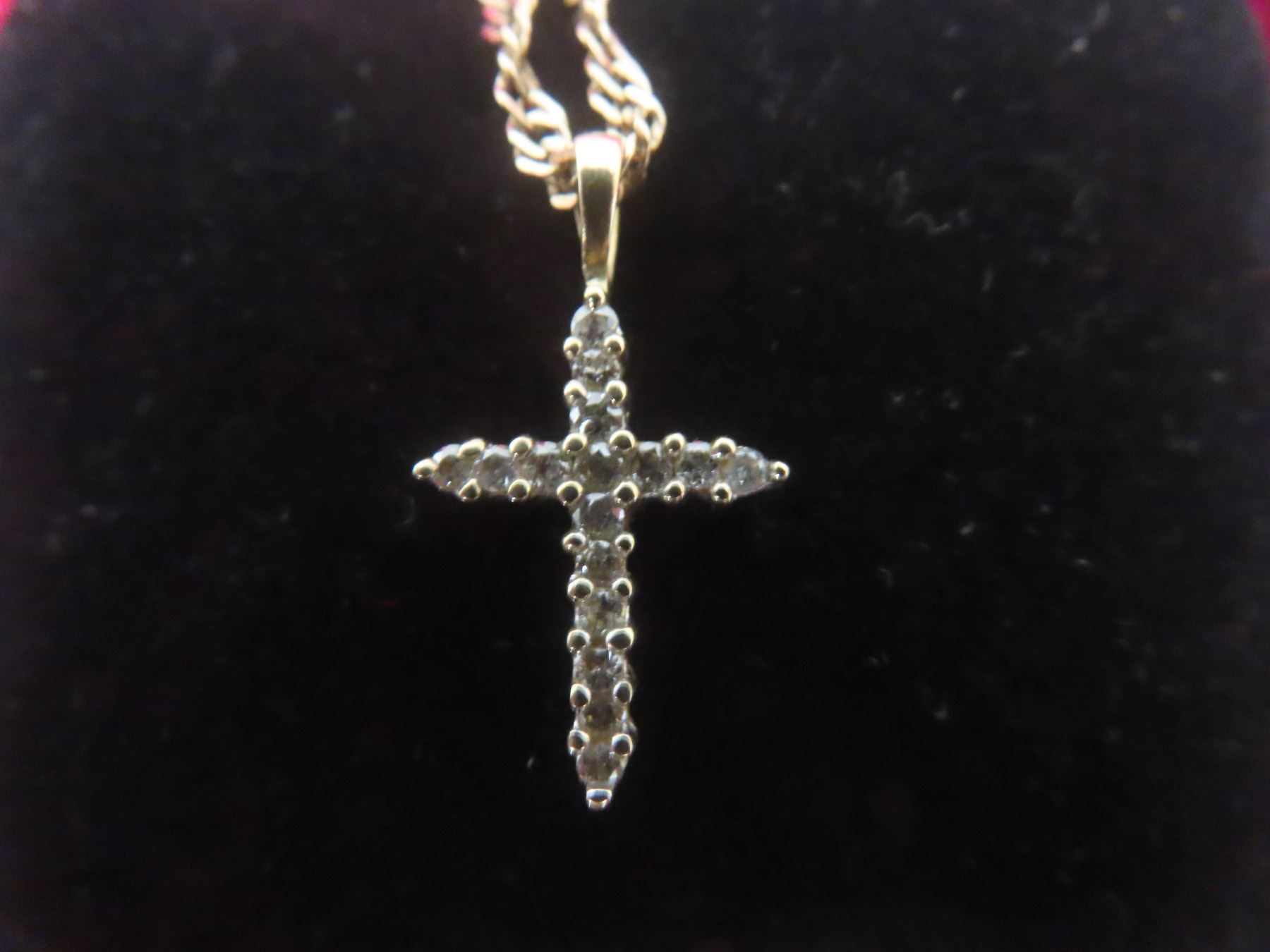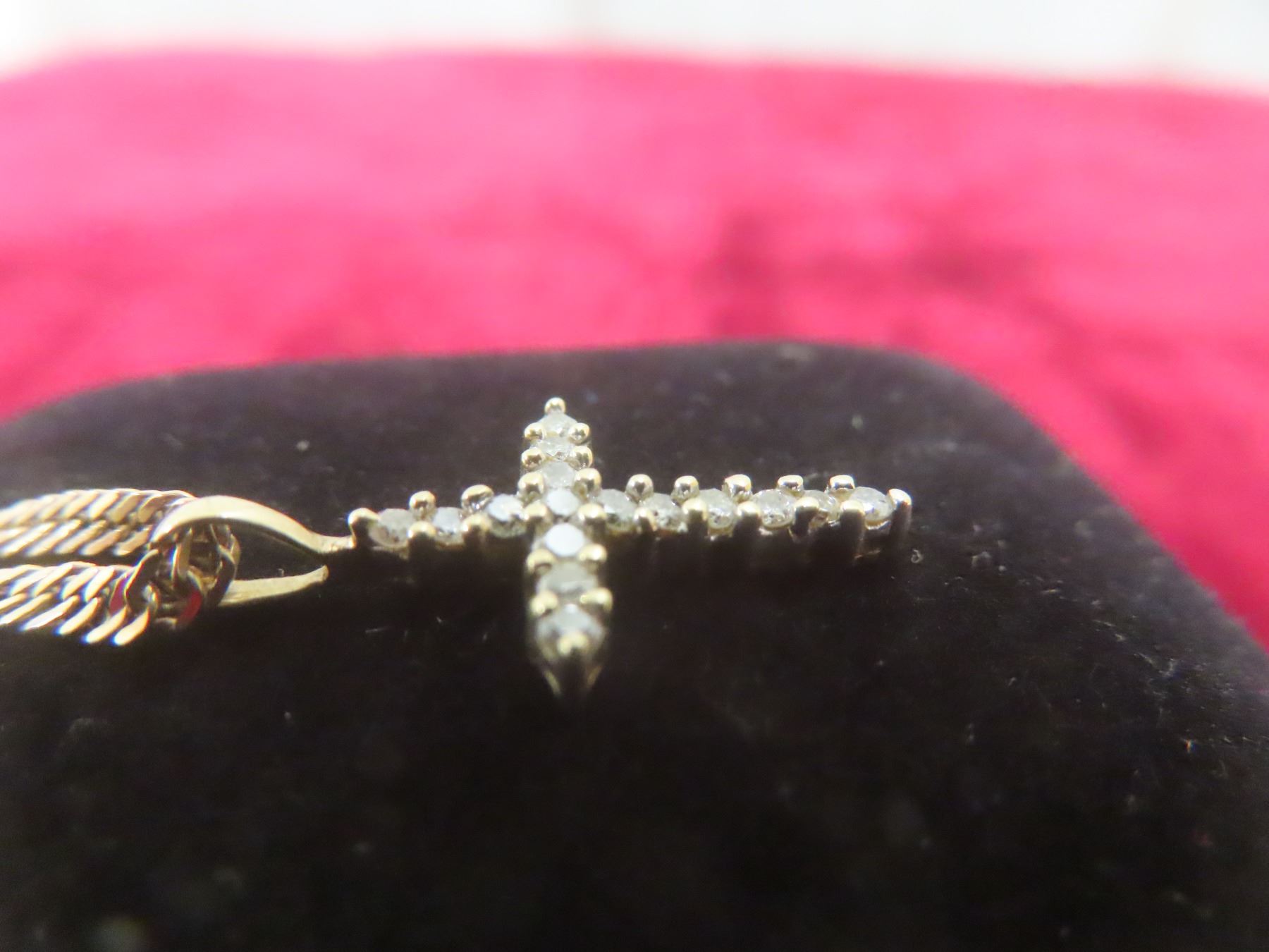 10k Gold and Diamond Necklace with Cross Pendant, 19 1/2" Length, 4.2 g