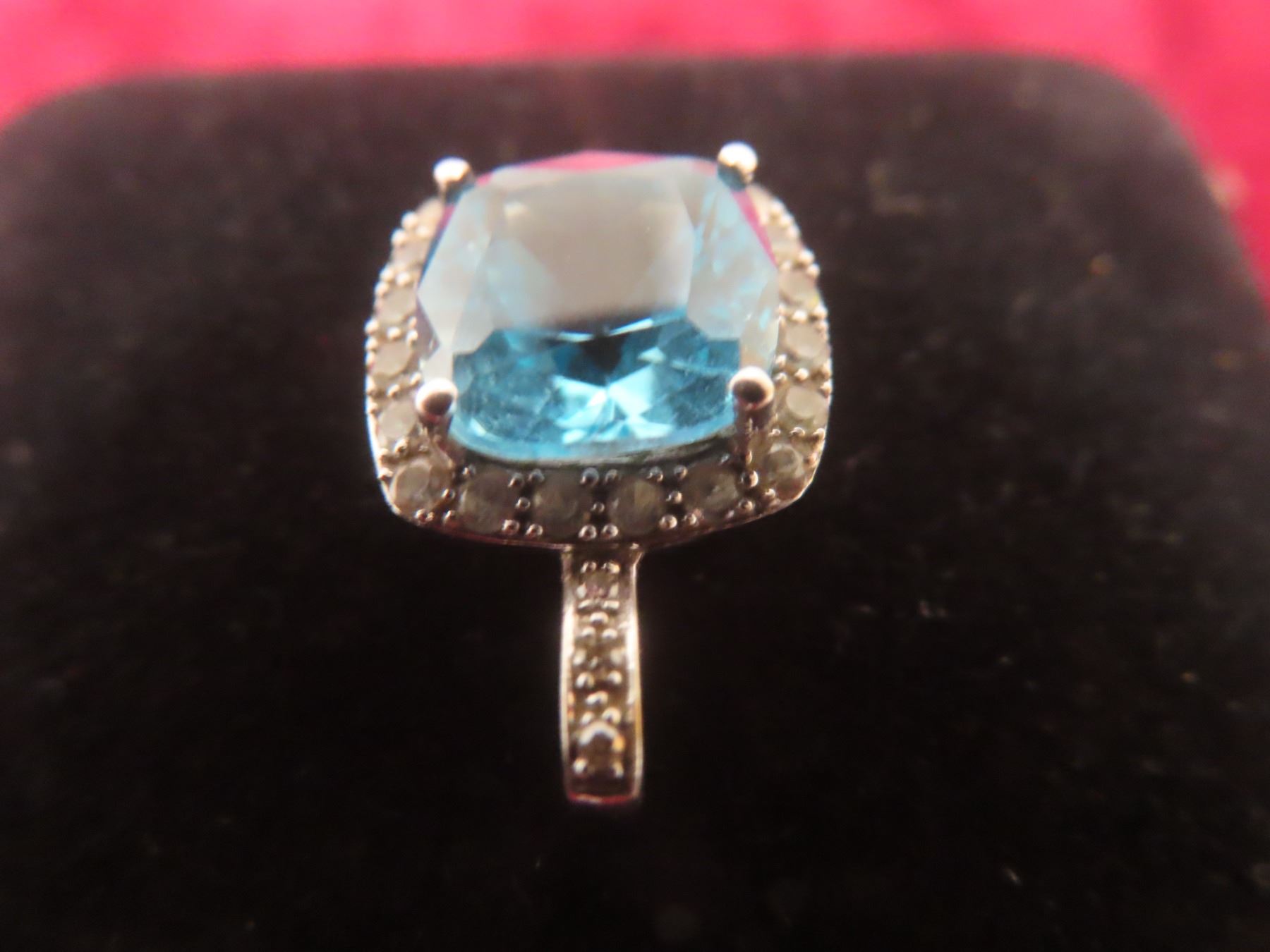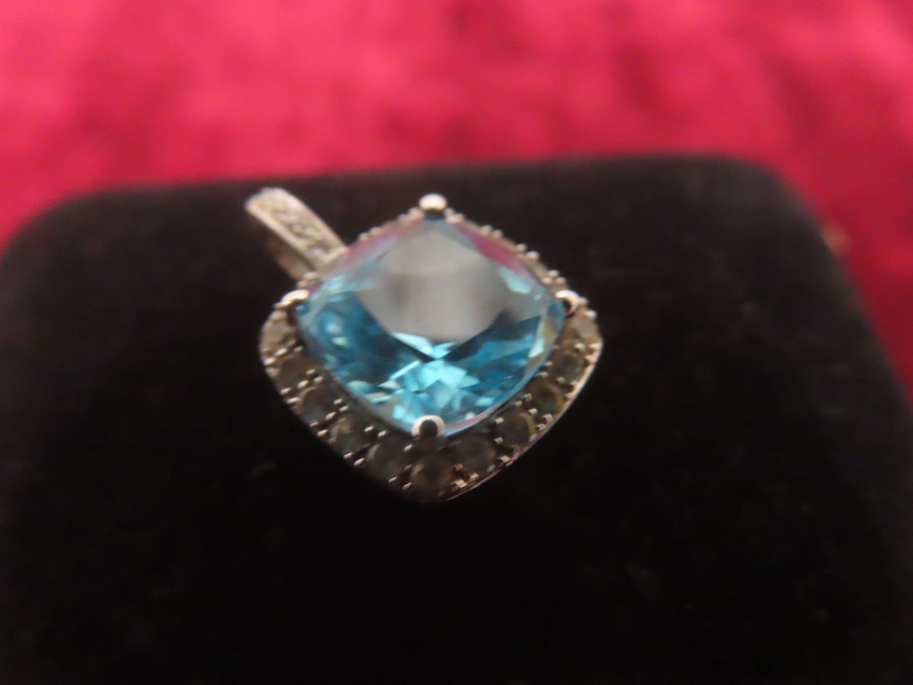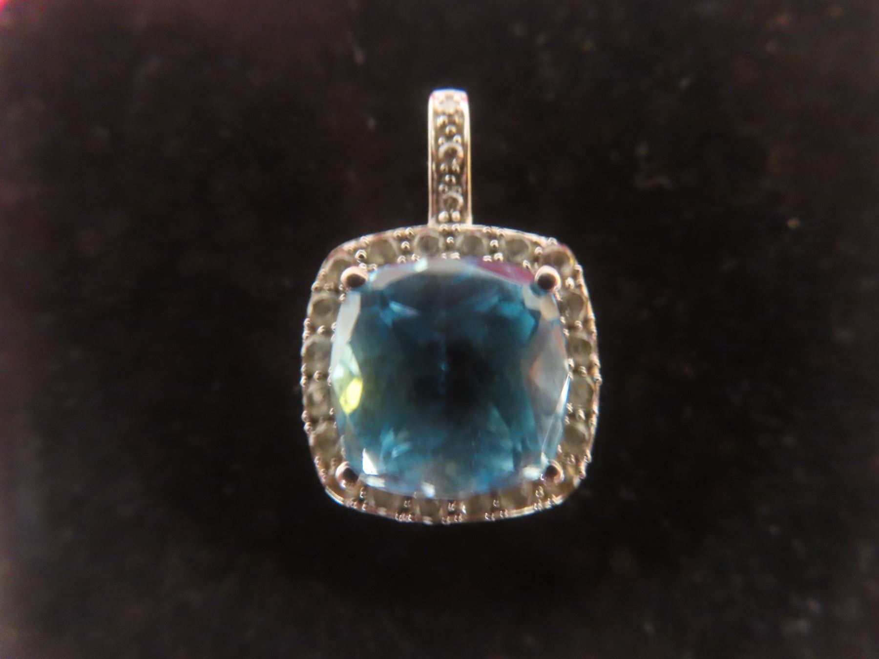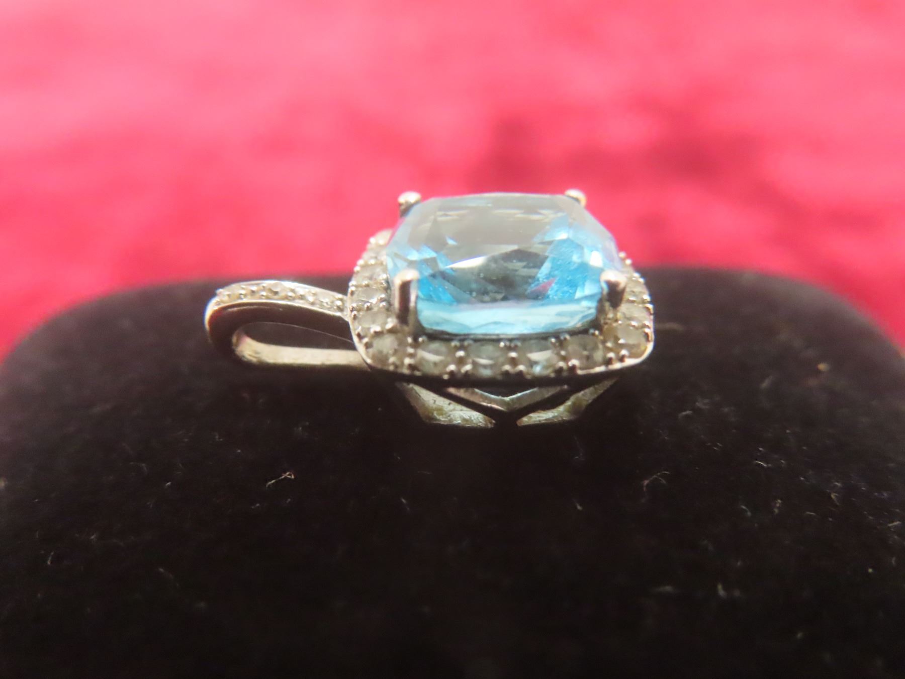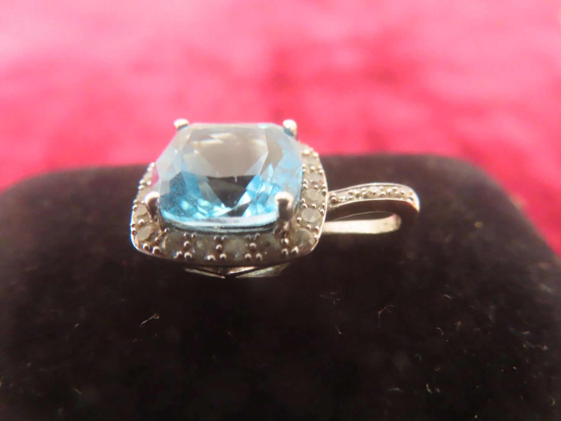 10k White Gold and Diamond Aquamarine Pendant, 2.2 g