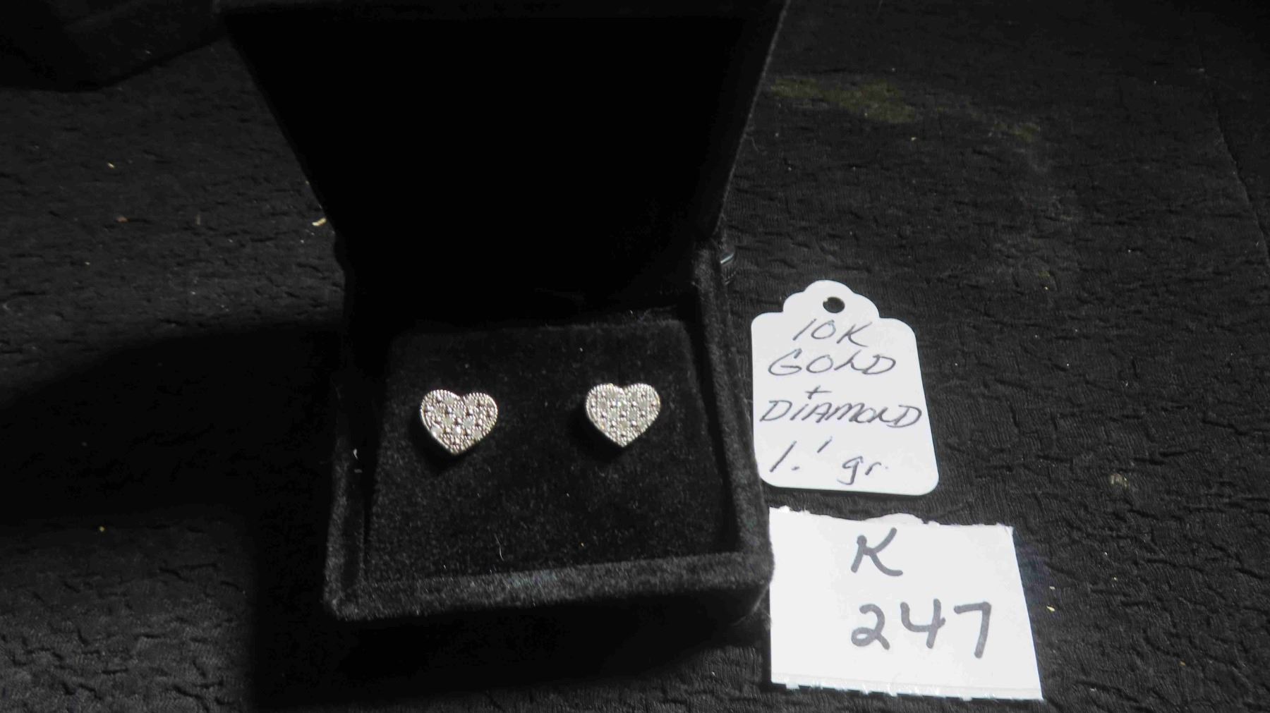 10kt Gold with Diamond Pierced Earrings Total Weight 1.1 Grams