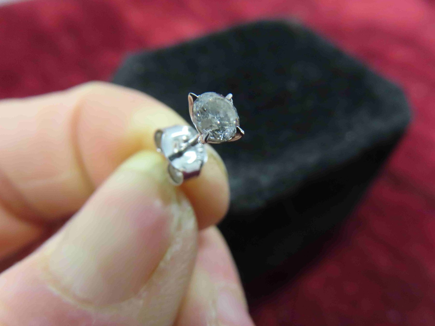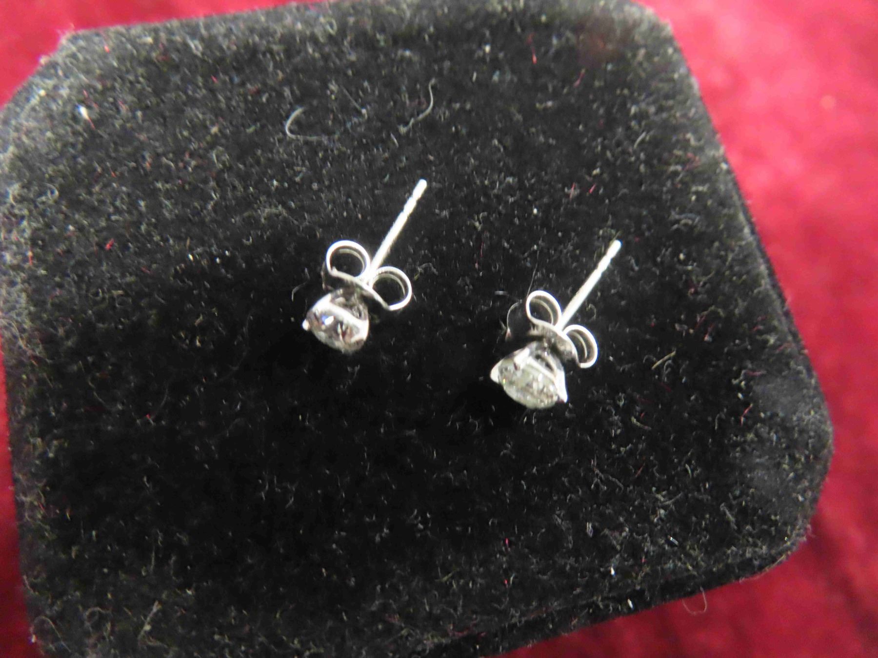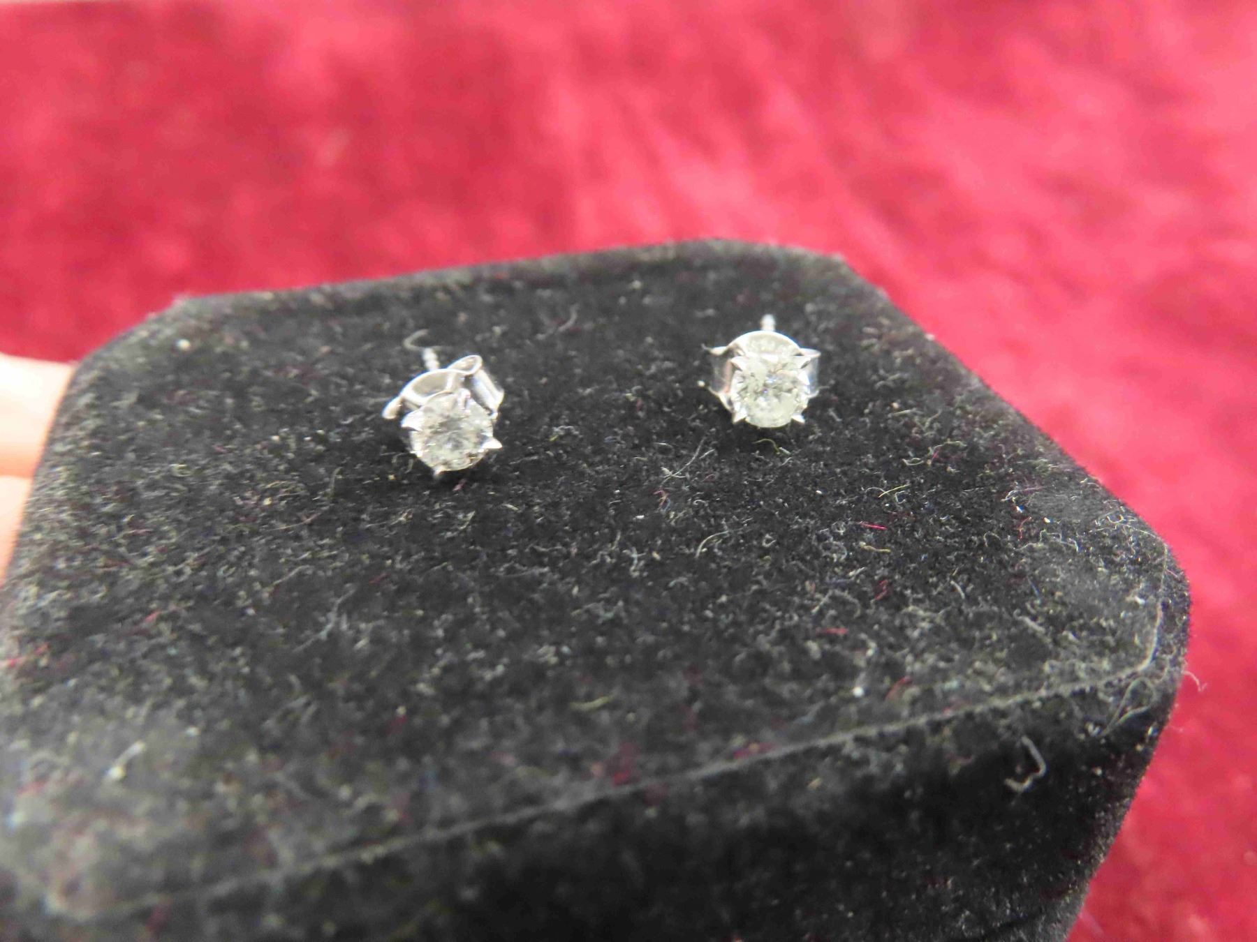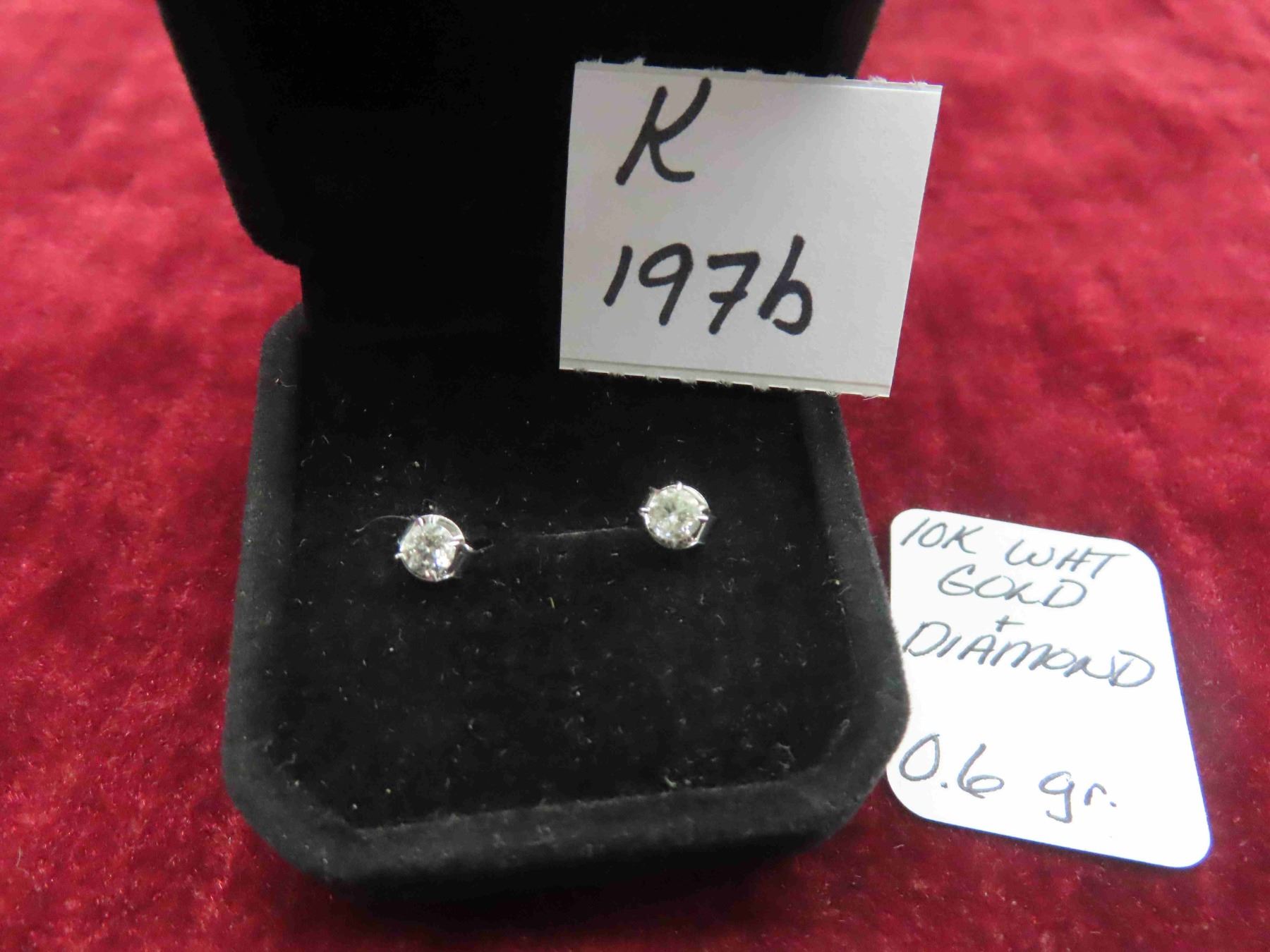 10kt White Gold and Diamond Post Earrings Total Weight 0.6 Grams