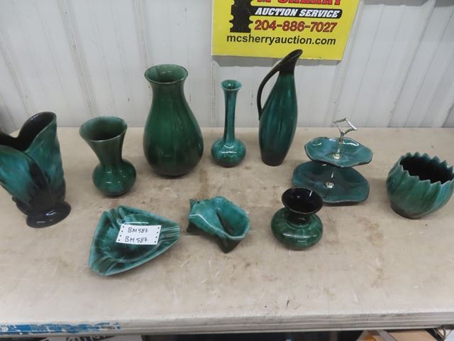 10pcs Blue Mountain Pottery; 2 Tier Dish, Several Vases, Planter
