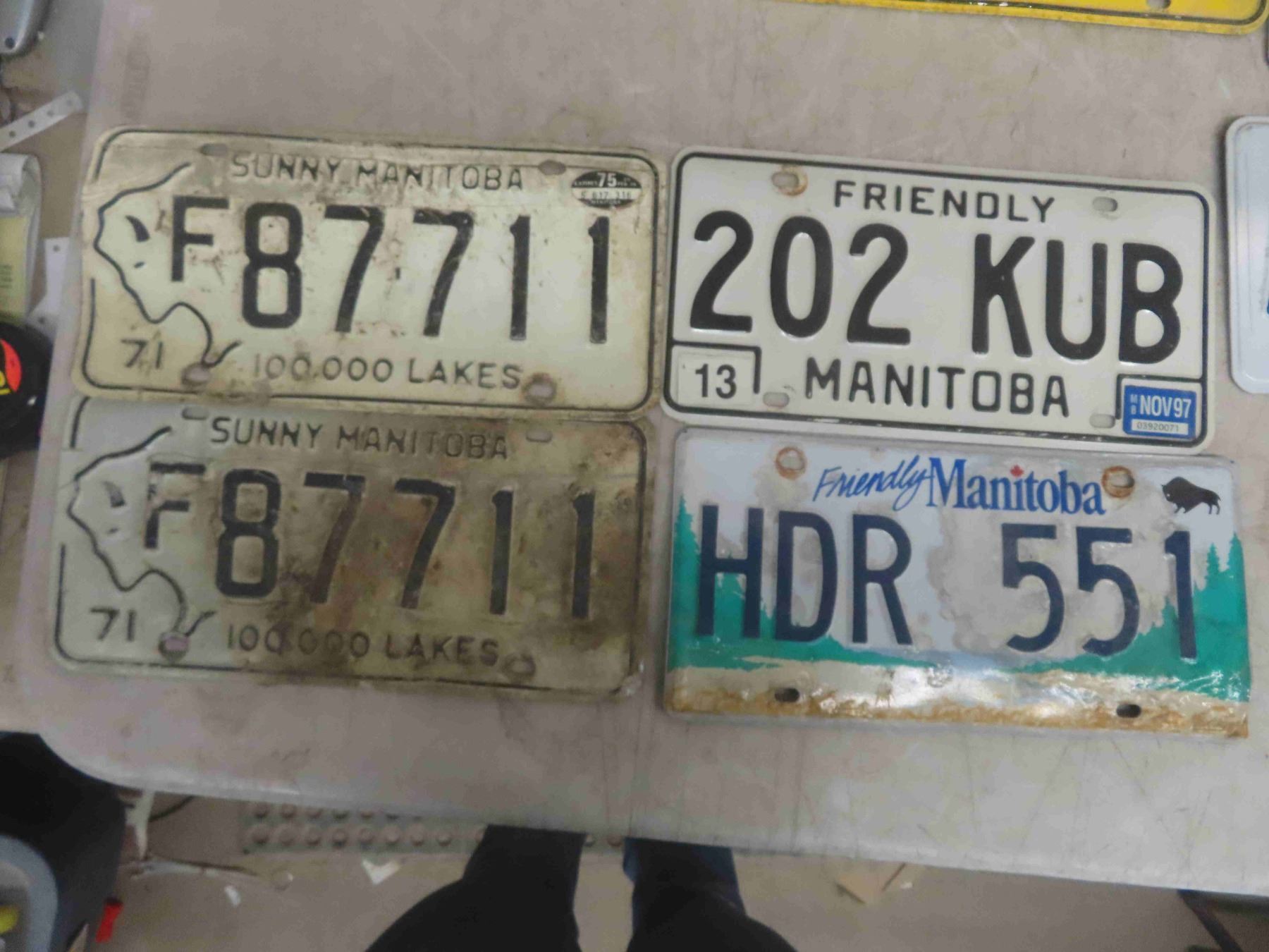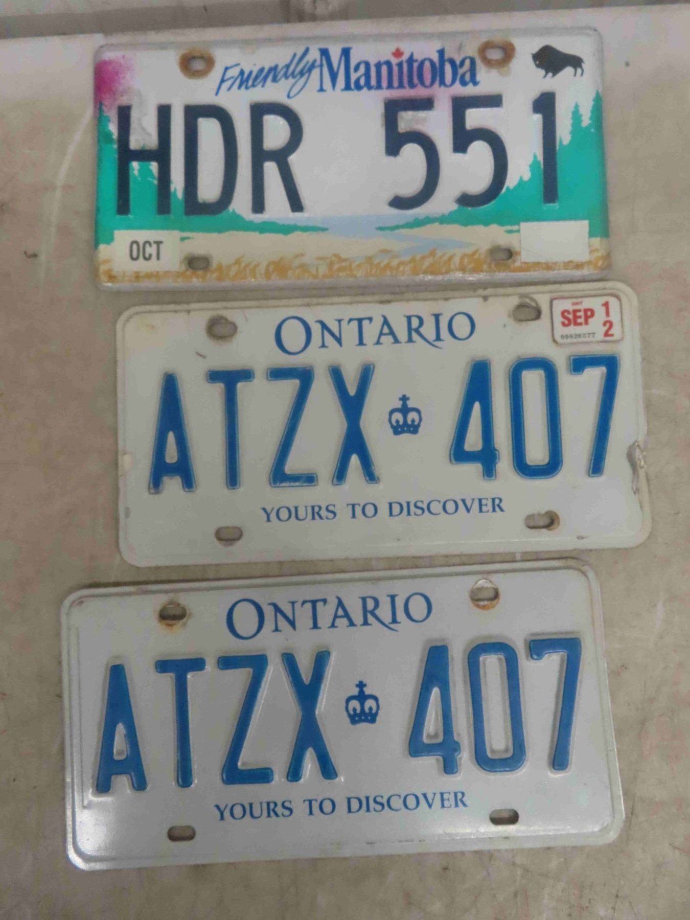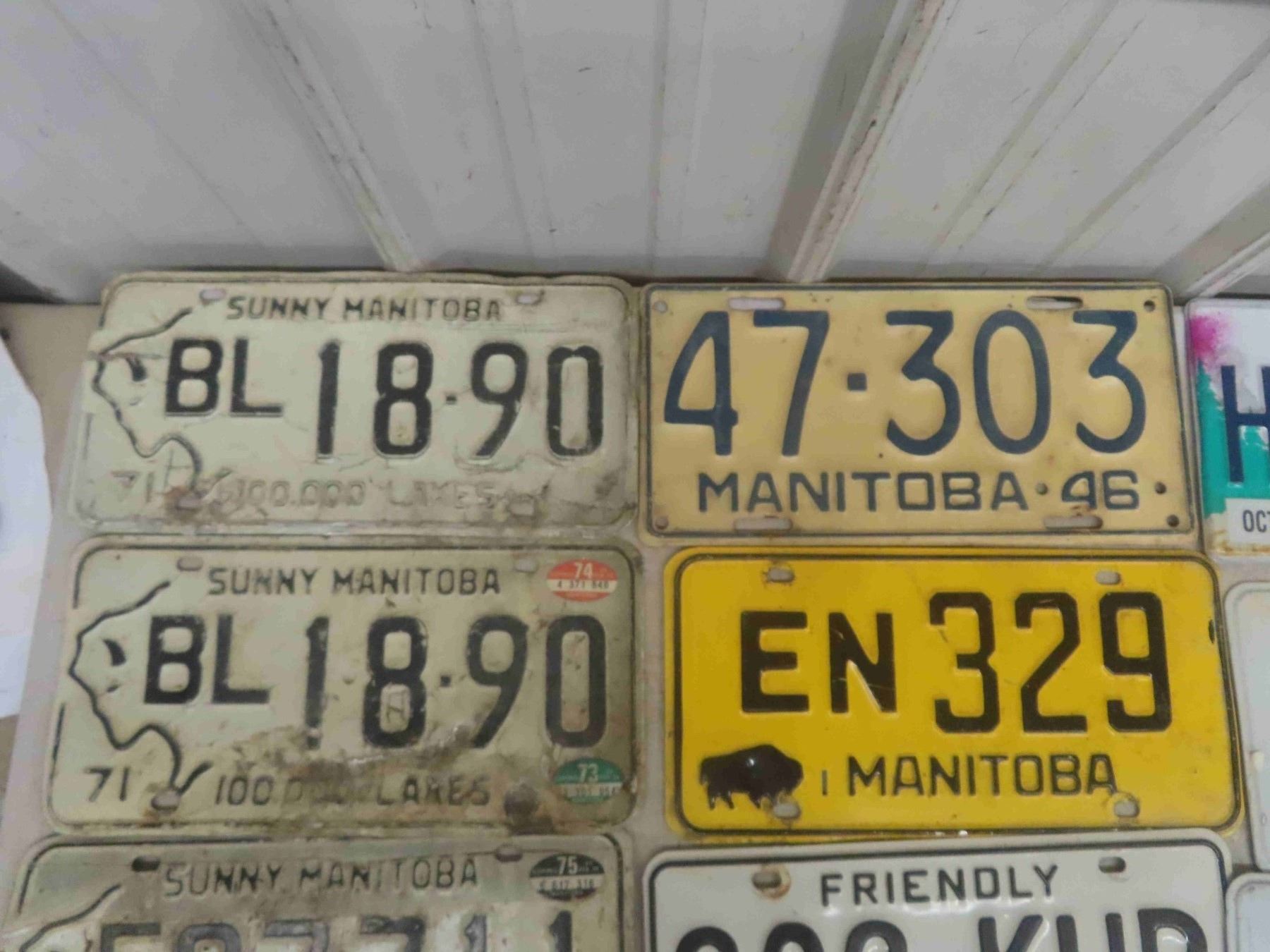 11 License Plates: Manitoba 1946 & 1971, Ontario, 3 License Plate Frames