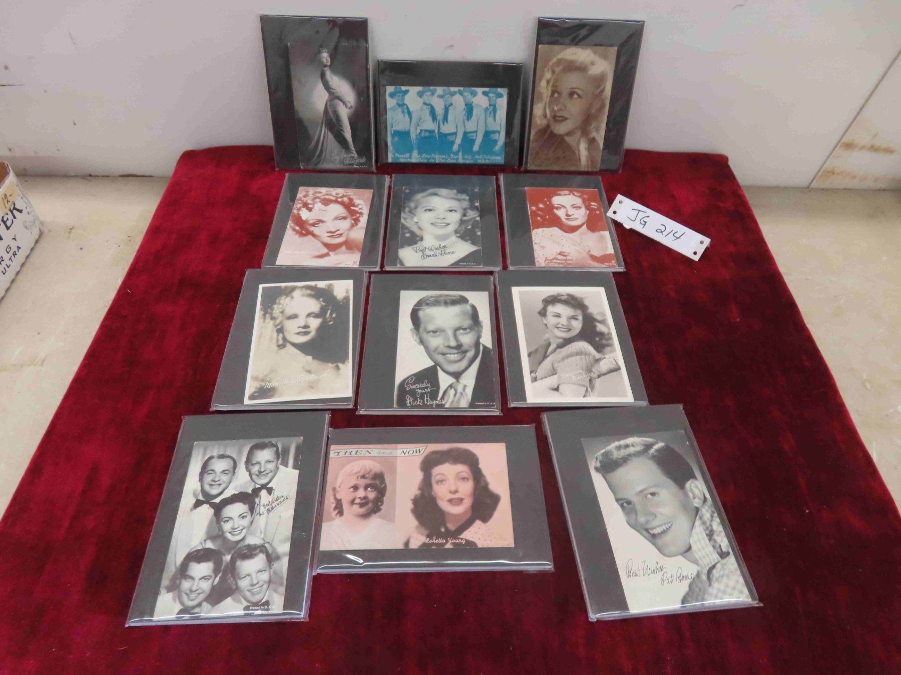 11 Mutoscope Cards & 1 Real Photo Postcard: Deanna Durbin, Marlene Dietrich, Joan Crawford, Loretta Young, Ginger Rogers.