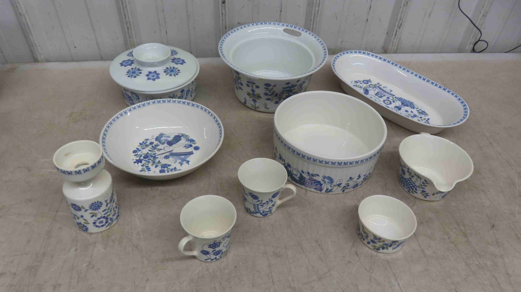 11 Pieces of Vintage Mid Century Modern China Made in Norway : Lidded Casserole Dish, 2 Cups, Candle Holder, 5 Assorted Bowls, Gravy Boat -All Good Condition