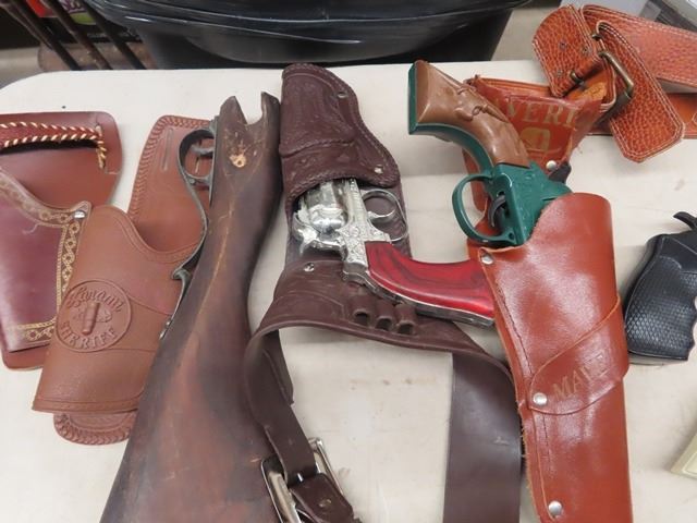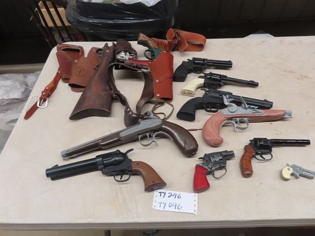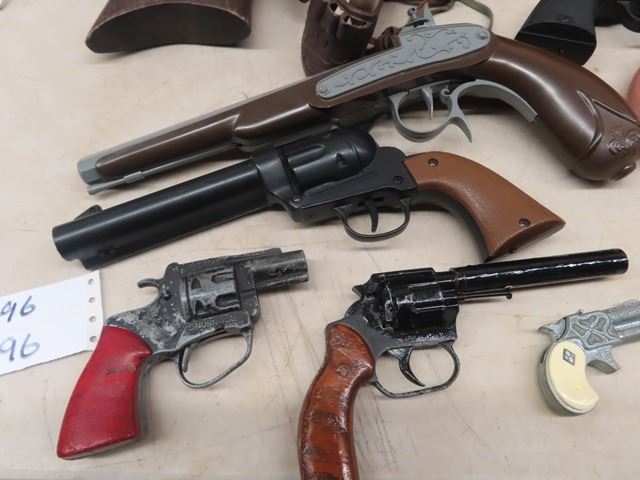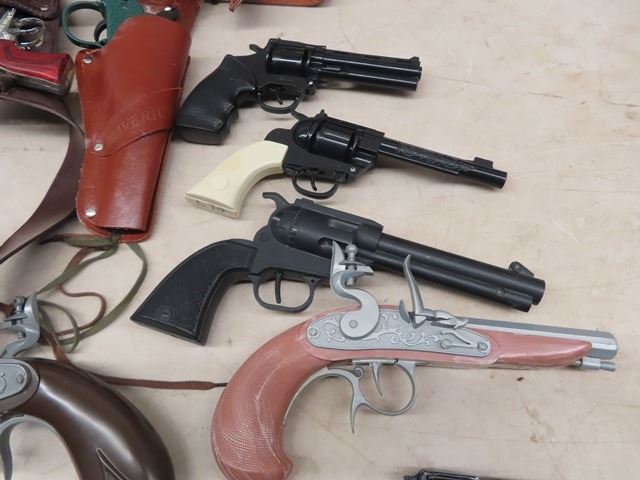 11 Plastic & Metal Toy Guns w 3 Holsters