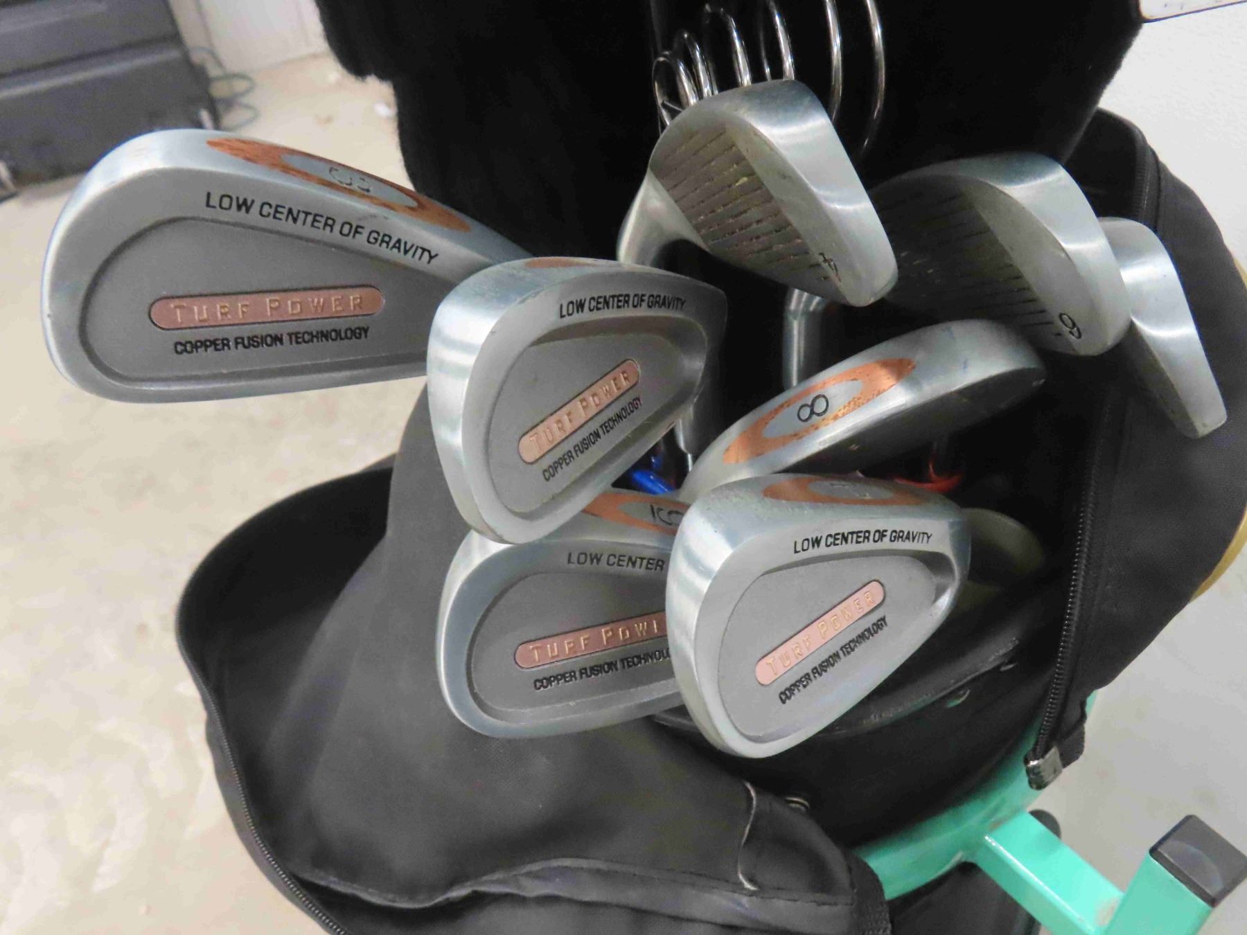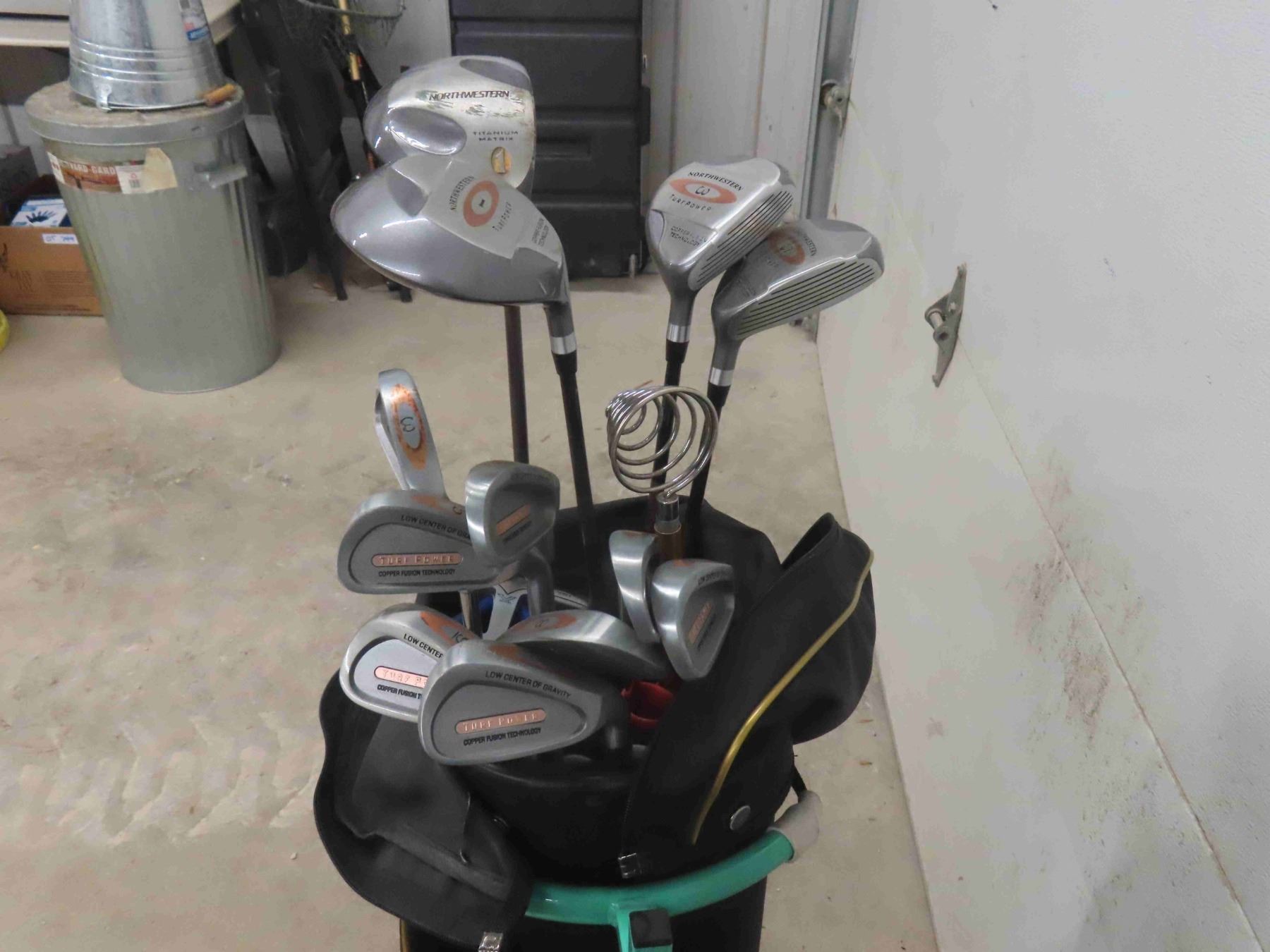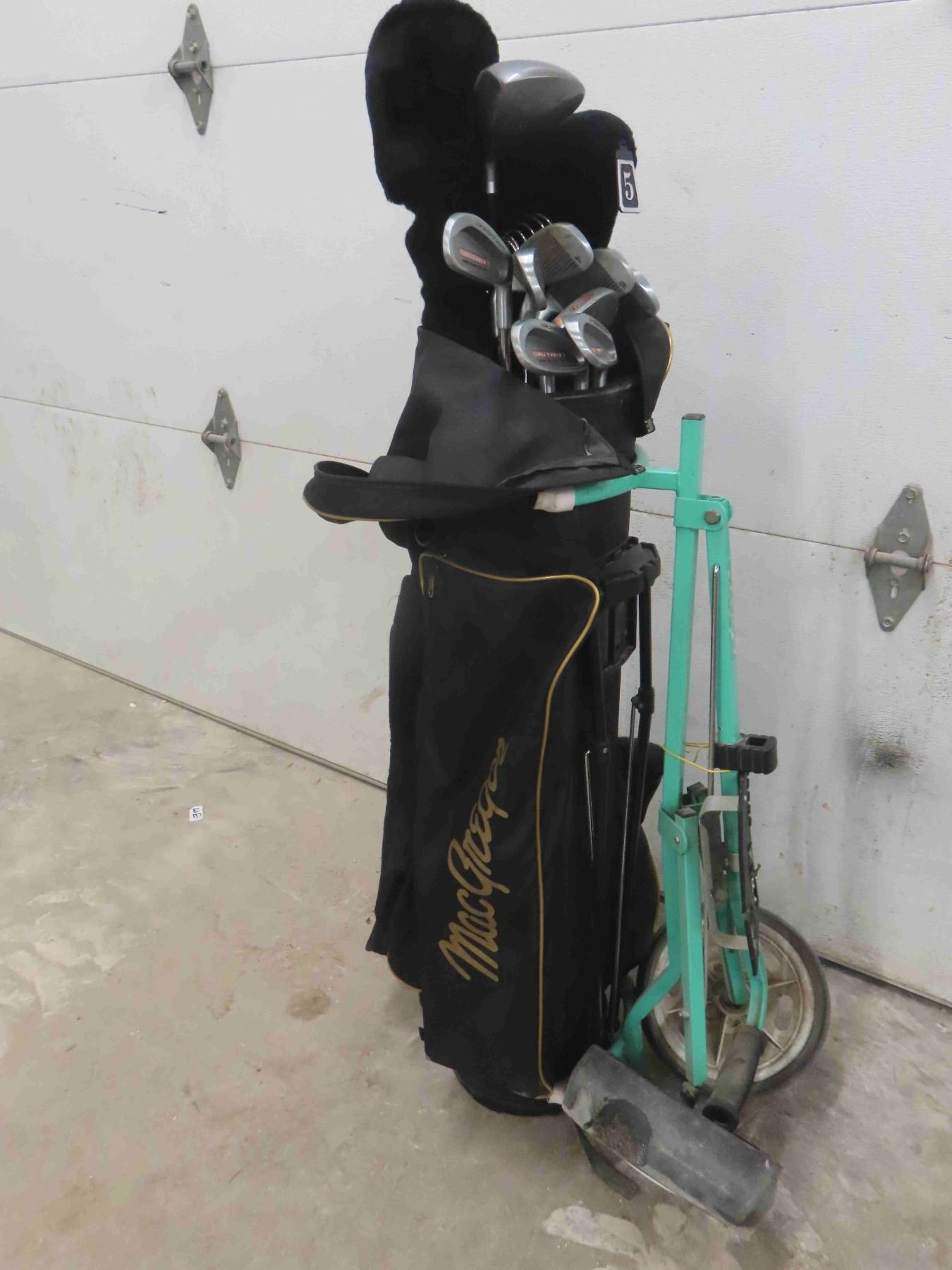 11pc Golf Club + Bag with Tees, Balls,  Pull Cart