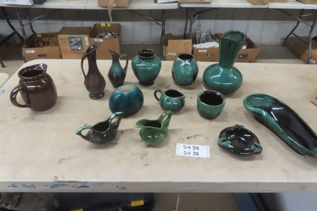 12 + 1 Pieces of Blue Mountain Pottery ; Vases, Jugs, Ashtrays, Creamers, Plus more