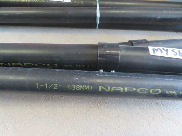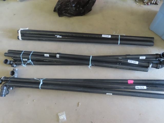 (12) 5' lengths Black 1 1/2" PVC Pipe with Bin of Connectors