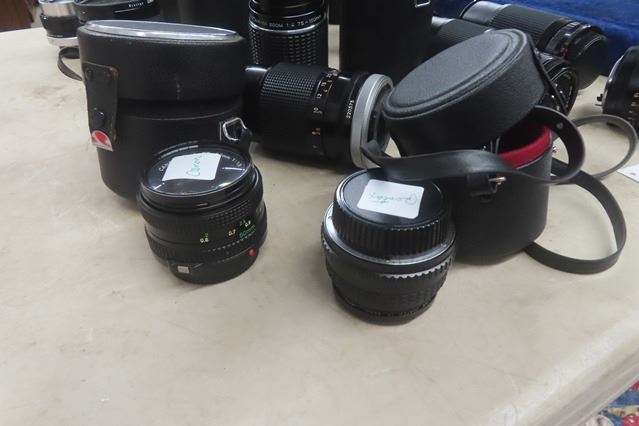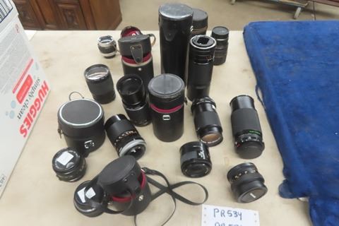 12 Assorted Camera Lenses ; Konica, Canon, Pentax plus others