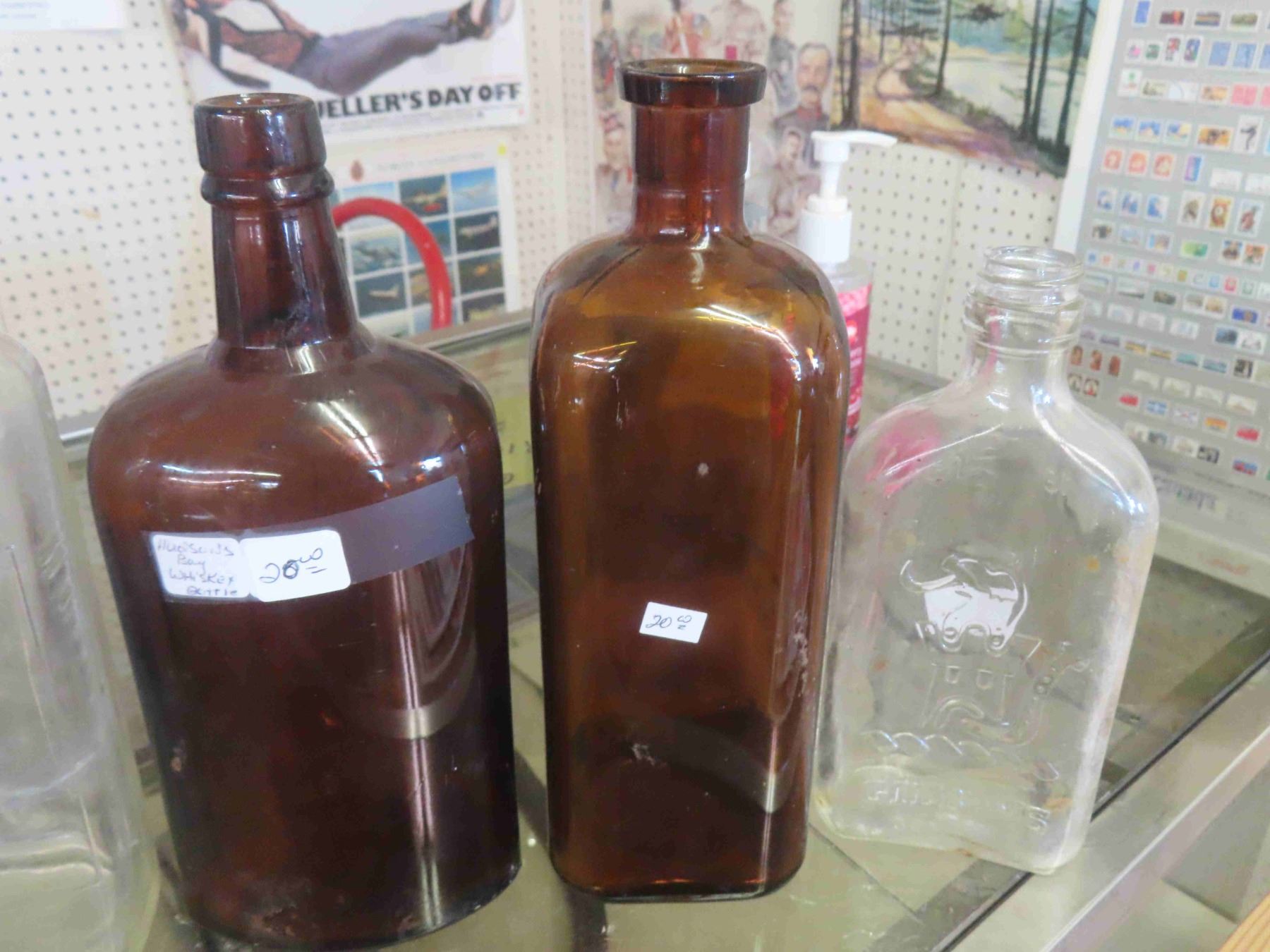 12 Bottles Liquor Including Hudson Bay Medical Bottle, Kidney + Liver Cure, Flasks, plus more