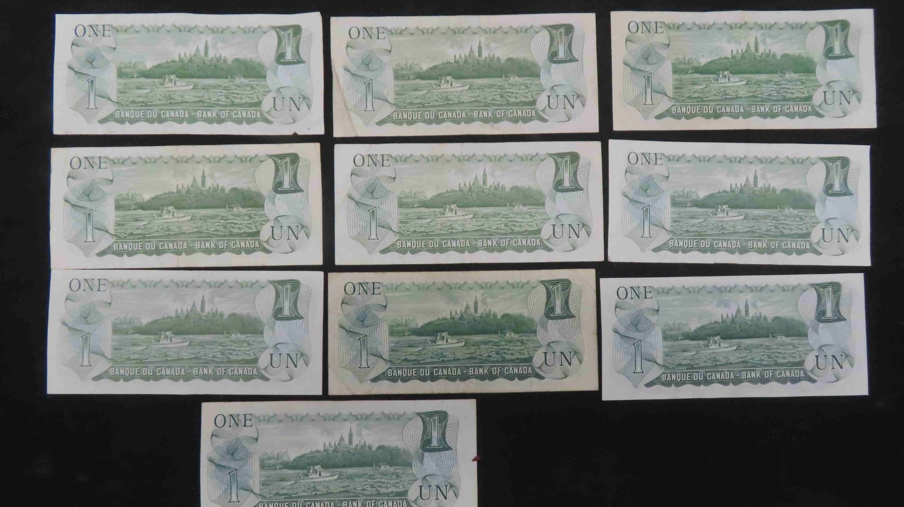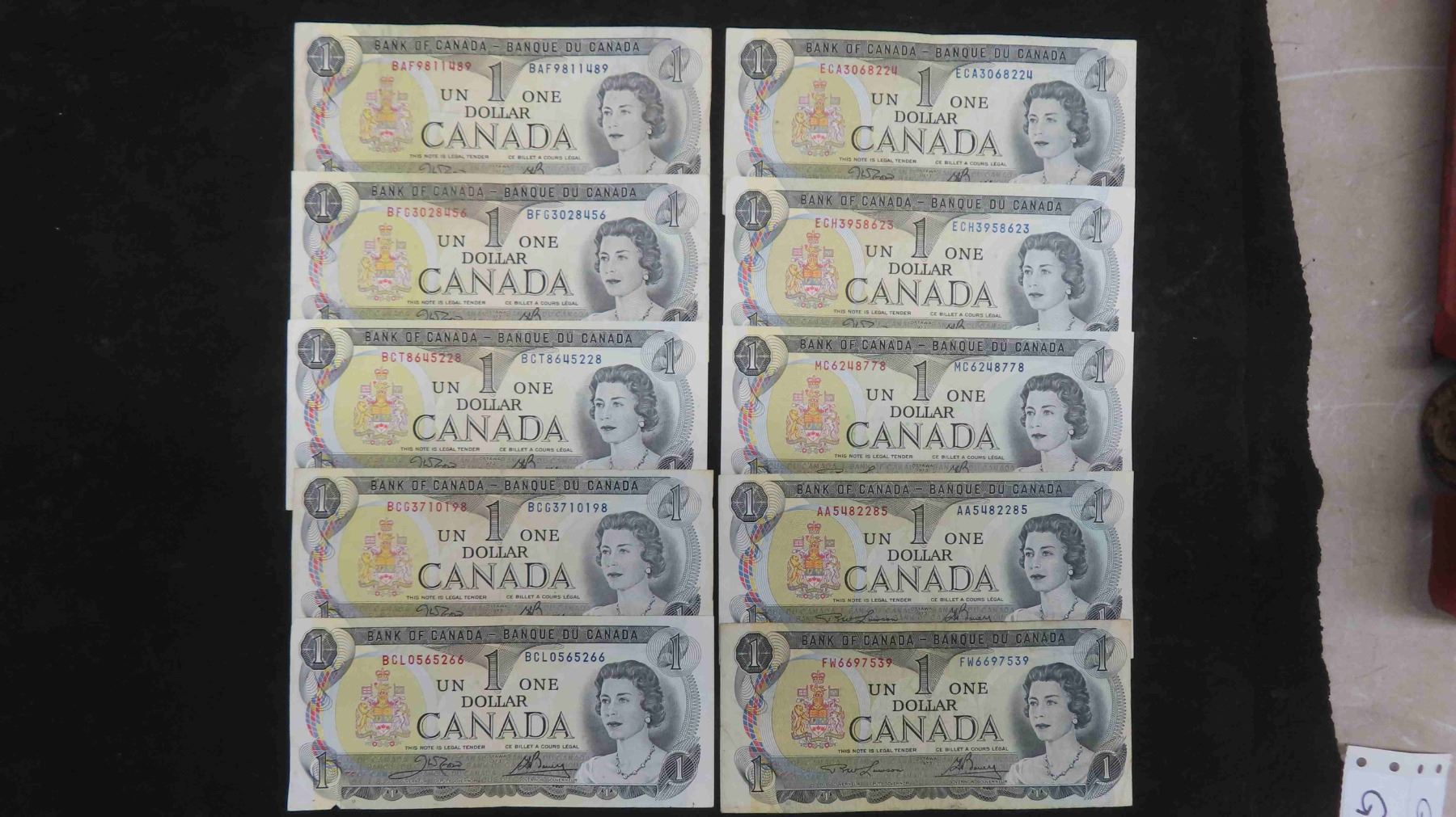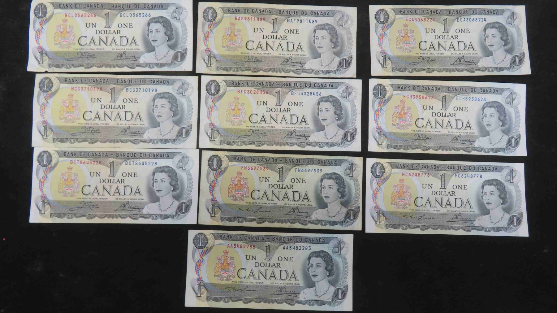 (12) Canadian Bills 1973/74 : (2) $2 Bills , (10) $1 Bills