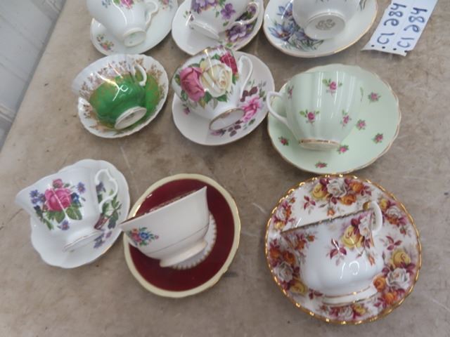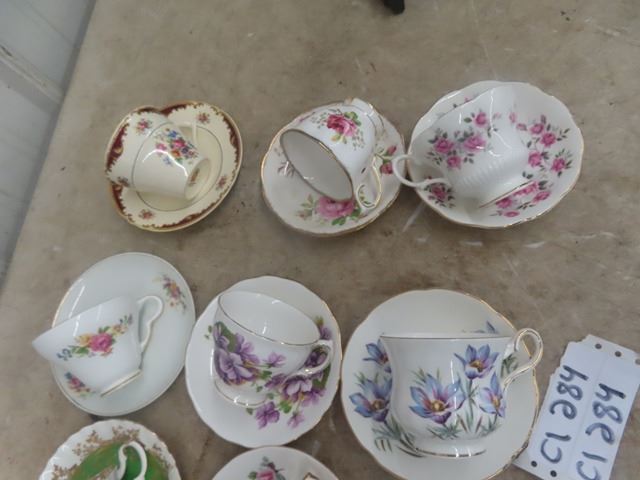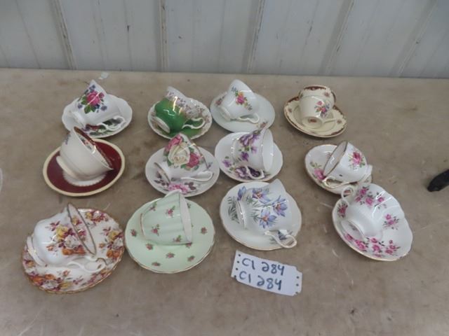 12 China Cup + Sauce Pairs; Royal Albert, Queen Anne, Royal Grafton, Crawford, Claire, Myott