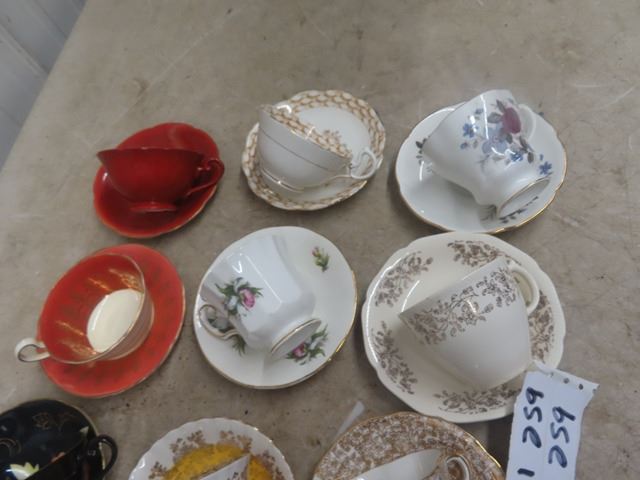 12 China Cup + Saucer Pairs; Queen Anne, Royal Albert, Delphine, Aynsley, occupied Japan, Windsor, Royal Grafton