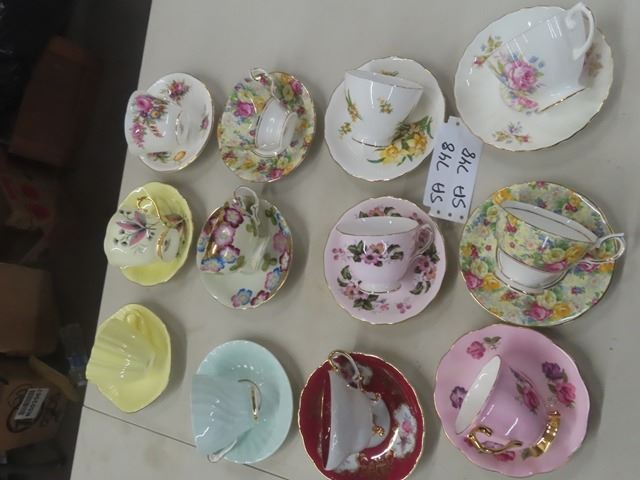 12 China Cups + Saucers ; Foley, Royal Albert, Stafford, Vale, Cololough